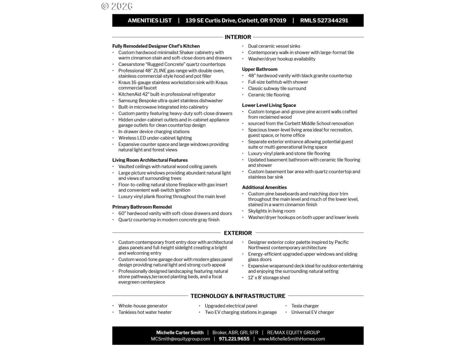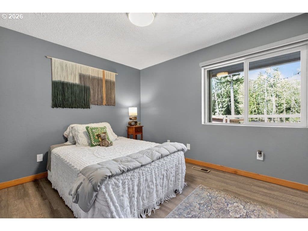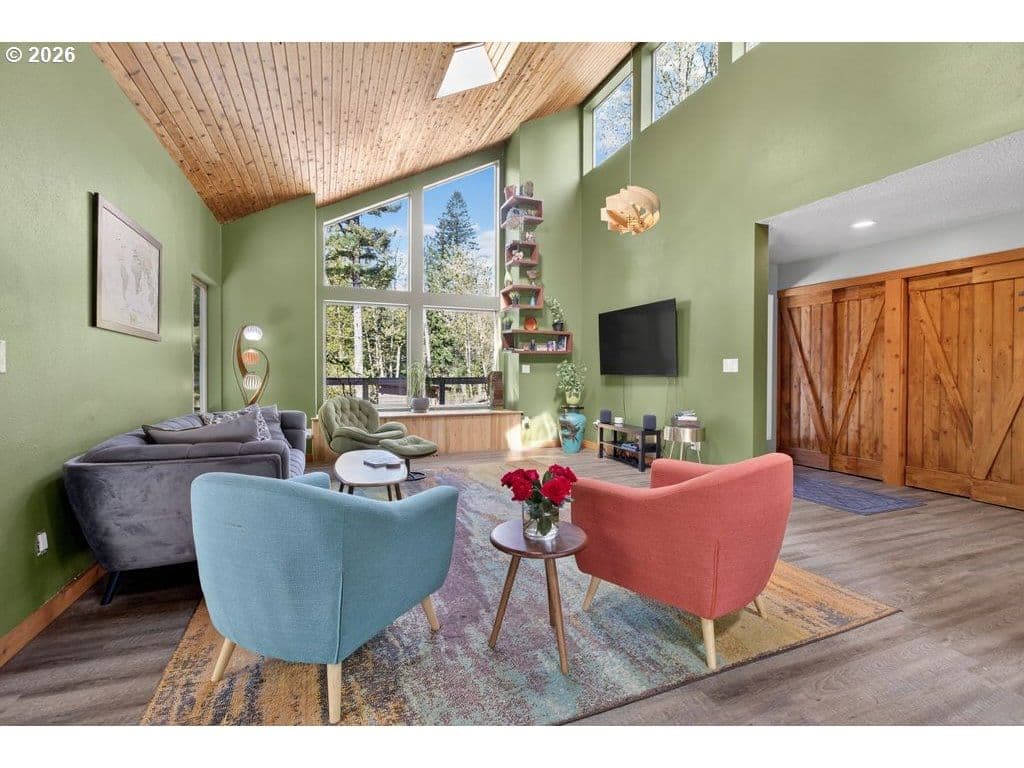 Looking for the perfect blend of modern comfort and the serene country setting of Corbett? Situated on two forested acres on a quiet road near the Corbett schools, this move-in-ready mid-century modern home features numerous updates. Professionally designed landscaping greets you as you enter the property, and the sweeping wraparound deck offers a private spot to relax with a good book or entertain family and friends as you enjoy your wooded back acreage. The grassy side yard is a great spot for outdoor recreation or gardening. The 12X8 storage shed is ideal for the riding lawn mower that IS included! Entering the home, you are greeted by expansive windows letting in the natural beauty and sunlight. The living room features vaulted ceilings with natural-wood ceiling panels and a floor-to-ceiling stone fireplace for a cozy ambiance on chilly winter nights. Is there a chef in the family? This custom kitchen is a delight with a professional 48" ZLINE gas range with double oven, stainless commercial-style hood and pot filler, a 42" KitchenAid built-in refrigerator, Caesarstone "Rugged Concrete" quartz countertops, and custom hardwood minimalist Shaker cabinetry with soft-close doors and drawers. The main level primary bedroom is spacious, with an ensuite that includes a washer/dryer hook-up. Lower-level living includes a family room with two separate sliders out to the concrete patio, a laundry room, and a huge bonus room with a sauna! Perfect for an exercise room or an office. Looking for multi-generational living or a guest suite? The lower bedroom and bath have their own exterior entrance. Are you a fan of technology? The home features a whole-house generator, upgraded electrical panel, tankless water heater, and two EV charging stations in the garage. Located in the award-winning Corbett School District and near the Columbia Gorge waterfalls and hiking trails. Furnishings in the home are negotiable.
