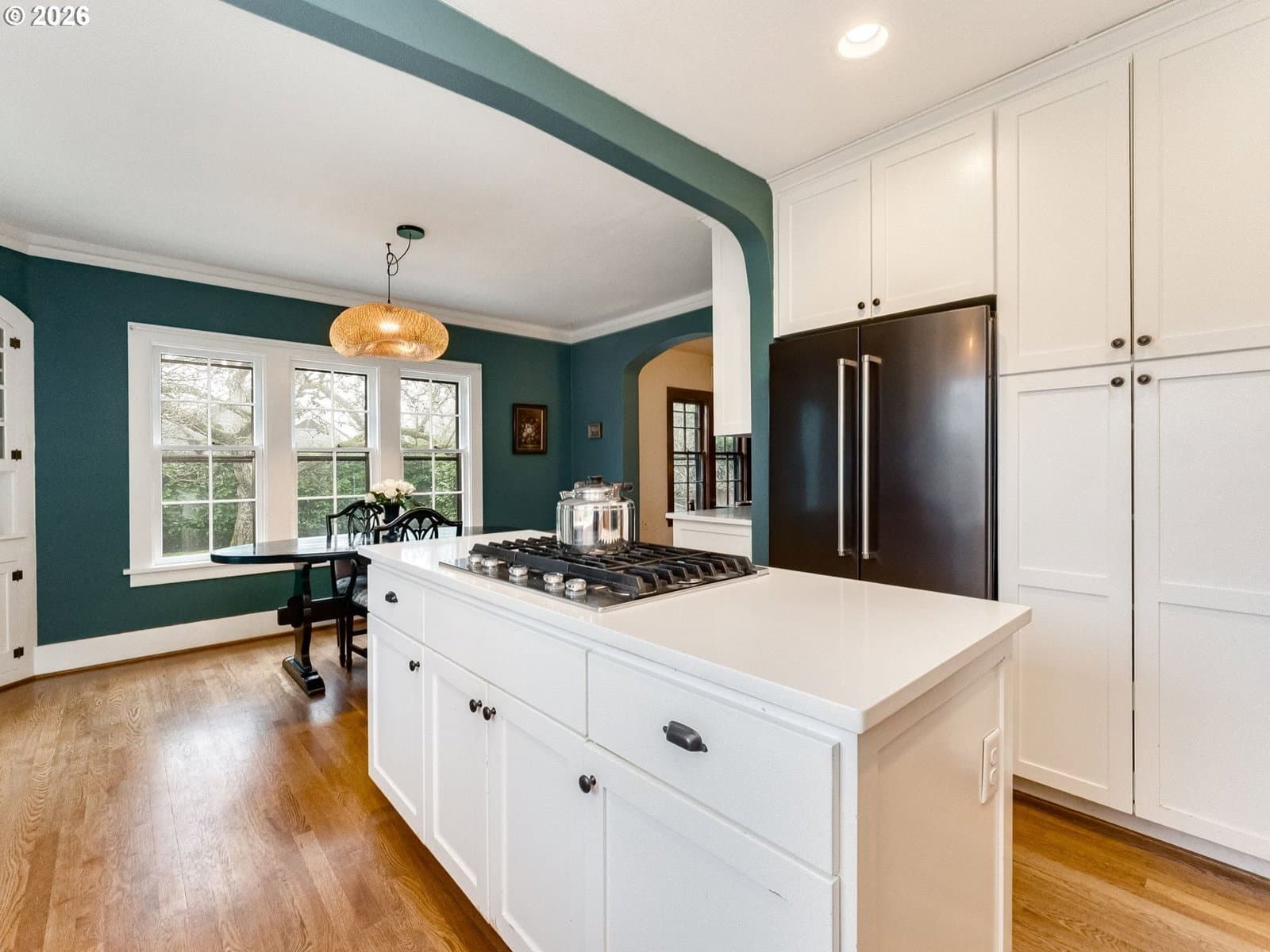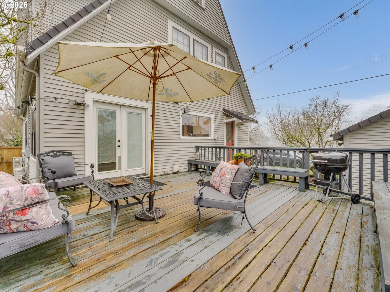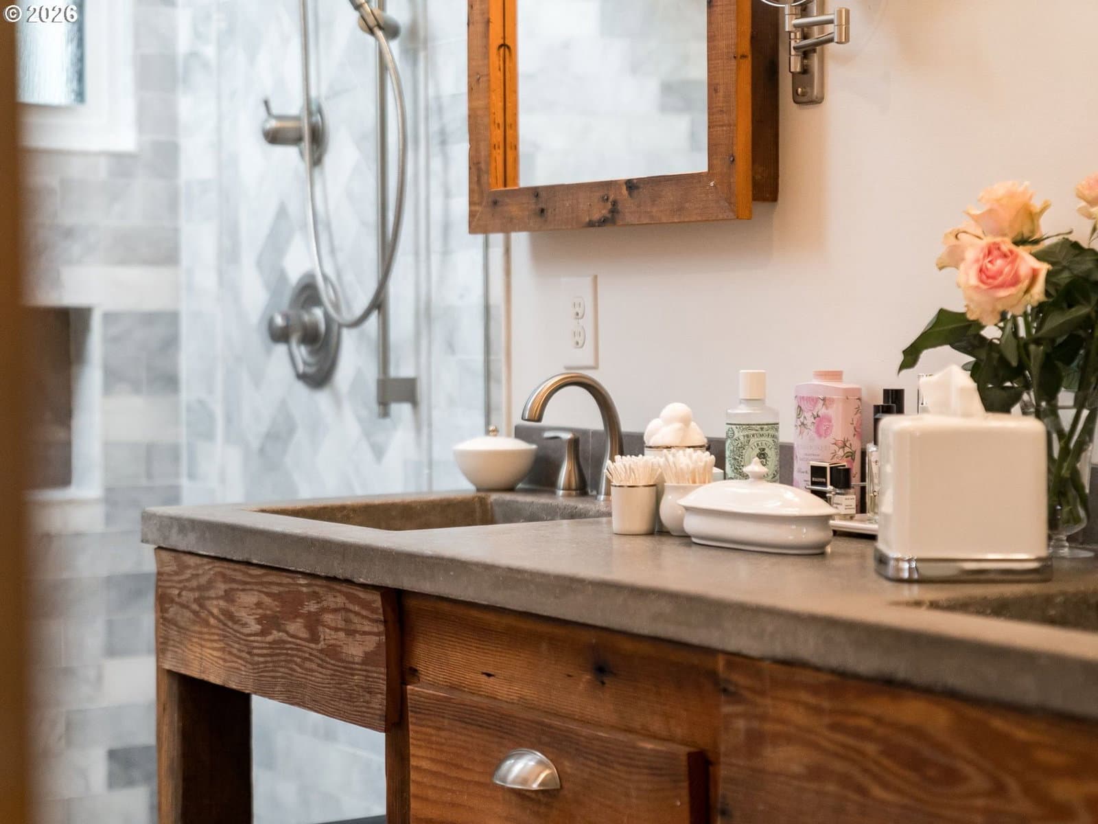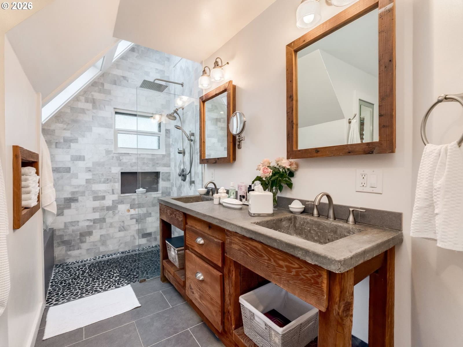 Step into timeless charm with modern comfort in this beautifully updated 1929 home, perfectly situated on a generous .28-acre lot just a short stroll from historic downtown McMinnville. From the moment you enter the charming front foyer, you’ll feel the warmth and character that make this home so special.The spacious living room is filled with natural light and features a cozy wood-burning fireplace, classic corner built-ins, and large windows that create an inviting gathering space. The remodeled chef’s kitchen and dining area are true showstoppers, blending vintage character with today’s style—complete with quartz countertops, a full subway tile backsplash, apron-front sink, KitchenAid black stainless appliances, a propane cooktop with downdraft in the island, abundant storage, and a delightful coffee bar. French doors open to an expansive deck and private backyard, offering endless room to relax, entertain, or garden.Convenience meets design with a laundry room located just off the kitchen. Upstairs, you’ll find a stunningly remodeled bathroom featuring a full tile shower with skylights, dual rain heads plus a shower head, a double cement vanity, built-ins, and tile flooring. Three generously sized bedrooms with wood floors and ample closet space complete the upper level.The finished basement adds even more versatility with a large flex or family room, an additional bedroom, and a full bathroom—ideal for guests, hobbies, or multi-generational living.This is a home where classic character shines, thoughtfully updated for modern living. A rare blend of history, style, space, and location—ready to welcome you home!
