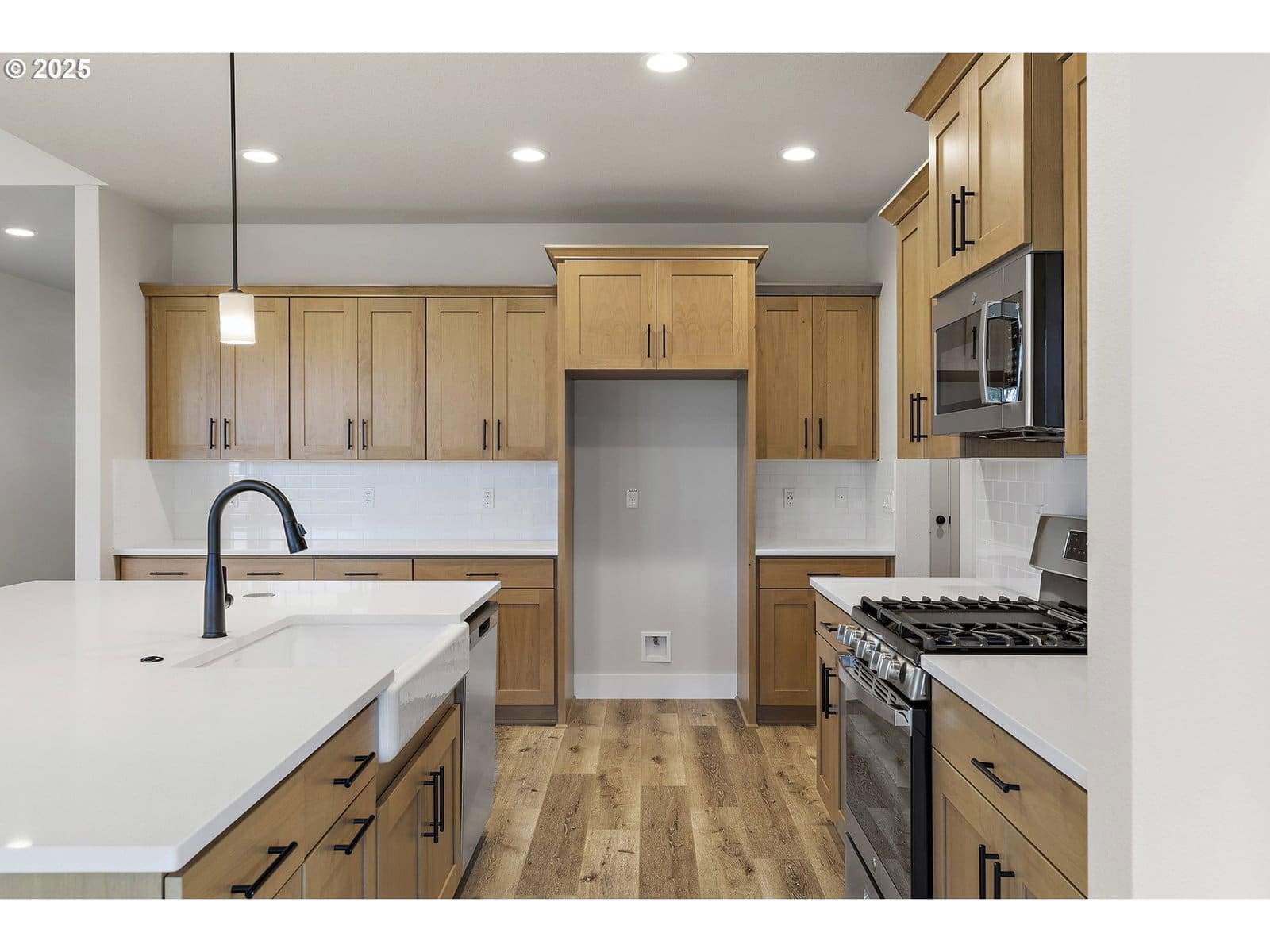 Welcome to Marion Pointe Located approximately 30 minutes from Salem and Portland with easy freeway access. Set on the backdrop of the lush Oregon Golf Association Golf Course. 11 foot ceilings in the great room create a grand, airy atmosphere, making the space feel open and inviting. The dining nook adds character and function, offering a place for a hutch or sideboard, while a nearby pantry closet maximizes storage. The kitchen is built for ease, with an oversized island, walk-in pantry, and prep area—helping you stay organized and stress-free. A covered patio extends your living space outdoors, providing a private retreat for relaxing mornings or entertaining guests. With a 3-car garage designed for maximum functionality, the third bay offers flexible storage while a water heater nook maintains ample clearance for parking. This home is completed an move in ready. Check in at the sales office at 3311 Nightingale Dr to tour this home. Open daily from 10 to 5