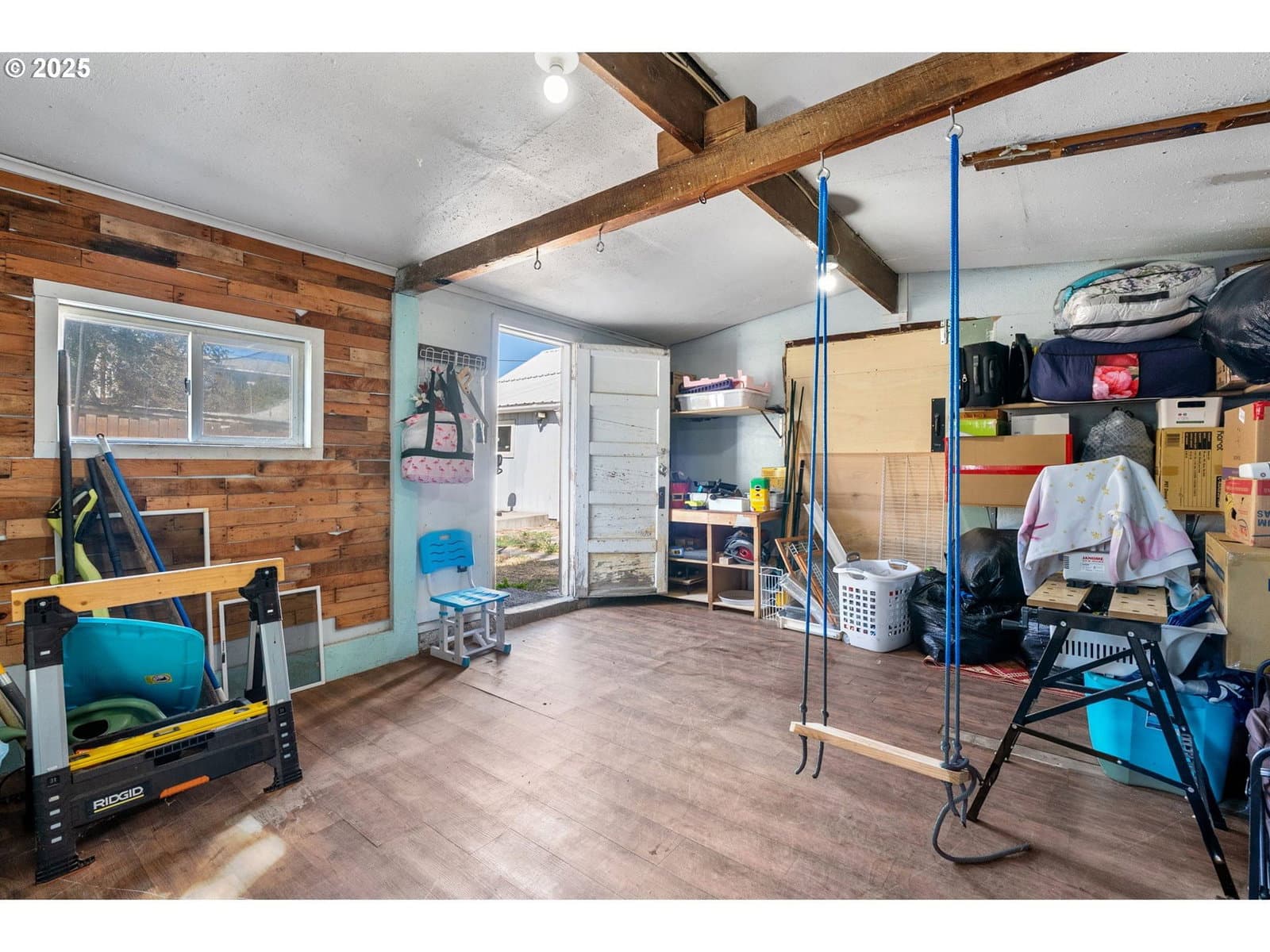Charming 2-Bedroom Cottage with Spacious Yard & New Updates – Affordable & Convenient! This delightful 2-bedroom, 1-bathroom cottage is full of character and charm, offering comfortable living with a focus on outdoor space and everyday convenience. Inside, you'll find a new mini-split system for heating and air-conditoning within a cozy and functional layout. A large bathroom with a new shower and toilet, practical kitchen with updated faucet and sink, and all appliances included—washer and dryer too! This home offers just the right blend of comfort and simplicity. Step outside and enjoy the incredible outdoor features that make this property stand out: Fully fenced front and back yards – perfect for pets or just enjoying your own private space. Covered front porch – a great spot to relax. Large concrete back patio – perfect for outdoor dining or entertaining. Garden boxes – ready for planting. Chicken coop – ideal for backyard farming. Trampoline & playground – fun for all ages. Grassy area – great for play or lounging. The garage interior is finished, offering extra room for storage, hobbies or a workspace and the large driveway provides plenty of parking space for vehicles, trailers or guests. Located in a convenient area close to shops, schools and commuter routes, this home combines affordability with practical features that are hard to find. Affordable, charming and ready for its next chapter – come see what makes this cottage so special!