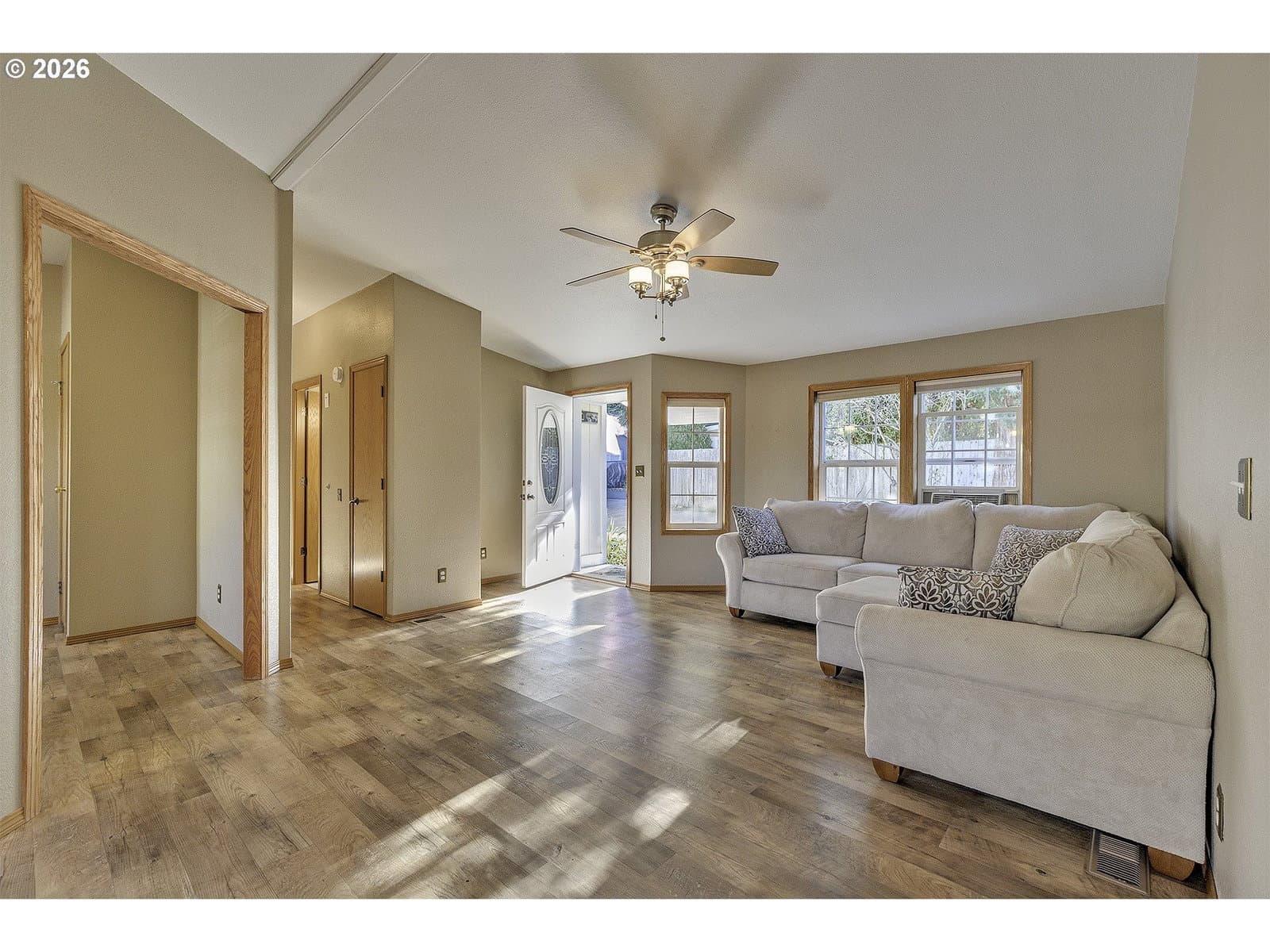 Beautiful single-level home in Beaverton, Oregon, offering the privacy and feel of a detached residence. This manufactured home sits on its own foundation with tie-downs and features 3 bedrooms and 2 bathrooms. The spacious primary suite includes an ADA-accessible shower and double sinks. Forced-air heating and numerous updates throughout the home, including the kitchen, primary bath, and guest bathroom.Enjoy the convenience of a full two-car attached garage, plus washer and dryer included. The outdoor space offers garden beds and plenty of room to create what you envision. Tucked away at the end of a quiet flag lot, this home provides a peaceful setting with great neighbors—an ideal combination of comfort, privacy, and functionality.