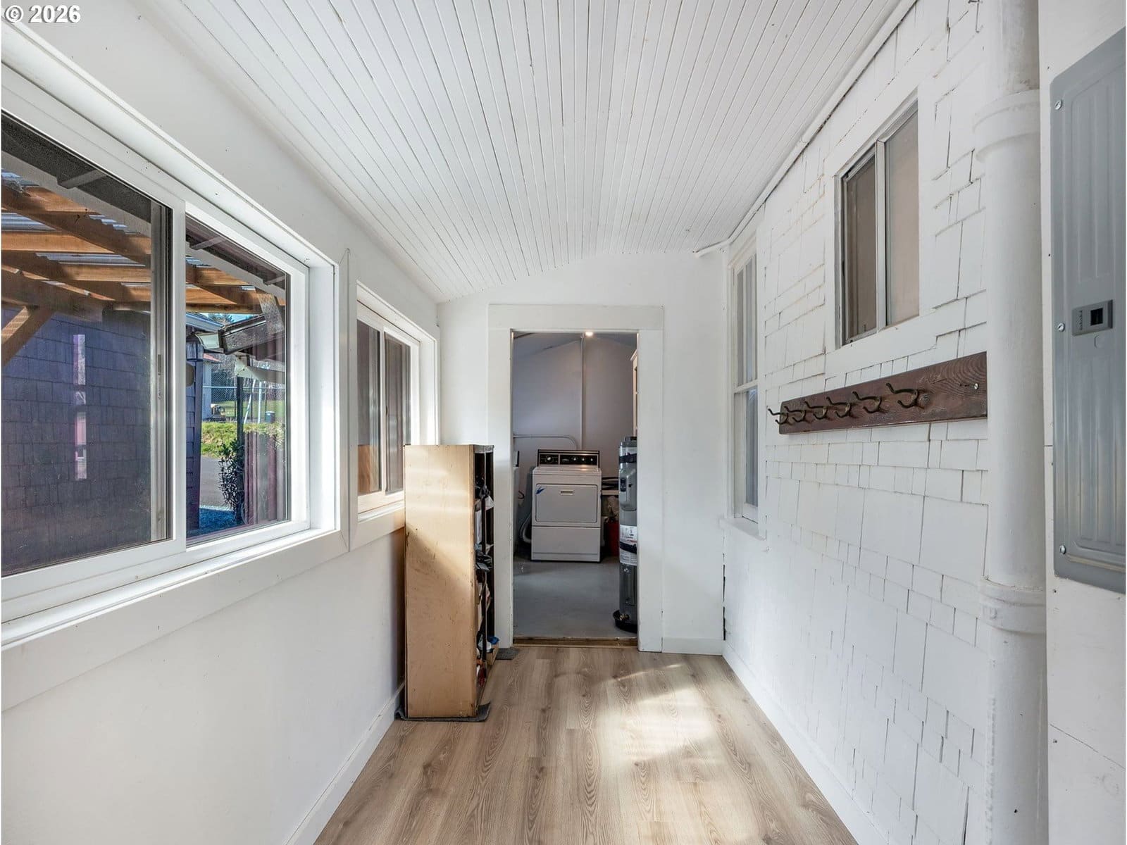 Incredible potential in the heart of Nehalem, this 1938 cottage offers timeless character & a functional layout with clear opportunity to update. The 1,114 sq ft home features 2 bedrooms and 1 bathroom, high ceilings, & abundant natural light. A bright mudroom adds everyday utility, while the formal dining room provides flexibility, easily reimagined as a 3rd bedroom with the dining as an eat-in kitchen. The half-story attic could offer the potential for expanded living space. Located directly across from Nehalem Elementary & just two blocks to the public kayak & fishing dock, the setting supports both convenience & coastal living. Some updates include: vinyl double pane windows & roof installed in 2018, heat pump, water heater, etc. The interior is ready for your vision. Connect with your contractor regarding any renovations and call your broker to schedule a viewing.