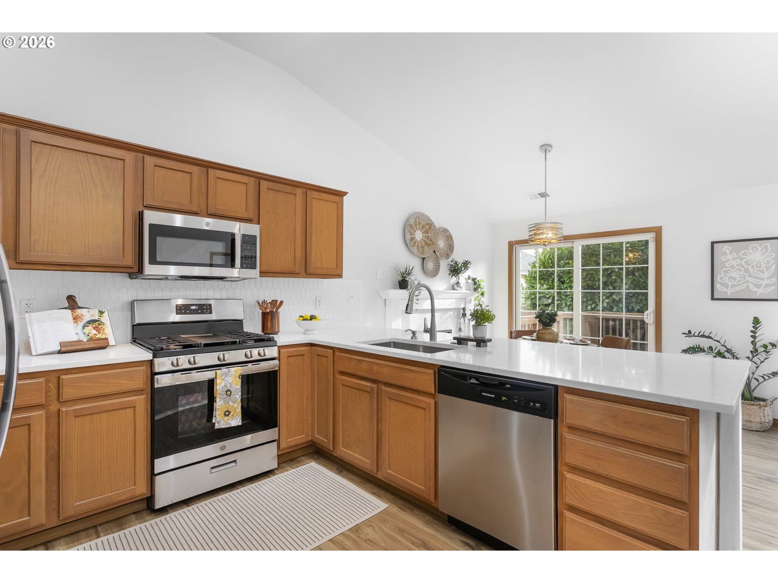 Freshly Updated & Move-In Ready! Welcome home to this beautifully refreshed one-level home with a 3-car garage, offering comfort, style, and convenience. Step inside to discover abundant natural light streaming through large windows, highlighting the brand new wood laminate flooring and fresh interior paint throughout. All new light fixtures for a bright, welcoming feel. The recently updated kitchen features stunning quartz countertops, full tile backsplash, a new stainless steel gas range and new microwave, and a new sink and garbage disposal. Both bathrooms shine with new quartz counters, new fixtures and finishes. Two of the bedrooms feature brand new carpet, adding a cozy touch. Enjoy easy indoor-outdoor living — step out onto your spacious deck, perfect for entertaining or relaxing. The fenced backyard includes a dog run, a large shed, and a sprinkler system to keep everything lush and green. Plenty of room for your RV or boat storage, plus extra storage under the house. New roof in summer of 2023. Located close to the golf course, this turn-key home truly has it all. Don’t wait — this one won’t last long!