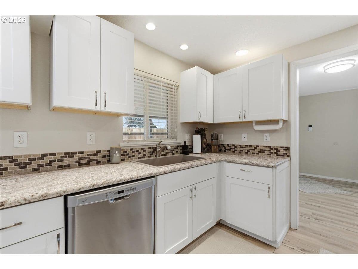 This charming home is just minutes from downtown Vancouver and offers 3 bedrooms and 2 bathrooms. A thoughtfully designed floor plan creates an open and spacious feel throughout. The home has a beautifully remodeled kitchen with stainless steel appliances and storage space organizers. The primary suite has closet organizers as well. Step outside to a generous backyard with a large covered patio, perfect for relaxing or entertaining. Fully fenced yard featuring a front security gate. Two backyard sheds perfect for storage, hobbies, or a workshop. This lovely home is truly a must see!
