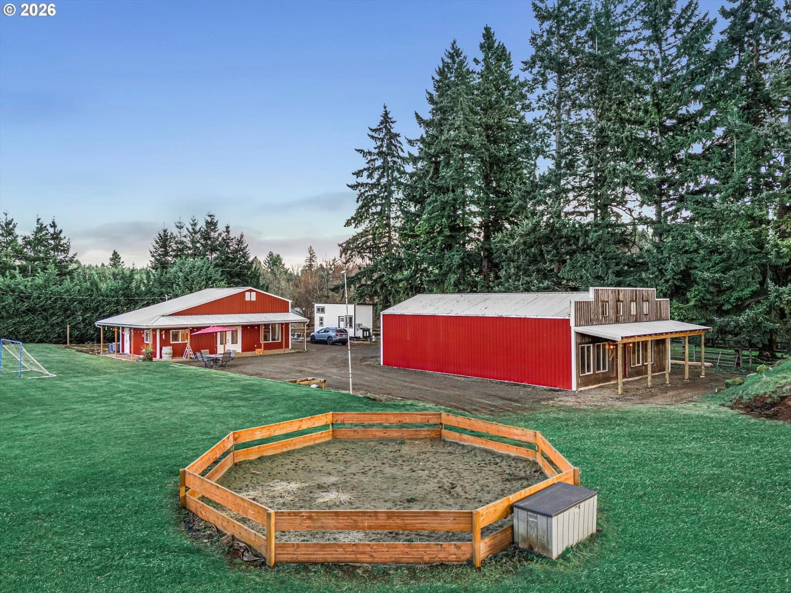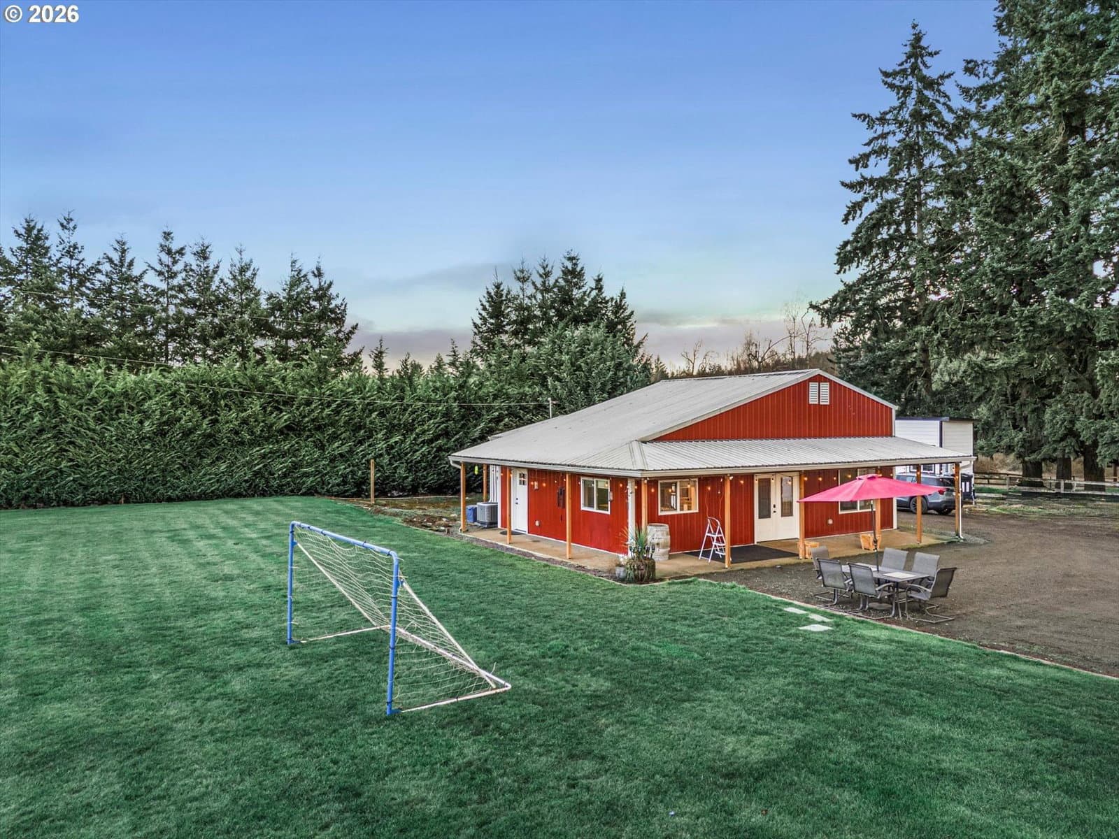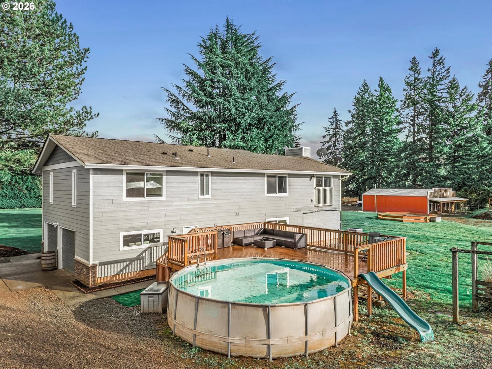 Rare opportunity to own a beautifully maintained acreage property in Oregon City offering space, versatility, and incredible lifestyle amenities. Situated on 2.37 flat usable acres, this 2,327 sq ft split-level home features 4 bedrooms and 3 full bathrooms and has been meticulously cared for. The property includes multiple outbuildings, including a large shop, barn, and a fully equipped detached ADU (non-conforming) perfect for multigenerational living, guest quarters, or private workspace. The ADU features two bedrooms, 2 bathrooms, and a stunning custom kitchen with stainless steel appliances, creating a comfortable and stylish independent living space. Outdoor living shines here with a brand new deck, expansive open land, and plenty of room for animals, hobbies, or recreation. Enjoy the spacious yard, sledding and/or slip n' slide hill, in-ground trampoline, built-in Gaga ball pit, creating the perfect setting for year-round fun and unforgettable memories. The home itself is in impeccable condition, offering a rare combination of privacy, usability, and flexibility while still being conveniently located near all that Oregon City has to offer. Properties like this — flat acreage with multiple structures and move-in ready condition — rarely come available.