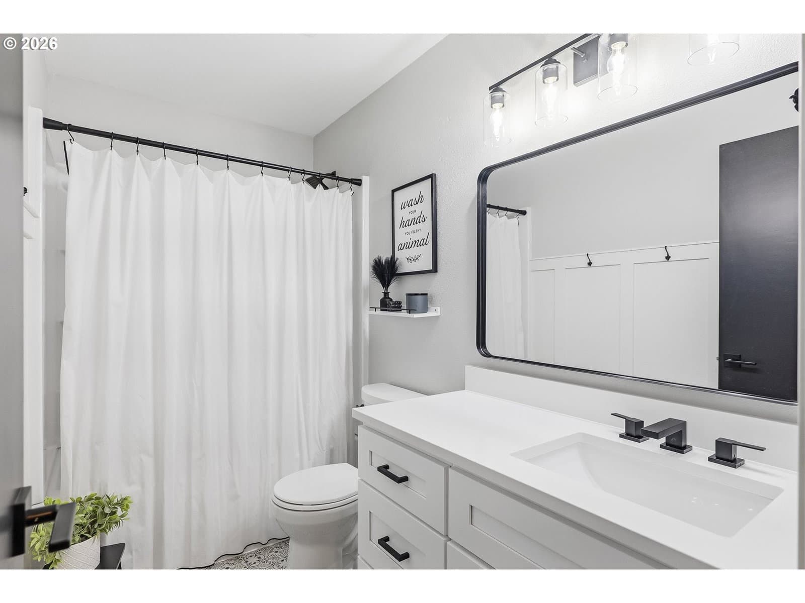 Tucked into a desirable neighborhood with no HOA, this beautifully updated home welcomes you with fresh interior paint and an abundance of natural light that creates an immediate sense of warmth and ease. Thoughtfully designed for both everyday living and effortless entertaining, the layout offers a seamless balance of space and function. At the heart of the home, the fully updated kitchen shines with quartz countertops, newer appliances and a large island with seating for six—perfect for gathering, hosting or casual meals. A bright breakfast nook overlooks the backyard, while the kitchen opens to the inviting family room, complete with a cozy gas fireplace and direct access to the deck for true indoor-outdoor living. A formal dining room and separate living room offer versatile spaces ideal for both entertaining and relaxed, everyday living. Upstairs, four spacious bedrooms provide comfort and privacy, including a beautiful primary suite, along with an updated guest bathroom. The main-level laundry room adds everyday convenience. Meticulously maintained and upgraded, the home features a new A/C and furnace (2025), newer water heater (2021), newer carpet, durable LVP flooring and newer garage doors. The garage is enhanced with a polyurea-coated floor, while modern features such as a Nest thermostat, ADT security setup, sprinkler system, and Ziply Fiber connectivity elevate daily living. Washer and dryer (2021) are included. Step outside to a private, flat backyard with a deck off the family room—ideal for entertaining, relaxing, or enjoying quiet mornings. Planter boxes and a storage shed add charm and functionality. Located just minutes from parks, walking paths, schools, and easy I-5 access, with close proximity to Bridgeport Village, shopping and dining. A rare blend of comfort, thoughtful updates and an exceptional location—move-in ready and designed for today’s lifestyle. Seller is a licensed real estate agent in the state of Oregon.