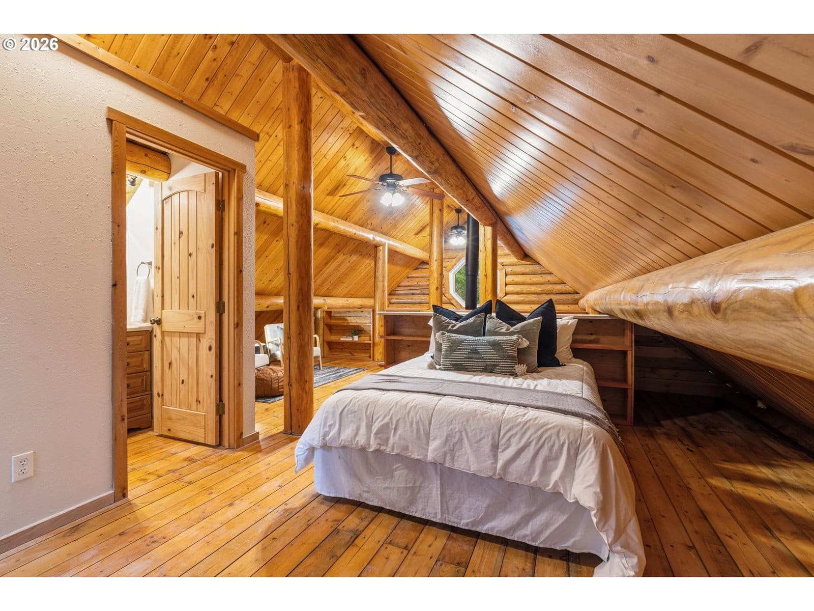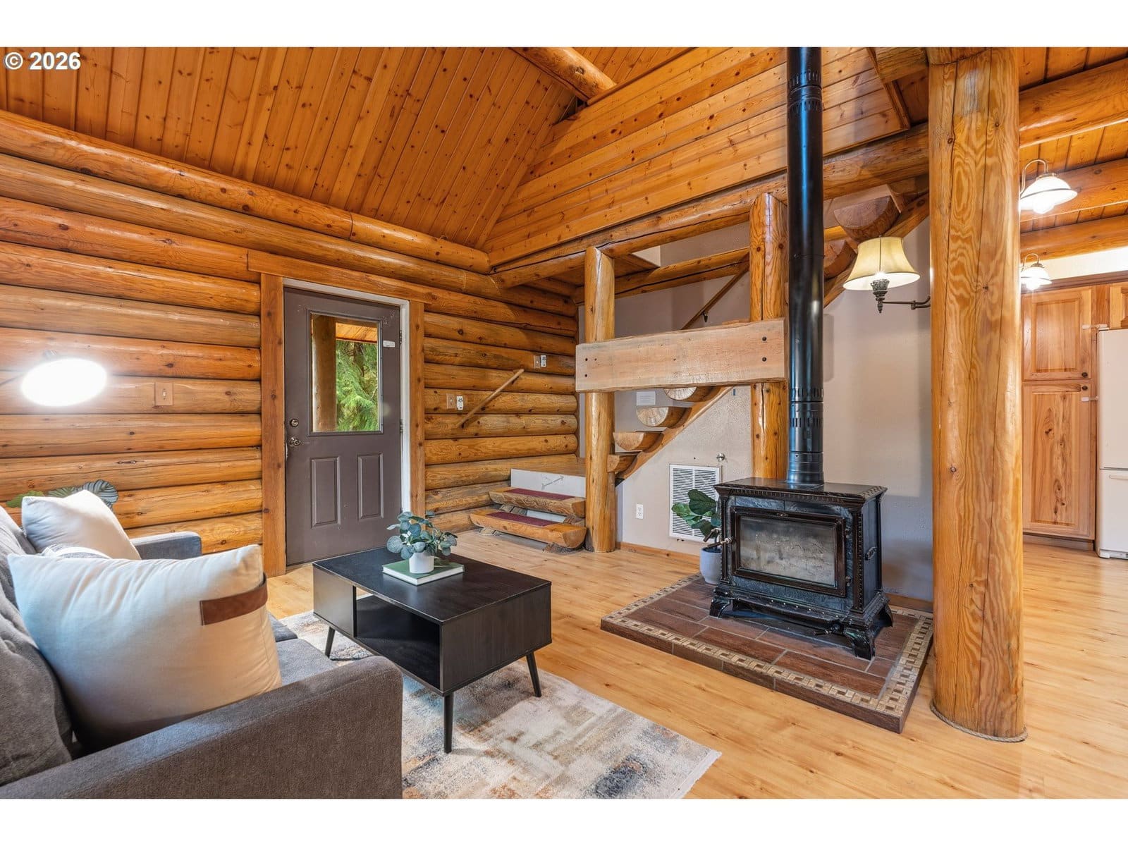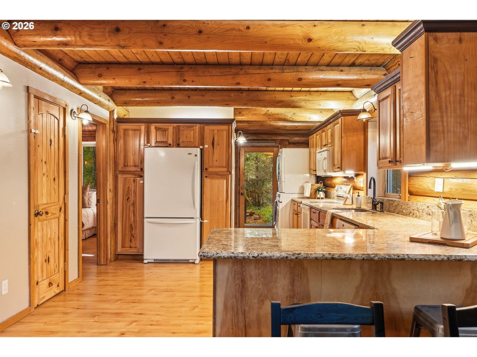 Tucked beneath a canopy of towering firs, this beautifully maintained log cabin offers a true forest retreat in the heart of the Gifford Pinchot National Forest—perfect for full-time living or a peaceful getaway. Wraparound porches invite quiet mornings with coffee and relaxed evenings surrounded by nature. Inside, warm wood tones and thoughtful design create a cozy yet functional layout featuring two bedrooms and two bathrooms, including an oversized primary suite. The kitchen blends rustic charm with modern convenience, showcasing granite countertops, hickory cabinetry, and generous workspace. A soapstone wood stove provides inviting warmth and ambiance throughout the home. Set among trails, wildlife, and endless outdoor recreation, this lovingly cared-for cabin delivers rare privacy while remaining just about an hour from Portland. A special opportunity to own a timeless mountain escape.