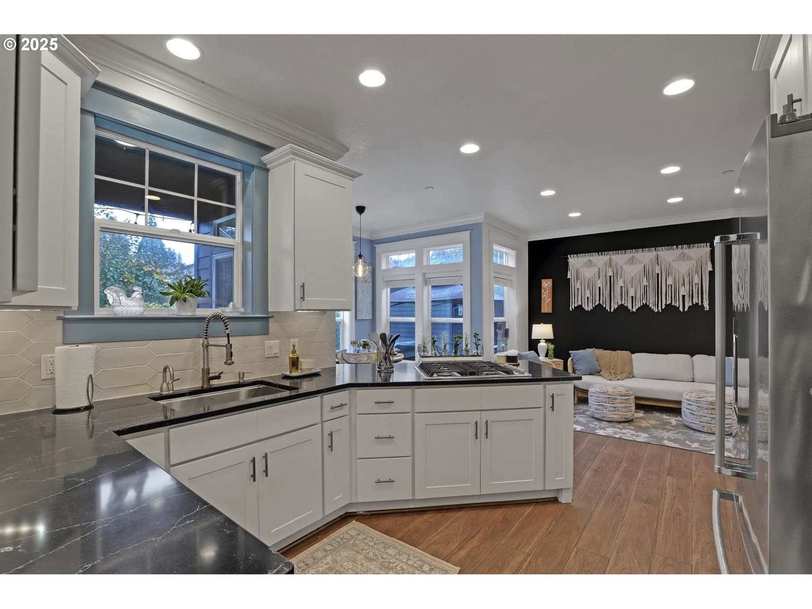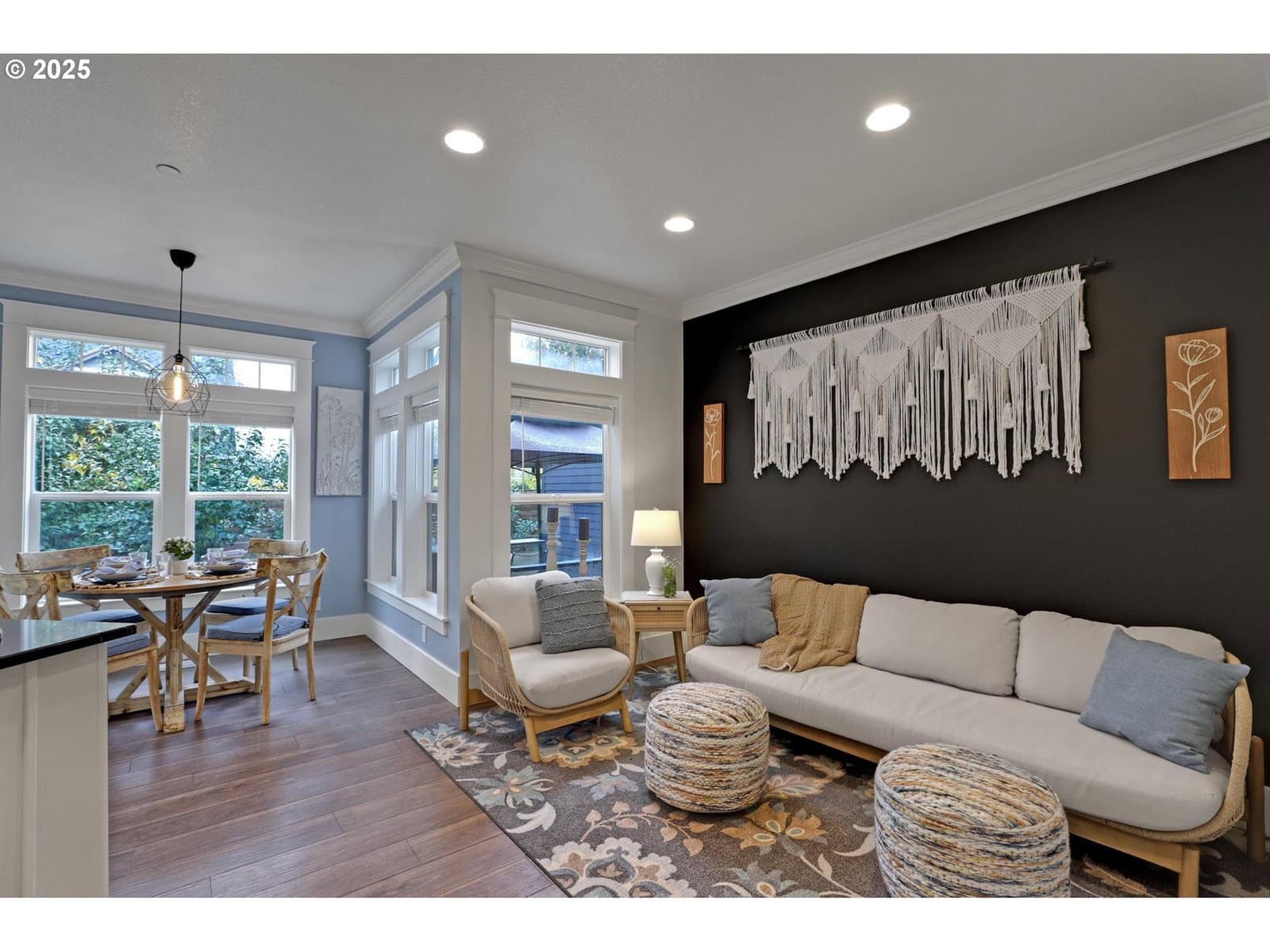 Stylish updated traditional home with a flexible floor plan that makes room for everyone. The Main floor includes a Den perfect for home office, a lovely living room with fireplace, dining room with slider to covered outdoor space, a recently updated kitchen has a built in cook top, convection oven & microwave, stainless appliances, quarts counters & tile backsplash; it will surely inspire the chef and baker in you. The eat in dining looking out over the lovely yard, and there's another flexible space that encourages friends and family to gather. Don't miss the large pantry off the kitchen. A stylish powder room rounds out this level. Main floor is newer luxury vinyl, easy care and pet friendly. The second level has a nicely appointed primary suite; with walk in closet, bath w/ double vanity, soaker tub & walk in shower. This level has a second bath, two bedrooms, laundry room, and a large bonus room with a closet, make it whatever you need. This home boasts indoor and outdoor spaces perfect for entertaining year round. A landscape architect designed this very special oasis. You'll find multiple fruit trees, berries, raised beds, several hard scape spaces for dining, cooking, playing out of the rain, and includes a gas fire pit to enjoy. Don't miss the creative "tree house" and the outdoor shed that has built in shelving for storage and garden tools. Fully fenced. Don't let the flag lot keep you away, you have to see this, it is truly special. Solar panels convey and save 50% on power! The sellers also enjoyed the close proximity to Trader Joes, Starbucks, Concord Park & Comm Center, brand new and loaded with amenities, and the New Oak Lodge Library. Come tour it and please reach out if you have any questions.