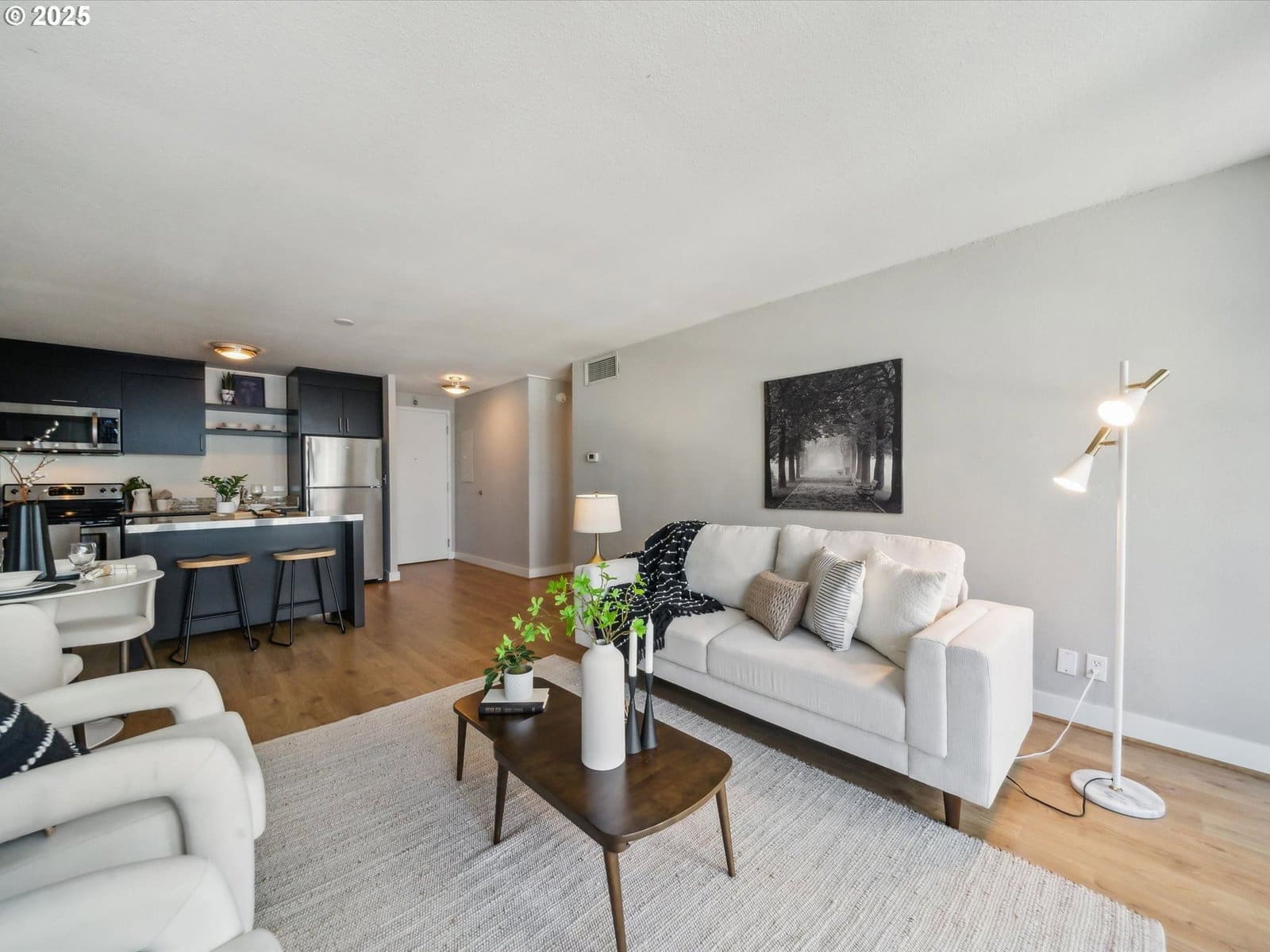 Meticulously maintained condo at Harrison West. Unit 9C is a stunning west facing condo on the 9th floor, with floor to ceiling windows and a deck perfect for enjoying sunsets with breathtaking city and lush canopy tree top views in South Downtown Cultural District. The condominium features an open floor plan, has been updated with laminate floors, fresh cabinets, stainless appliances, and a custom California closet & new window/closet coverings in the primary bedroom. Harrison West amenities include modern secure lobby, on-site manager, dog friendly, well managed HOA with a community pool, hot tub, sauna with included fiber internet, sewer, water & trash. Plus, a secure underground deeded parking space and private storage unit are included. Enjoy the Portland lifestyle you’ve been dreaming of, just blocks from the farmers market, PSU, parks, fountains, trails, theaters, museums, the waterfront and transit.*New water heater with auto detect. 2019 Furnace/AC. New appliances all included.