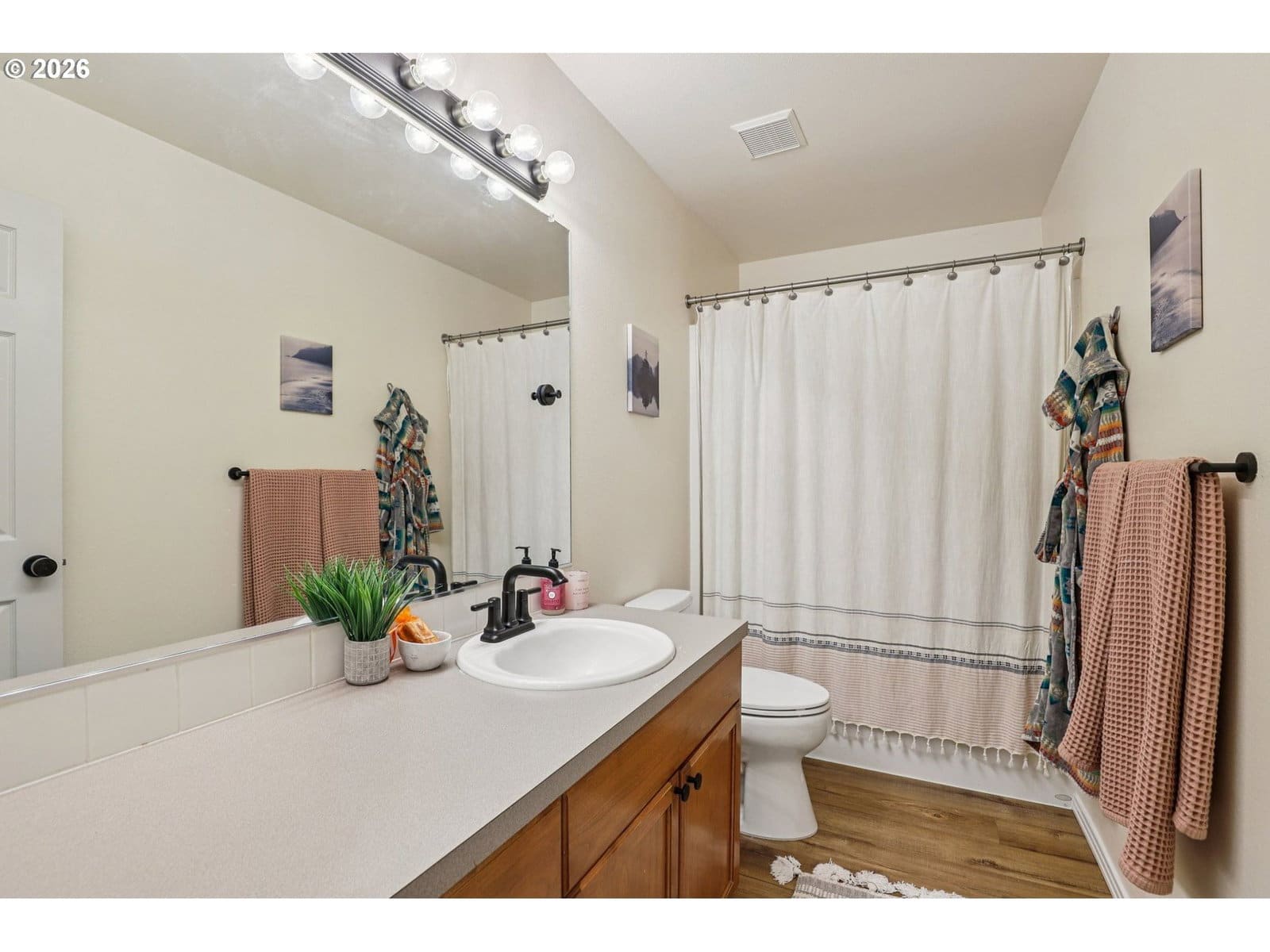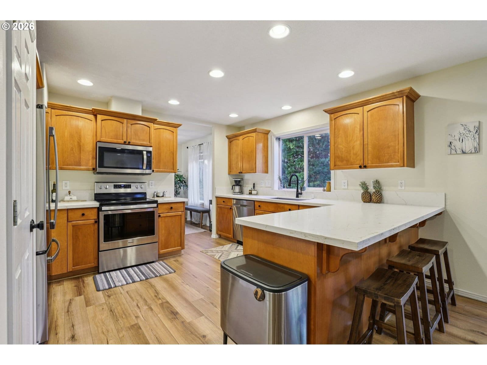 Discover modern comfort in this beautifully updated contemporary home, nestled in a serene, park-like setting within the highly desirable Camas neighborhood. This fresh 4-bedroom, 2.5-bath residence boasts an open, light-filled floorplan perfect for relaxed living and effortless entertaining. The heart of the home is the stylish updated kitchen featuring sleek quartz counters, ample cabinetry, and a sunny breakfast nook overlooking the living room. A formal dining area adds elegance for special gatherings. Recent upgrades include new LVP flooring and carpet, fresh interior paint, modern lighting, and beautifully refreshed bathrooms. Large vinyl windows flood the spaces with natural light. Upstairs, the generous primary suite is your private retreat, complete with a spacious walk-in closet and luxurious en-suite bath offering dual vanities, a deep soaking tub, and separate shower.Major systems are newer: roof, furnace, A/C, and smart thermostat for peace of mind. Step outside to your private, low-maintenance backyard oasis with fresh landscaping, a new shed, and smart irrigation—ideal for year-round enjoyment. Prime location with top-rated Camas schools, nearby parks, shopping, and quick access to Hwy 14 for easy commutes to Vancouver and Portland. Welcome home to the lifestyle you deserve!
