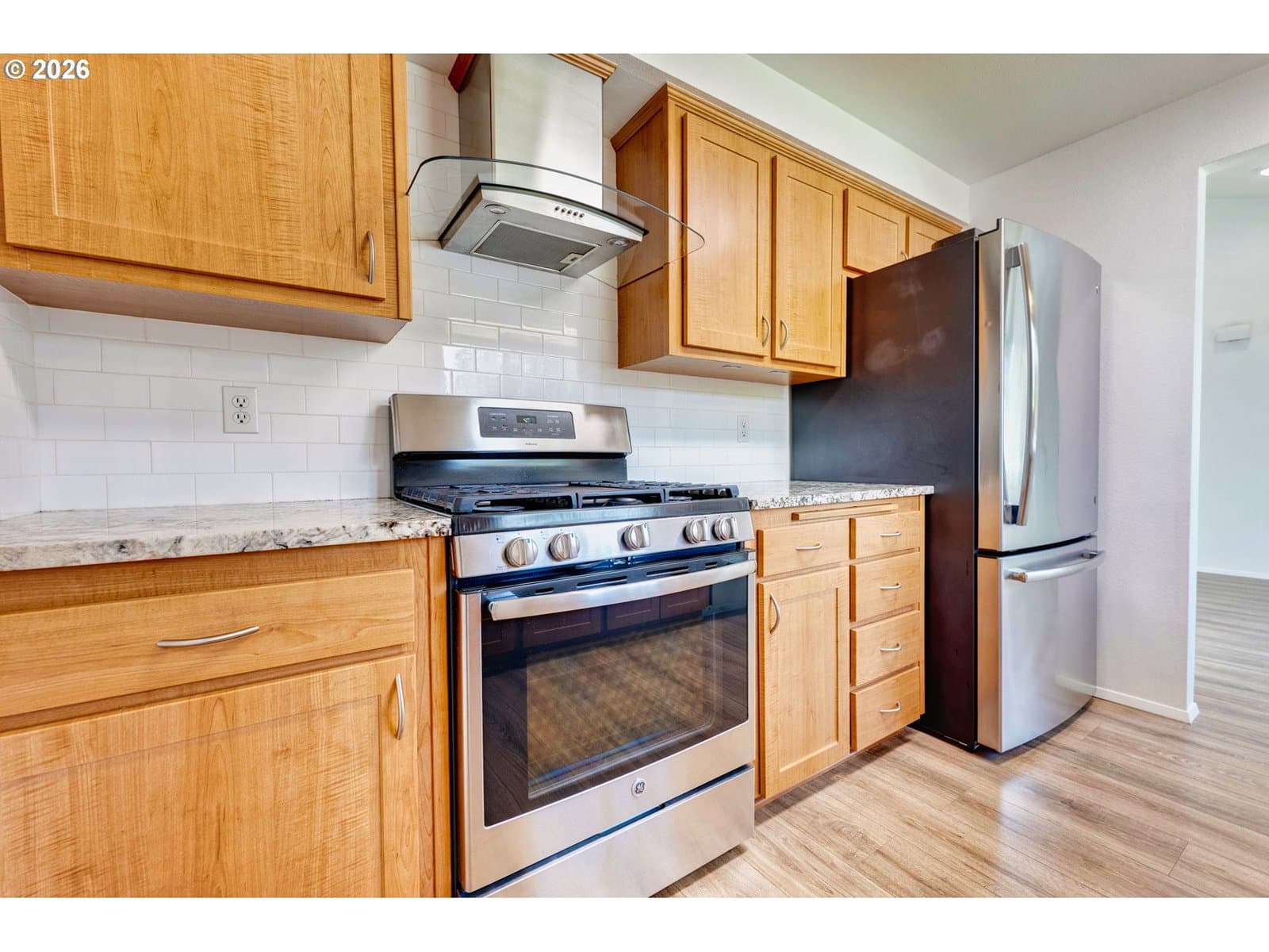 Gas Water Heater, Washer, Dryer, Dishwasher, Disposal, Free-Standing Gas Range, Free-Standing Refrigerator, Plumbed For Ice Maker, Range Hood