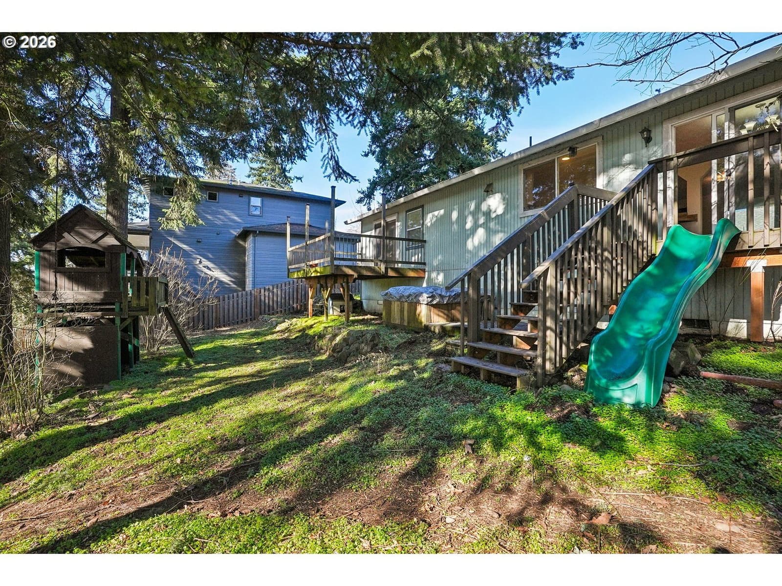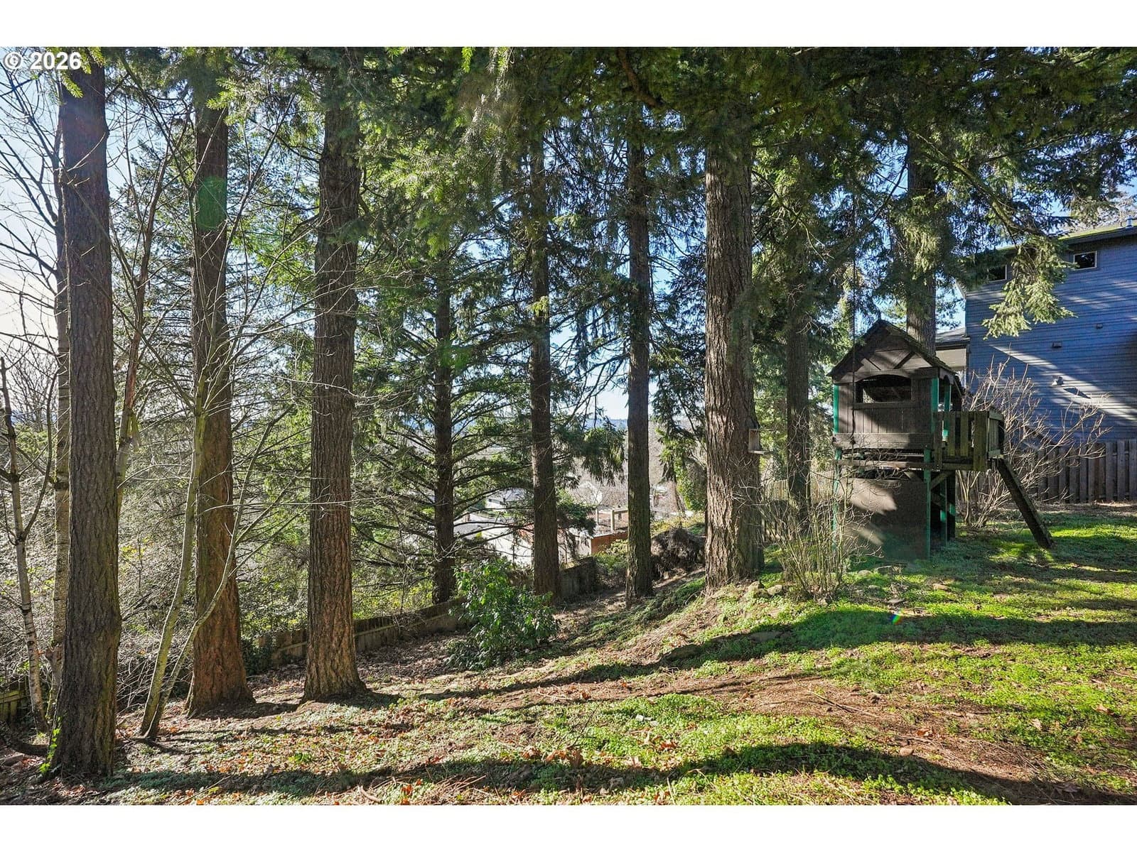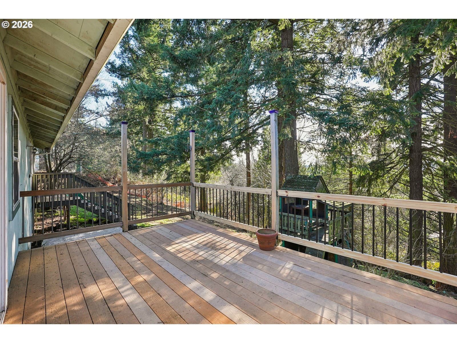 Your own private forested retreat! This home boasts hardwoods throughout with FRESH interior paint on a third of an acre. Enjoy your two outdoor decks as sunlight filters through the trees during the spring and summer, while the hot tub provides year-round relaxation temptation with sweeping views. The dining, living room, and kitchen areas flow seamlessly from one to another with backyard access through a sliding door next to the kitchen. An attached garage and tool shed out front give you plenty of room for all your parking and storage needs. Other features include a new water heater in 2023, 50-year roof less than a third of the way through its lifespan, recently updated back deck, and a high efficiency heat pump. [Home Energy Score = 5. HES Report at https://us.greenbuildingregistry.com/green-homes/OR10244423]