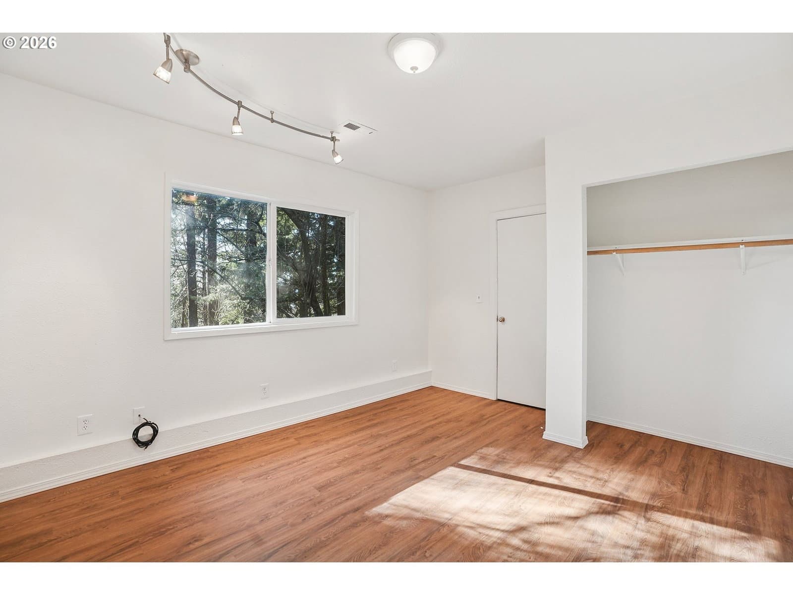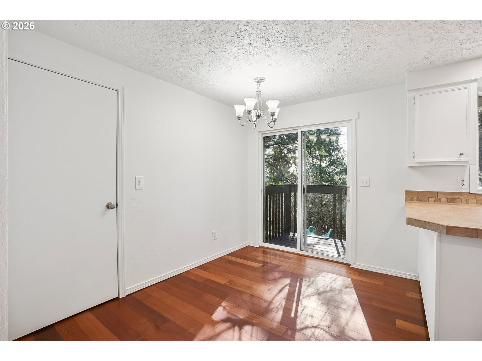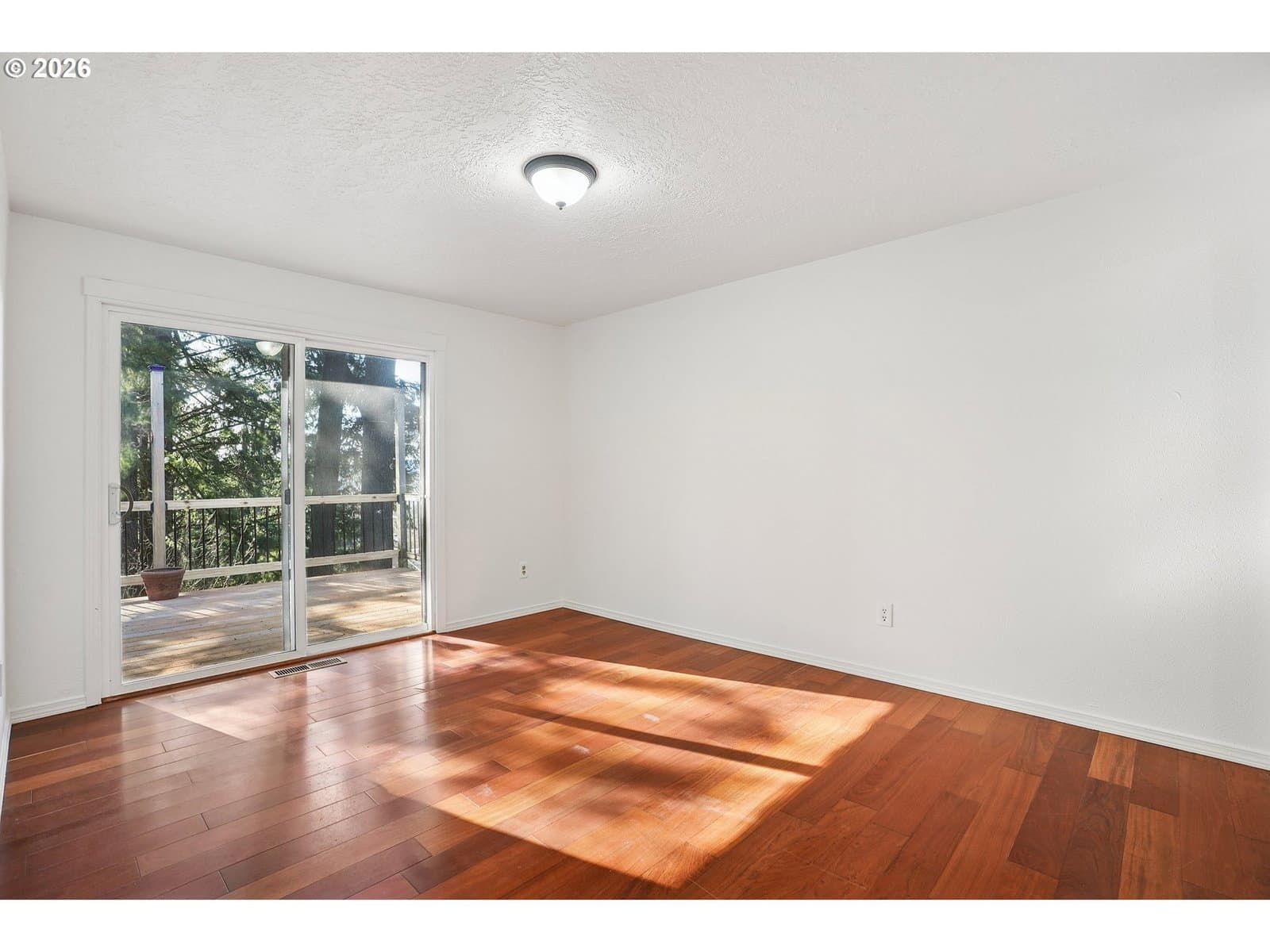 Your own private forested retreat! This home boasts hardwoods throughout with FRESH interior paint on a third of an acre. Enjoy your two outdoor decks as sunlight filters through the trees during the spring and summer, while the hot tub provides year-round relaxation temptation with sweeping views. The dining, living room, and kitchen areas flow seamlessly from one to another with backyard access through a sliding door next to the kitchen. An attached garage and tool shed out front give you plenty of room for all your parking and storage needs. Other features include a new water heater in 2023, 50-year roof less than a third of the way through its lifespan, recently updated back deck, and a high efficiency heat pump. [Home Energy Score = 5. HES Report at https://us.greenbuildingregistry.com/green-homes/OR10244423]