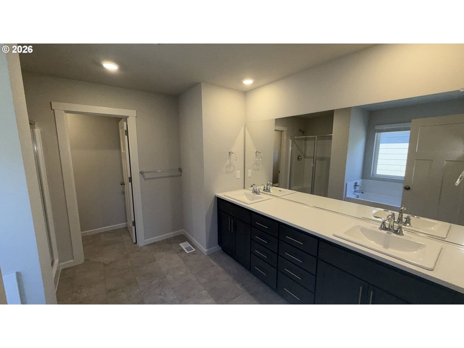 Welcome to Brynhill by Lennar and the Ash plan in beautiful North Plains. This move-in ready two-story 3 bedroom, 2.5 bath single-family home features an open floorplan on the first level, where the great room, kitchen and dining room share a footprint and offer direct access to a peaceful patio for effortless indoor-outdoor living and entertaining. All three bedrooms can be found upstairs, including the luxe primary suite with an ensuite bathroom with double vanity and separate soaker tub and walk-in shower and spacious walk-in closet. Interior highlights include quartz countertops, shaker-style cabinets, LVP flooring in kitchen/entry way, LVT flooring in baths, a cozy fireplace in the great room and much more. The outside of the home features charming window shutters, shake shingle accents and a tapered entryway column come together to create an American-inspired exterior. This home also includes central air conditioning, a refrigerator, washer and dryer, and blinds—all at no extra cost! The Brynhill community is loaded with amenities including multiple onsite parks featuring pickleball, basketball, a putting green, a cornhole area, playgrounds, and picnic areas. Renderings and sample photos are artist conceptions only. Photos are of similar or model home so features and finishes will vary. Taxes not yet assessed. Now Priced as a LOW PRICE LEADER! Incentives available with the use of our preferred lender. HOMESITE 446