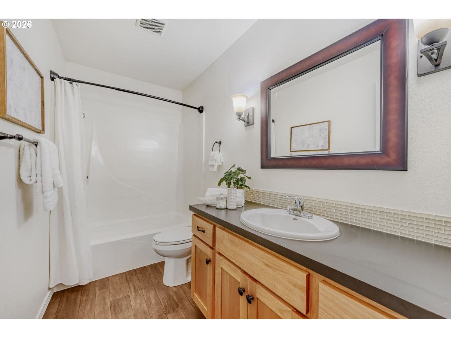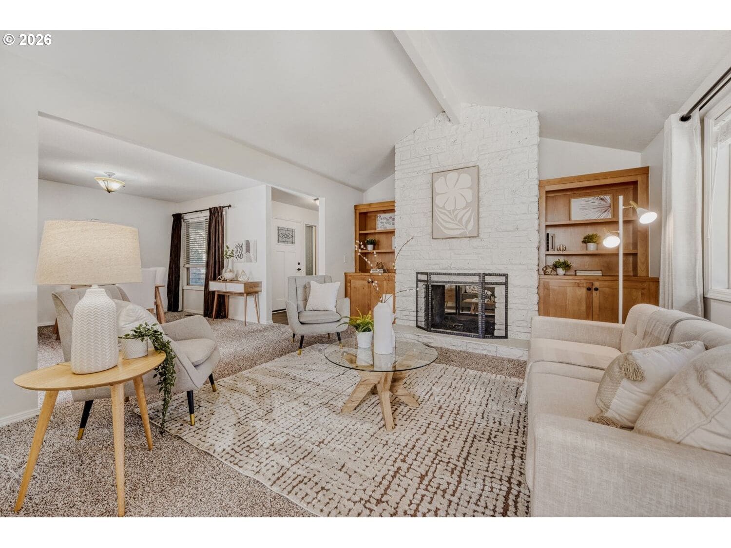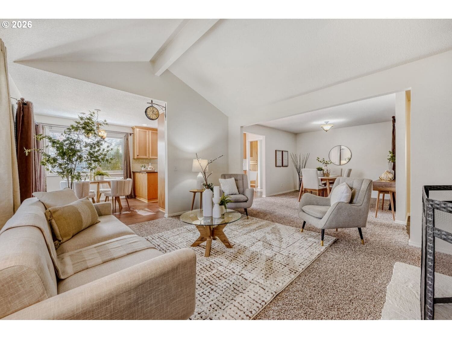 Offer received, offer deadline: Monday, 3/2 at 10AM. Gorgeous turnkey ranch in desirable Hartwood Hylands neighborhood! Situated on a peaceful loop street, this northwest contemporary has been immaculately maintained and fully updated. Gourmet kitchen offers shaker-style cabinets, quartz countertops, full-height tile backsplash, stainless steel appliances, and dining nook. It's open to the vaulted family room, featuring a floor-to-ceiling two-way stone fireplace and built-ins. Oversized primary suite offers double closets and an updated bathroom with new walk-in shower. High-quality construction including vaulted ceilings with exposed beams, large room sizes, and abundant window space for great natural light. Numerous updates including white doors and millwork, all-new interior paint, updated fixtures and hardware, and more! Fully fenced backyard boasts large patio, tool shed, mature landscaping, and exceptional privacy. Outstanding location, just steps from numerous THPRD parks and trails!