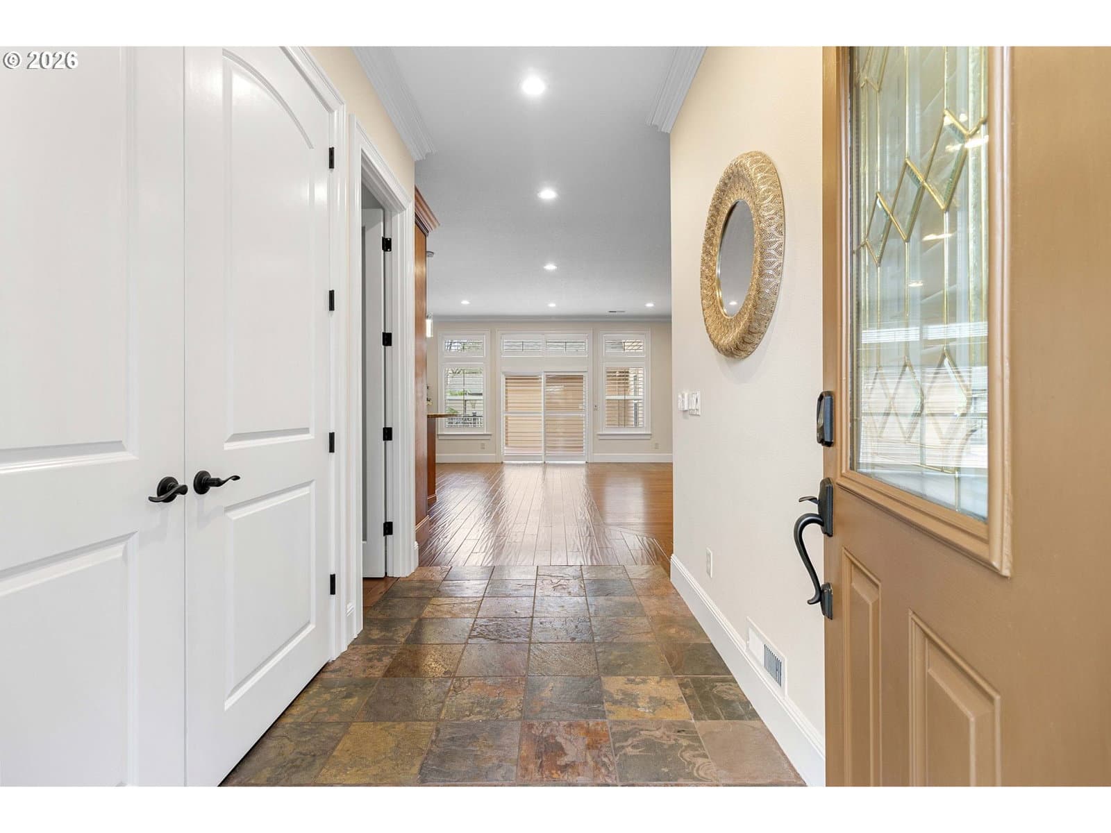 This well maintained and updated 1 level contemporary craftsman home is a rare find, with spacious rooms, wide accessible hallways, and grand spaces with 10' ceilings in the main living areas. It was fully remodeled and updated in 2007 with a 1400 S/F front addition that included the gourmet kitchen, main living area, office, laundry room and a deep 2+ car garage. Additional interior improvements include wood floors, custom shutters on all windows and a remodel of the primary bedroom bath and suite in 2019. The kitchen features abundant cherry cabinetry, granite counters with an eating island, gas convection stove, a sleek and powerful range hood, dual sinks and a microwave nook. The large, spa-like primary suite looks over the garden and offers a huge walk in shower with dual shower heads, dual sinks with quartz counters, and is currently open to the 4th bedroom for added space and flexibility. Gardeners will love the sunny, level .44 acre lot with raised beds, fruit trees and Zen meditation garden. Have hobbies or a business? The backyard has a detached garage/shop with 220 power, plus additional storage containers that offer incredible opportunity to pursue your goals and passions. The yard is fully fenced and has a large, custom gate to allow for RV access/storage. An expansive back deck with garden view and spacious paved patio make this a fabulous place to entertain. The finished attached garage has high ceilings, epoxy floors, plug for back-up generator, and tall garage doors allow high vehicle/van access and room for your toys for work or play. If you have future development dreams, check with the City to find out lot division or cottage cluster possibilities on this R-7 lot. Call your agent to schedule a viewing today! [Home Energy Score = 4. HES Report at https://rpt.greenbuildingregistry.com/hes/OR10093363]