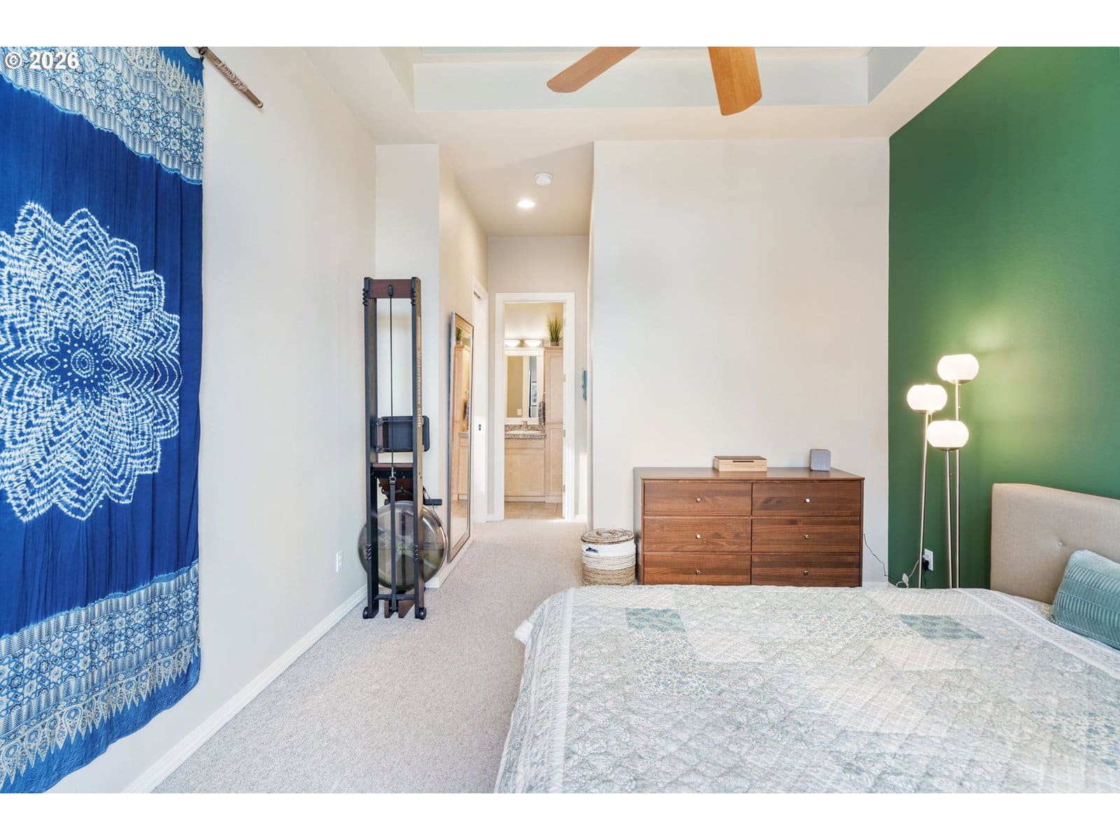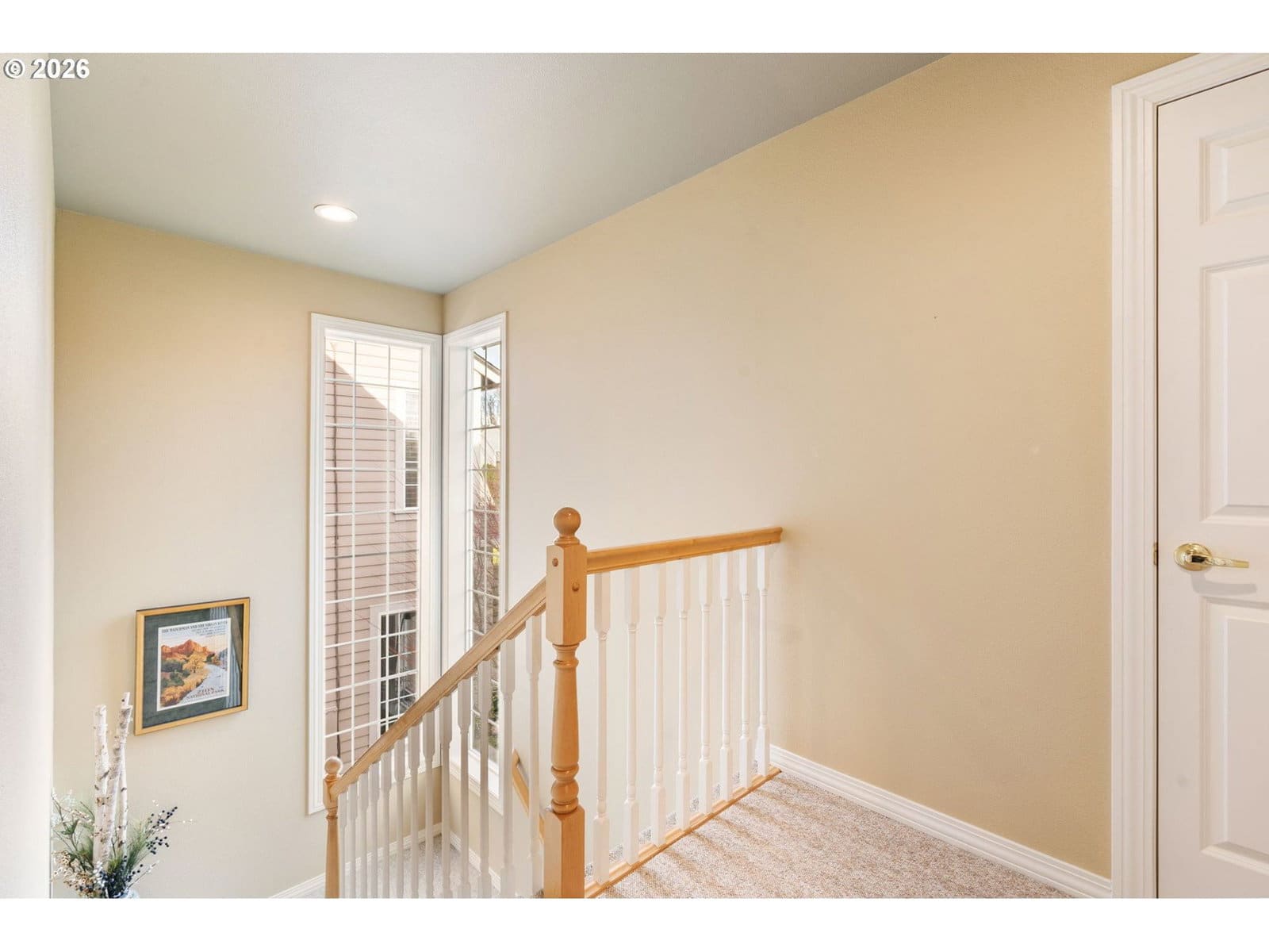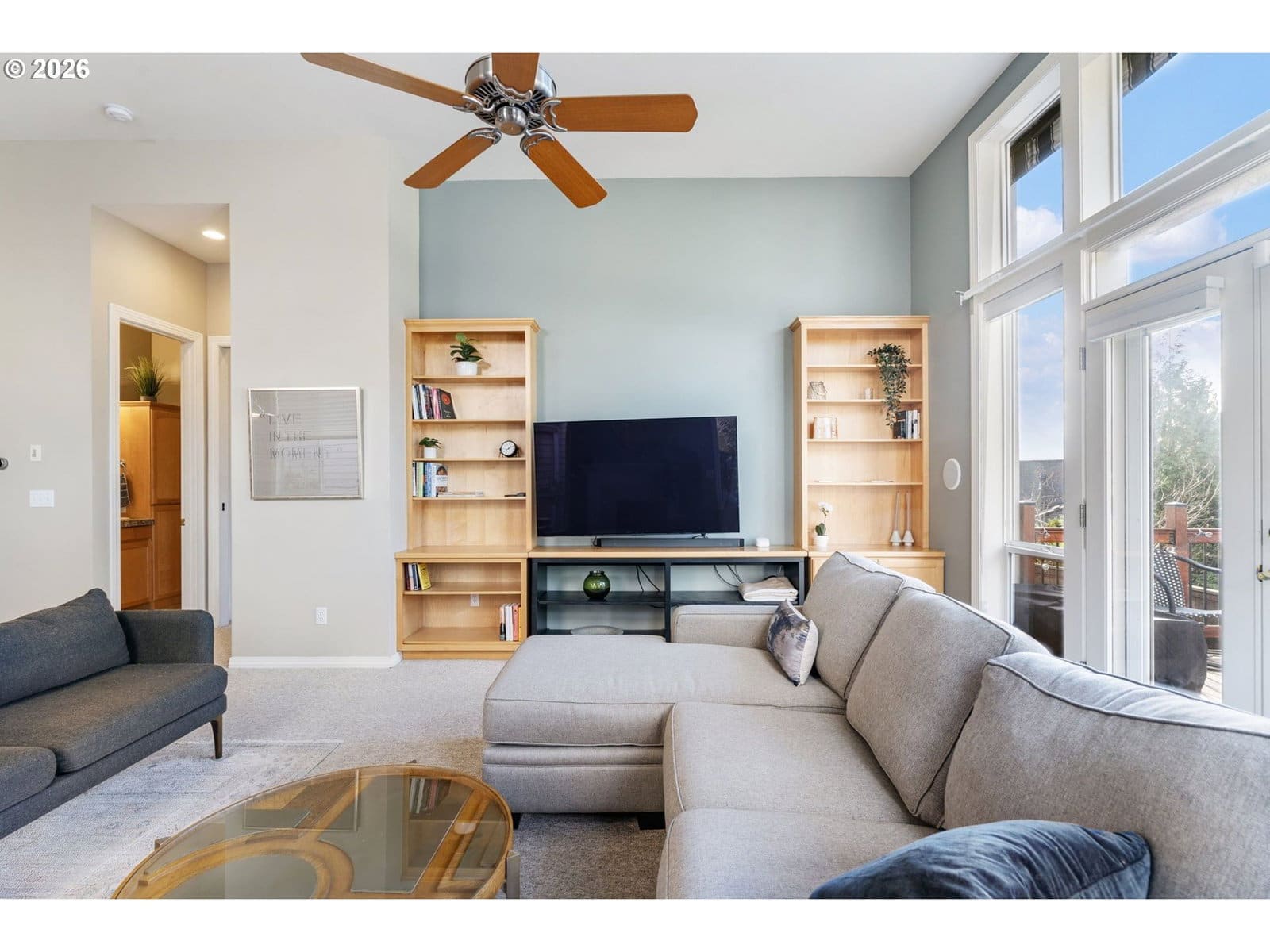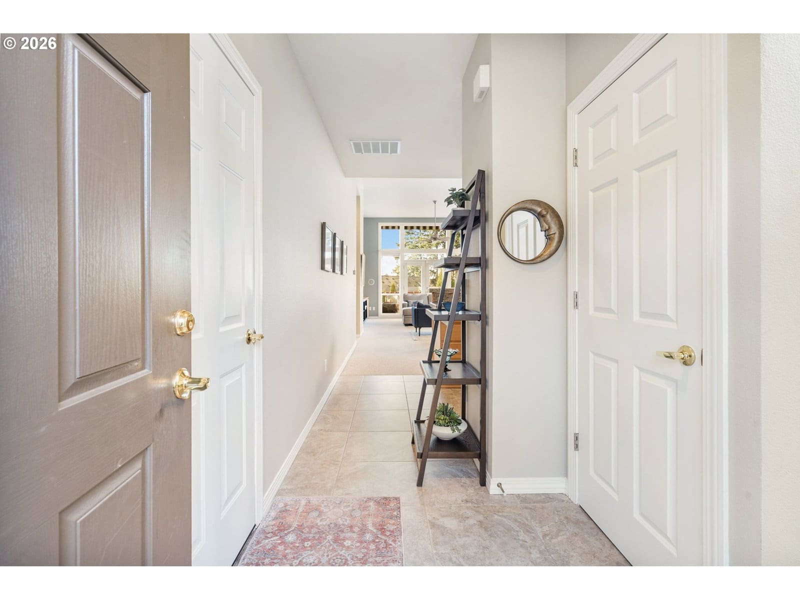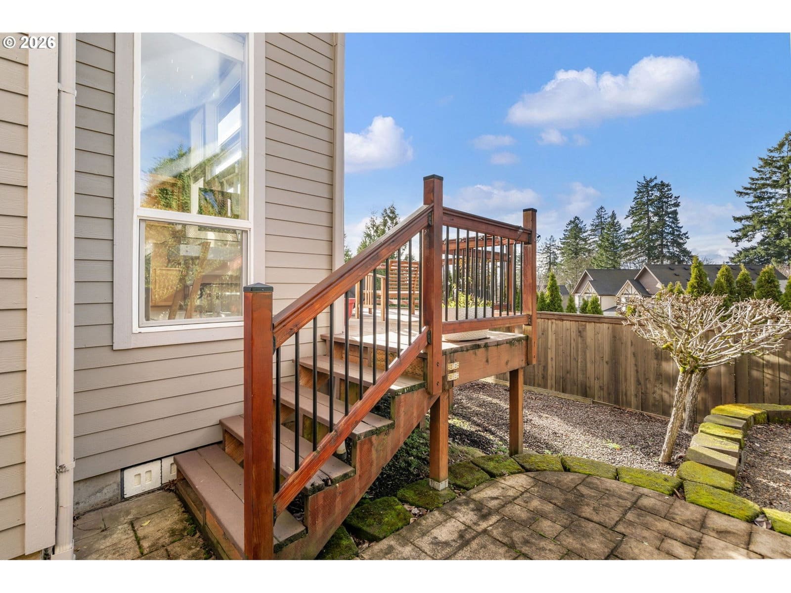 Located in Gentrys, a desirable gated community in Fisher’s Landing, this home offers a private, quiet setting adjacent to a greenbelt. Shopping and dining are nearby, with easy access to freeways and convenient connections to PDX. Inside, soaring 12-foot ceilings and oversized windows fill the main living space with natural light, creating an open and airy feel throughout. The open-concept layout offers an easy flow between the kitchen, dining, and living areas, ideal for both everyday living and entertaining. The kitchen features stainless steel appliances, granite countertops, and tile flooring, providing a functional and timeless space. The main-level primary suite offers a comfortable retreat with a walk-in closet and an ensuite bath featuring a walk-in shower. Upstairs, two additional bedrooms are connected by a Jack-and-Jill bathroom, creating a flexible and practical layout.