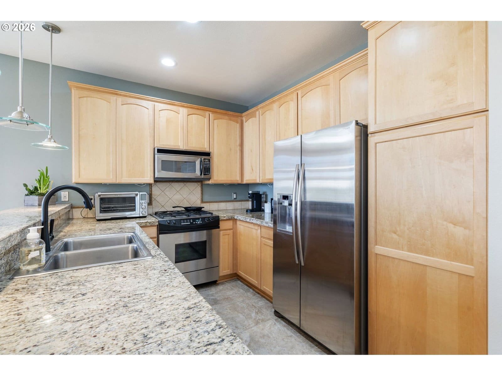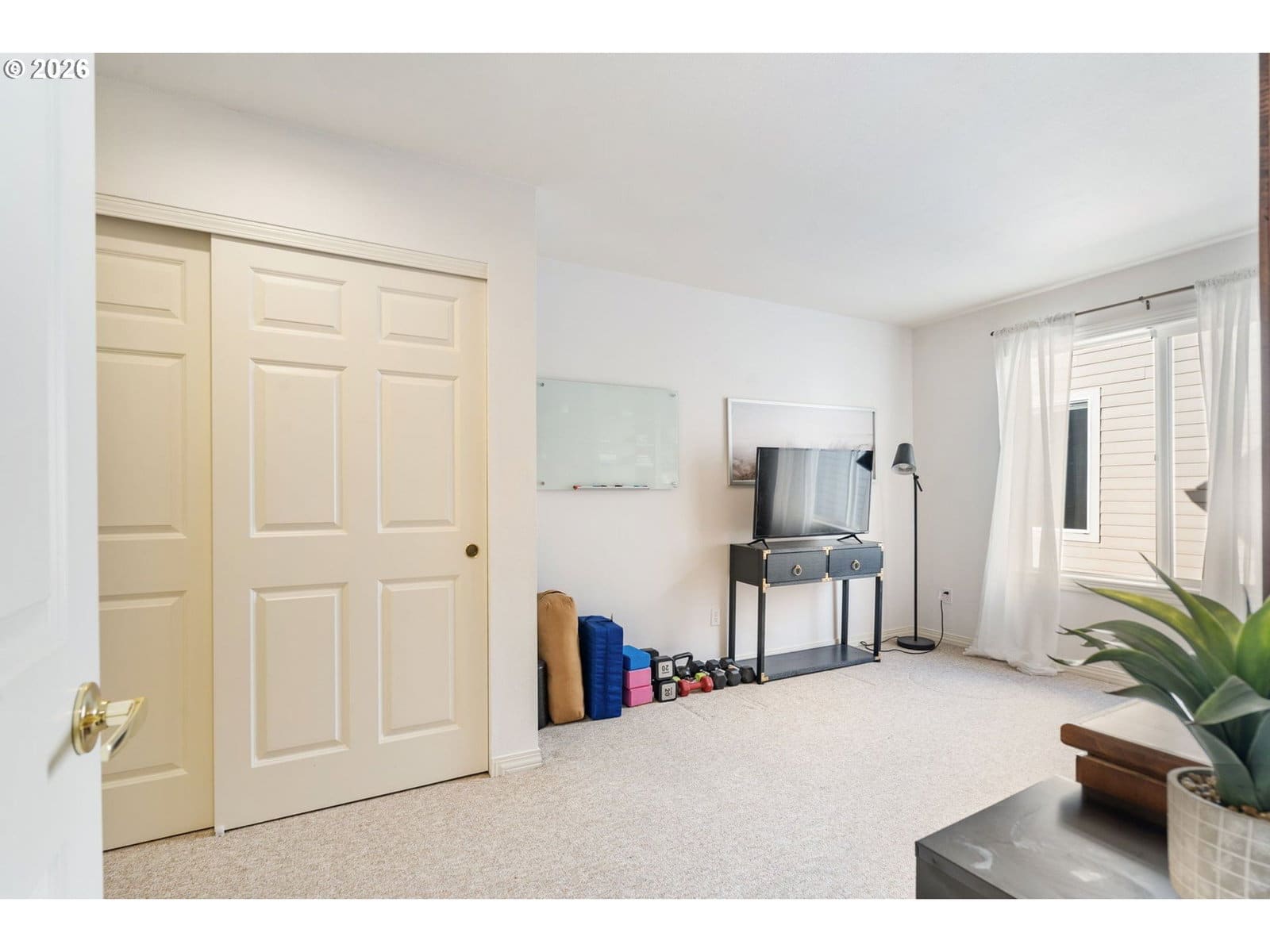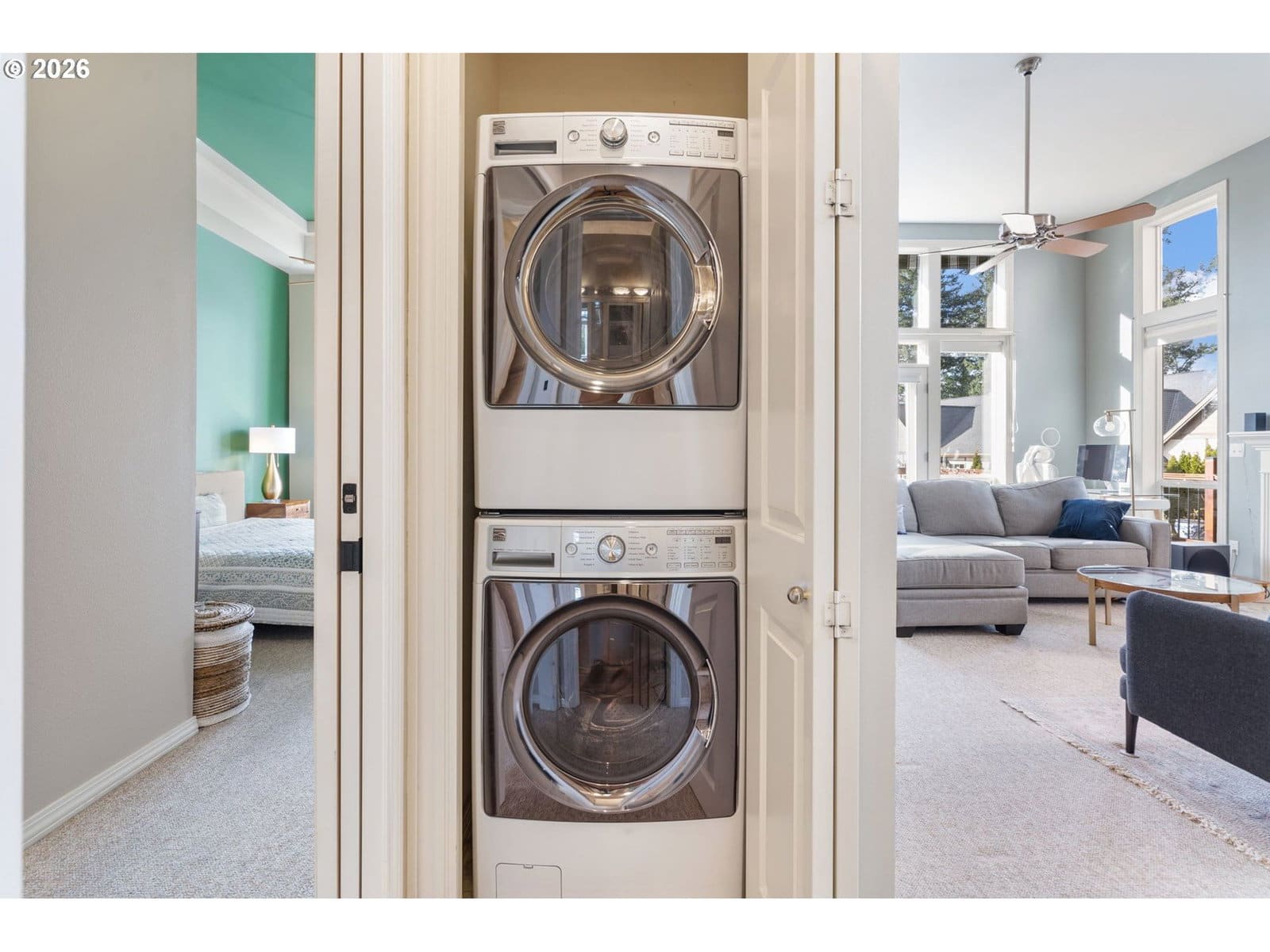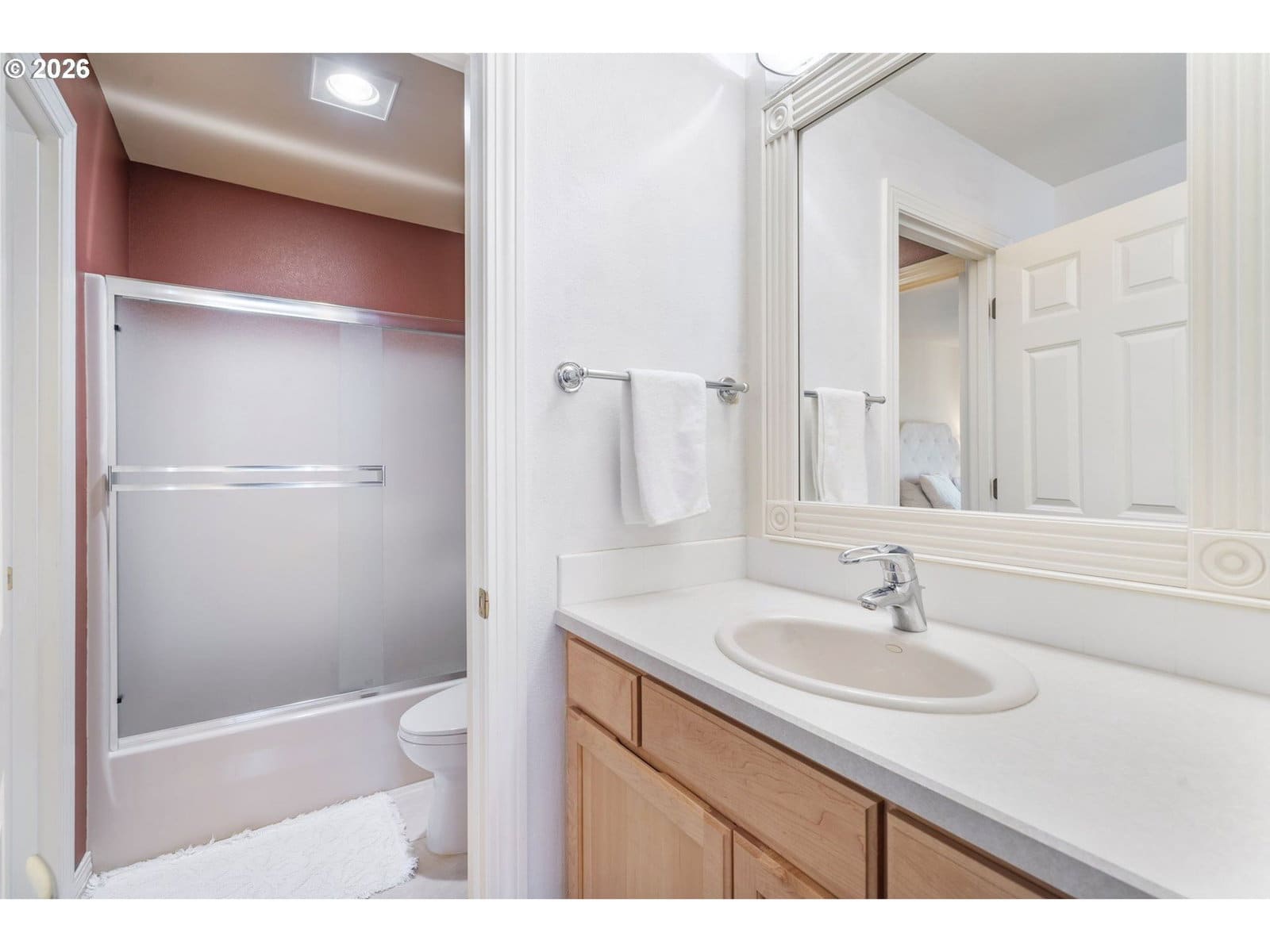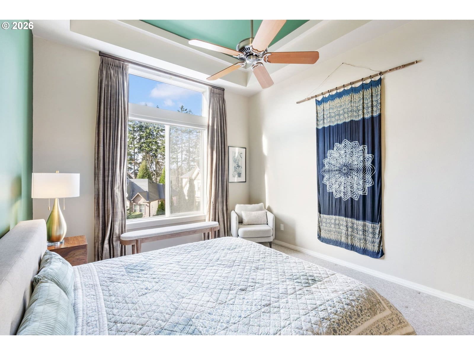 Located in Gentrys, a desirable gated community in Fisher’s Landing, this home offers a private, quiet setting adjacent to a greenbelt. Shopping and dining are nearby, with easy access to freeways and convenient connections to PDX. Inside, soaring 12-foot ceilings and oversized windows fill the main living space with natural light, creating an open and airy feel throughout. The open-concept layout offers an easy flow between the kitchen, dining, and living areas, ideal for both everyday living and entertaining. The kitchen features stainless steel appliances, granite countertops, and tile flooring, providing a functional and timeless space. The main-level primary suite offers a comfortable retreat with a walk-in closet and an ensuite bath featuring a walk-in shower. Upstairs, two additional bedrooms are connected by a Jack-and-Jill bathroom, creating a flexible and practical layout.