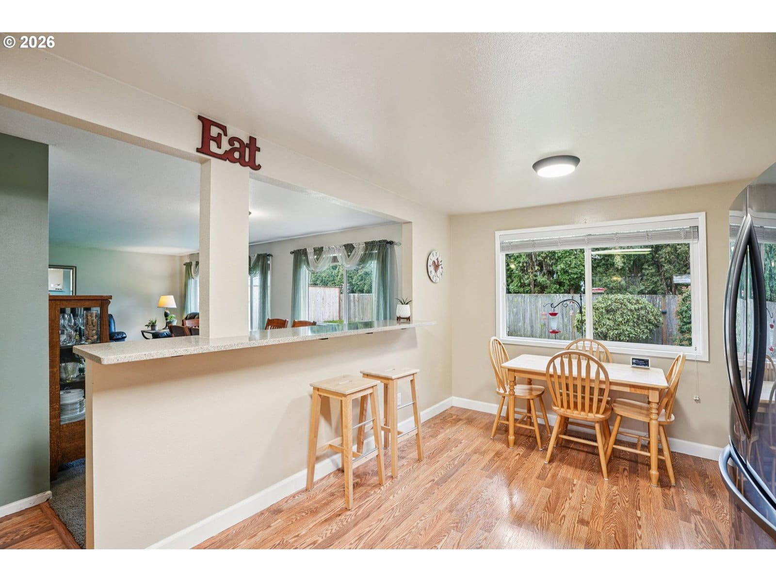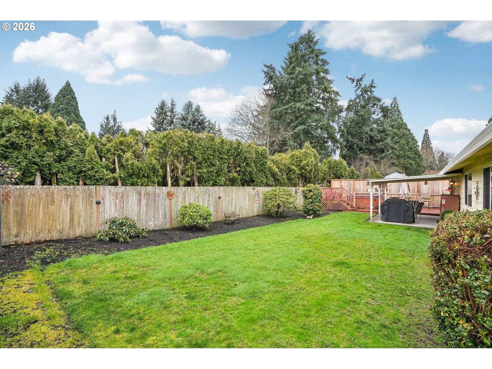Nestled in Beaverton’s sought-after Cooper Mountain area, this beautifully maintained 3 bedroom, 2 bath home offers 1,578 sq ft of comfortable single-level living on a spacious 6,970 sq ft lot. Thoughtful updates throughout blend modern style with everyday functionality, creating a truly move-in ready opportunity. The updated kitchen is a standout with sleek black stainless steel appliances, quartz countertops, a stylish glass tile backsplash, and a convenient eating bar that opens seamlessly to the main living areas—perfect for casual meals and gatherings. Updated finishes add a fresh, contemporary feel while maintaining the warmth and character of the home. Forced air heating and central air conditioning ensure year-round comfort, and the attached two-car garage provides ample storage and convenience. Step outside to your own private retreat. The fully fenced backyard showcases a covered patio for year-round enjoyment, a spacious composite deck, and an eight-person hot tub—an ideal setting for entertaining or unwinding at the end of the day. The generous lot offers mature landscaping and plenty of space to garden, play, or simply enjoy the outdoors. Ideally located near the scenic trails of Cooper Mountain Nature Park, shopping and dining at Progress Ridge, highly regarded schools, local wineries, and major employers including Nike and Intel, this home offers the perfect balance of peaceful surroundings and easy access to everything the area has to offer.