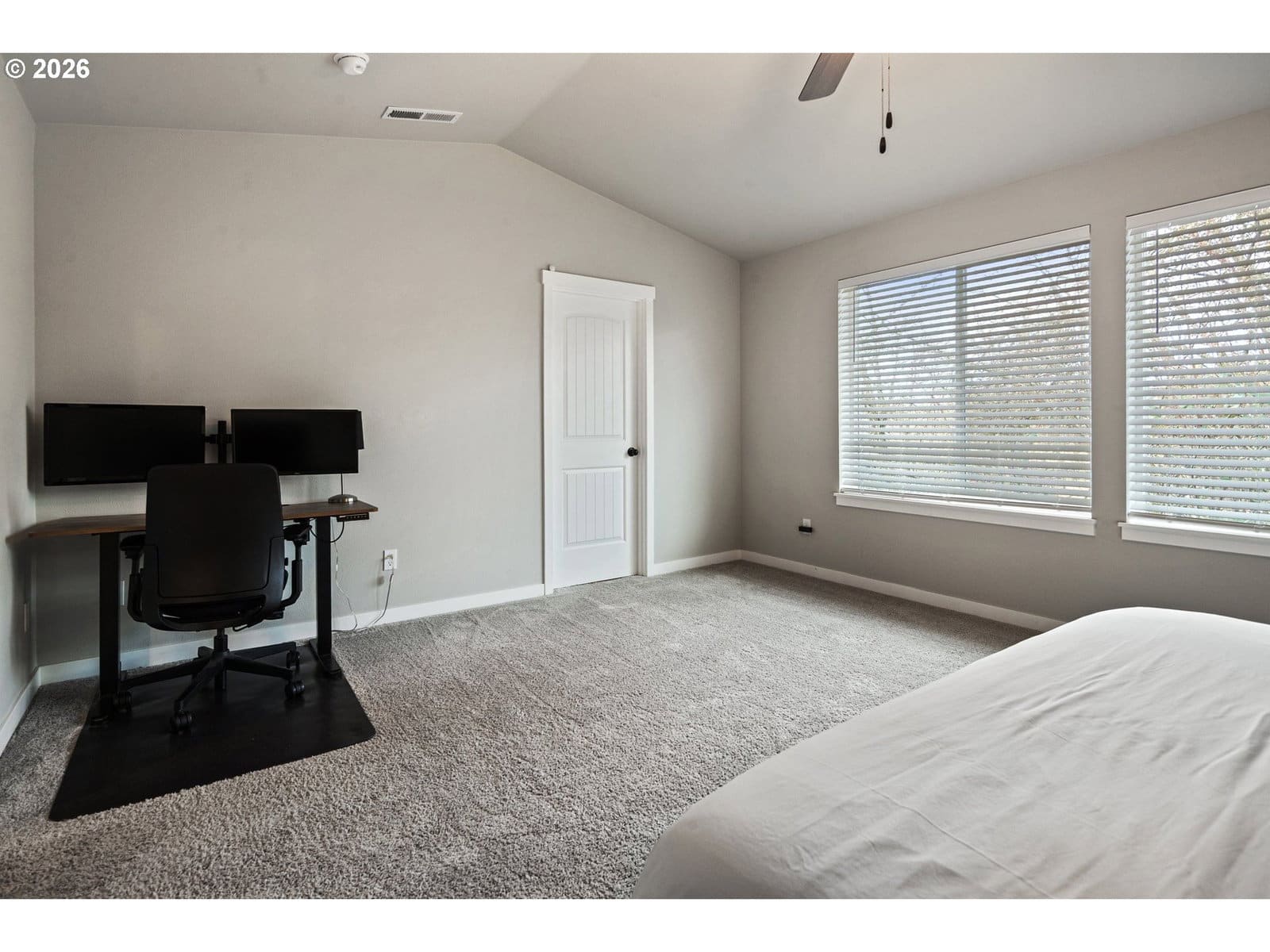 Stunning 3 bedroom home meticulously maintained and ready for you to call home! Equipped with A/C, stainless steel appliances and convenient smart home features. The bright main floor boasts 9ft. ceilings with abundant natural light and elegant finishes including quartz countertops and a gorgeous gas fireplace. Relax in the spacious primary suite with vaulted ceilings, double sinks and a generous walk in closet. Enjoy the large parking pad and front yard, perfect for hosting!