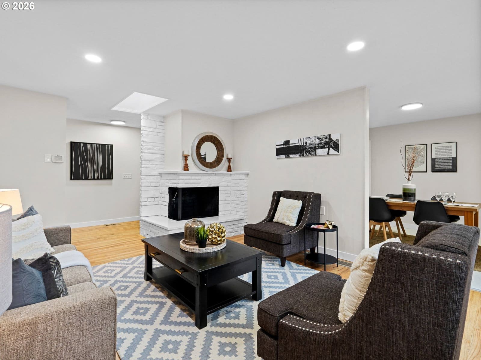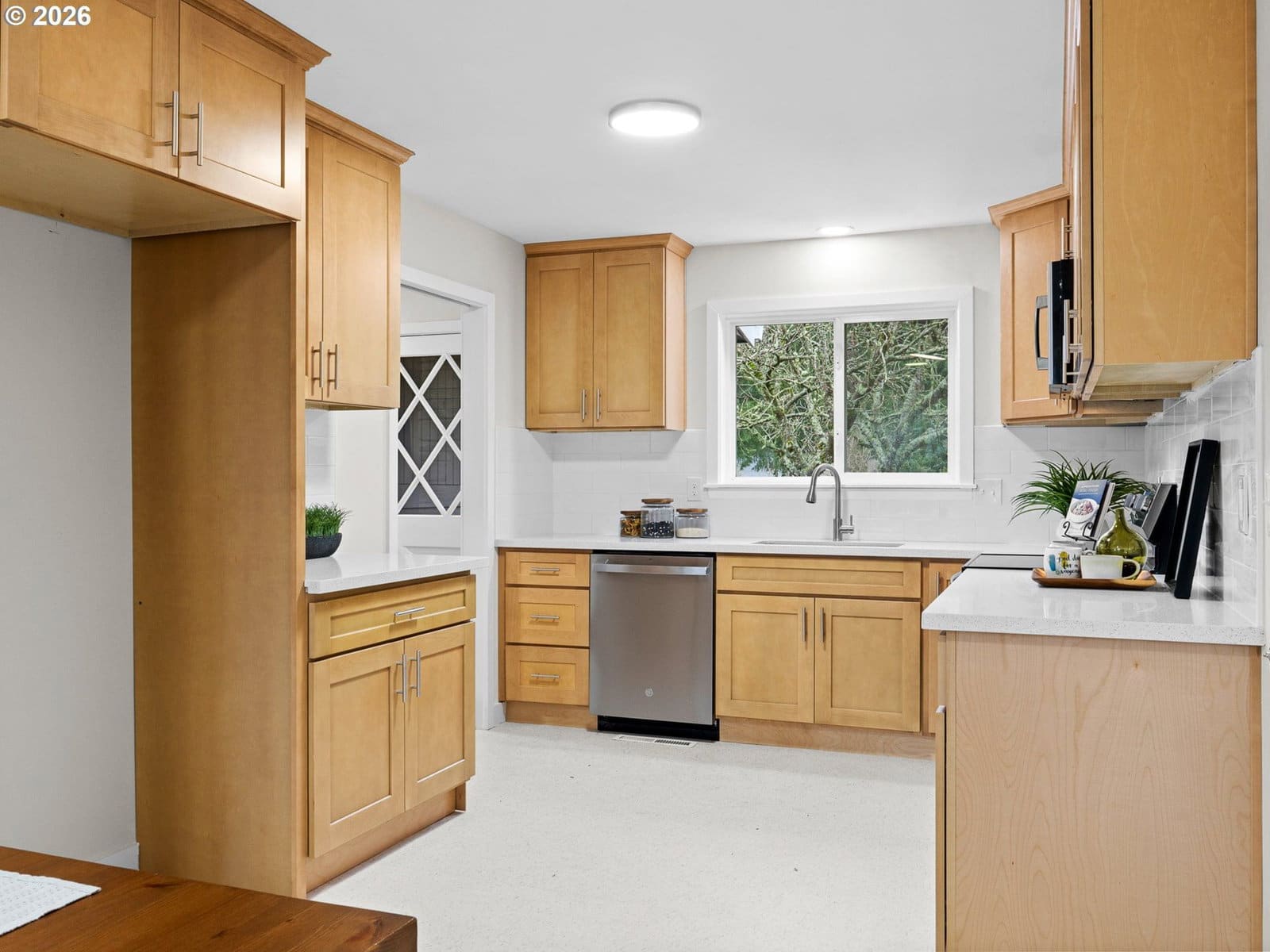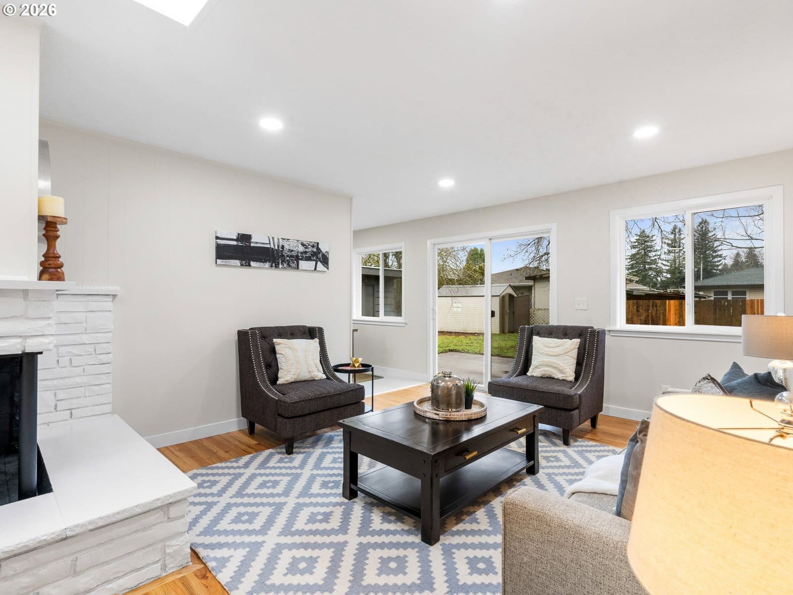 Welcome home to this renovated single-level Ranch-style residence offering 1,118 square feet, 3 bedrooms, and 2 full bathrooms, thoughtfully designed for those seeking true ground-level living with no stairs. Recent renovations enhance both style and functionality, including refinished interior surfaces, new lighting throughout, updated plumbing fixtures, new stainless steel appliances, and solid surface countertops, creating a fresh and move-in-ready feel. The efficient, easy-flow floor plan supports comfortable everyday living all on one level, with the living room featuring a slider that opens to a backyard patio and fully fenced yard, ideal for relaxing, entertaining, or everyday use. Year-round comfort is provided by forced-air heating and central air conditioning. An attached oversized two-car garage adds excellent utility with built-in shelving and convenient pull-down attic storage, perfect for tools, hobbies, or seasonal items. Situated in the Rockwood neighborhood, this home offers close proximity to a variety of outdoor and everyday amenities. Enjoy easy access to the Springwater Corridor Trail (approximately 1 mile), a popular paved path for walking, running, and biking. Vance Park is about 1.5 miles away, providing open green space and recreation. Shopping, dining, and services at Gresham Station—including Safeway, Target, restaurants, and MAX light rail—are within 1.5–2 miles, offering convenient connectivity throughout East Portland and the surrounding area. With its renovated interior, private outdoor space, practical storage, and accessible single-level layout in a well-connected Rockwood location, this home offers comfortable and convenient living.