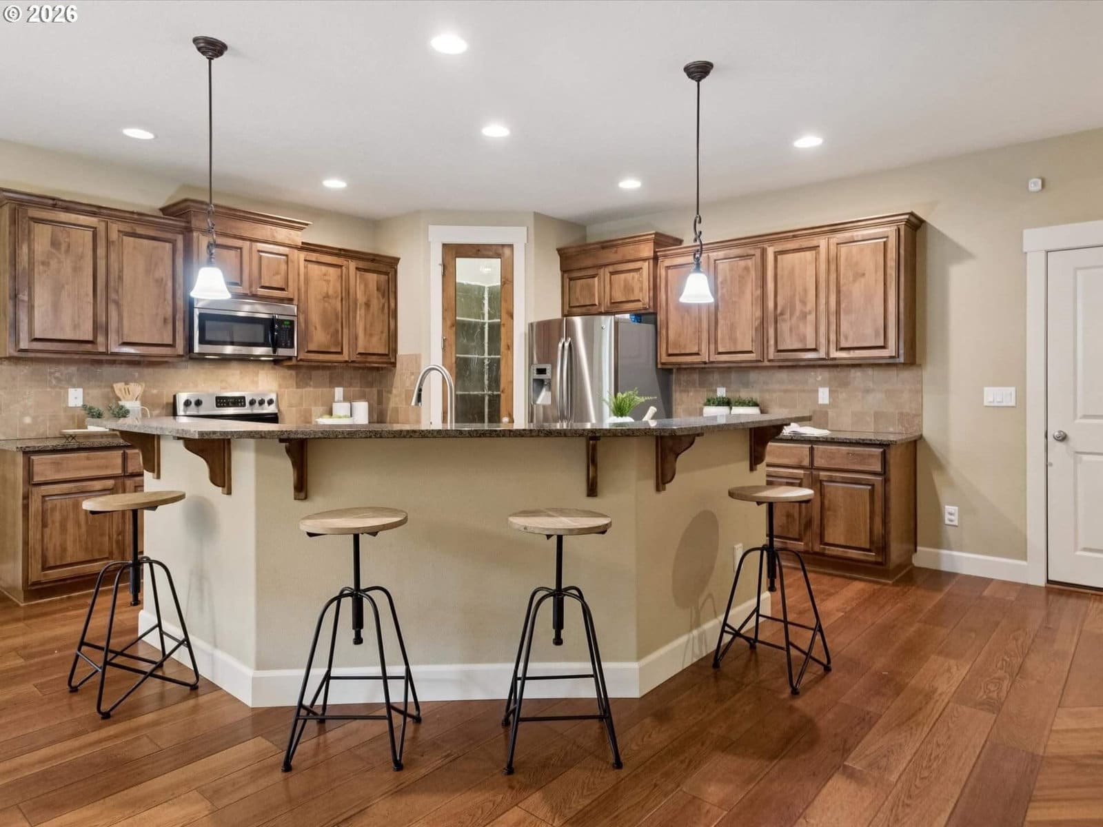 Impeccable One-Level Home in Growing RidgefieldWelcome to this stunning traditional-style single-level home nestled in Ridgefield’s fast-growing community. Designed with comfort and sophistication in mind, this home features engineered hardwood floors, tall ceilings, and elegant millwork with beautifully wrapped windows throughout. The spacious kitchen is a chef’s delight, boasting a large two-tier island with bar seating, stainless steel appliances, a pantry, and plenty of counter space—perfect for entertaining or everyday living. The open floor plan flows seamlessly into the living room, where recessed lighting illuminates every corner and enhances the home’s inviting atmosphere.A dedicated office/den off that can double as a fourth bedroom. The main entry offers a quiet space for work or study, while the formal entryway sets a warm tone for guests. The primary suite is a true retreat, featuring a coved, lighted ceiling for ambient mood lighting, plus a walk-in shower and soaking tub for ultimate relaxation. Step outside to the covered patio area complete with a hot tub—ideal for year-round enjoyment. The backyard is beautifully manicured with blueberries, fig & apple trees -- providing a peaceful setting for gatherings or quiet evenings. Conveniently located near Abrams Park, this home blends timeless design, modern comfort, and an unbeatable Ridgefield location. Taxes based on current owners Senior Income. Subject to change. Buyer to do their own due diligence.