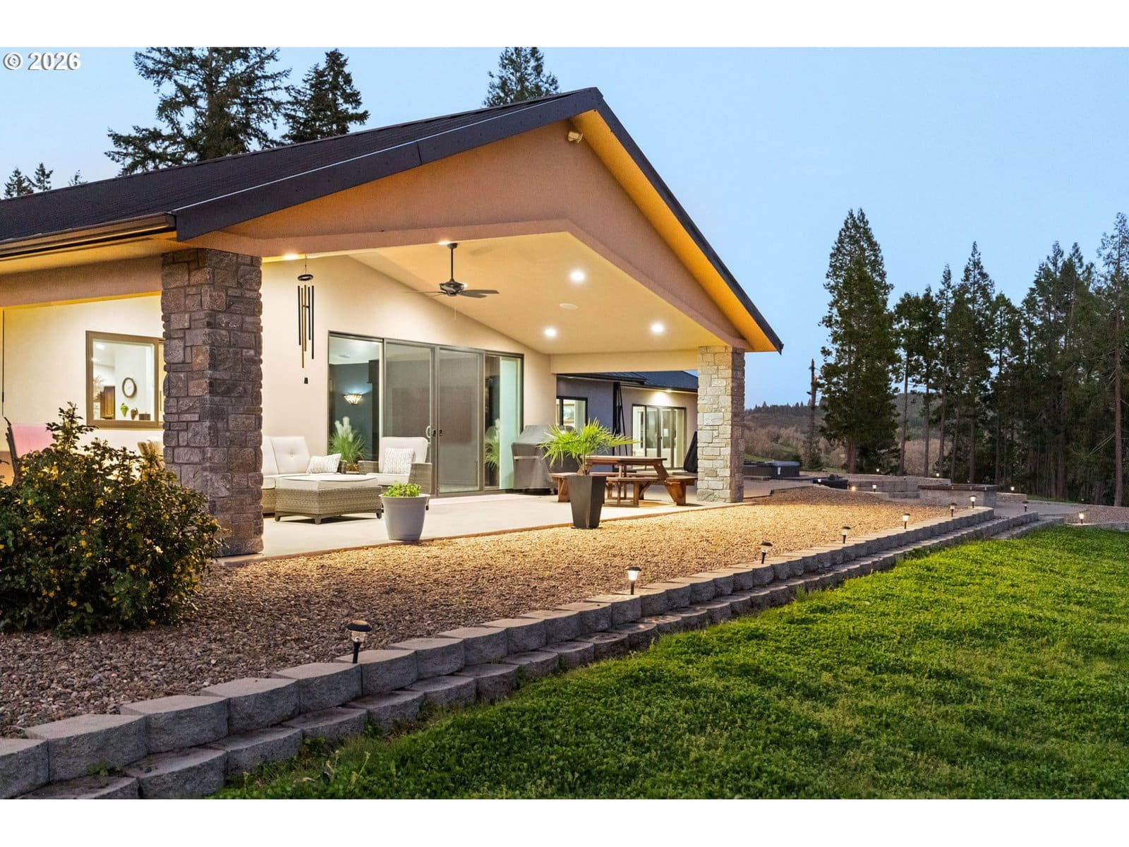Turnkey 70-acre estate with custom 2020 home (3,496 SF), furnished 3BR cabin, and a full fleet of John Deere equipment included. All-Thermador kitchen with pot filler, double wall oven, dual built-in refrigerators, and built-in freezer. Perlick commercial full bar with wine coolers, refrigerator, and ice maker. Control4 smart home, surround sound, outdoor speakers, and built-in security cameras. Master suite features a steam room built into the walk-in shower, and gas fireplace. Generac 22kW whole-house generator, 400 AMP panel, central vacuum, and automatic irrigation. Covered patio with hot tub, fire pit, and propane BBQ. Heated/cooled attached garage with shop (1,824 SF) plus 1,104 SF detached garage. Equipment conveying: JD 410G backhoe, 3032E tractor, MX5 brush hog, Z740R zero-turn, XUV835M Gator, trailer with sprayer, and dual fuel tanks with pumps. 3/4-acre Pinot Noir and Chardonnay vineyard. Year-round creek, ~40 acres of timber, gated private road. DFN fiber internet. Both homes fully furnished. Shown by appointment only
