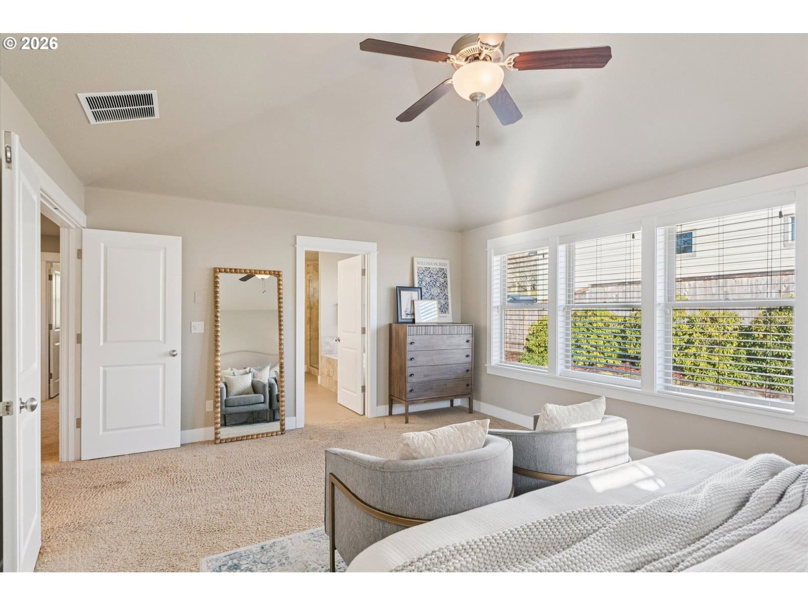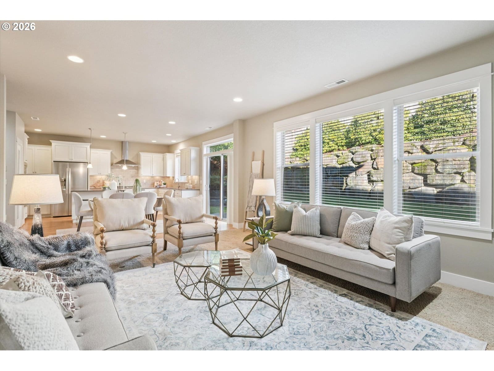 This beautifully maintained Maxfield Craftsman is ready to welcome its next owner. The main level offers an office/den, a half bath, an open great-room layout with island kitchen, quality appliances, and a dining area that fills with natural light from sliding doors leading to the patio and private backyard. Gather in the spacious living room, perfect for large get-togethers or quiet evenings by the gas fireplace. Upstairs, the airy primary suite features vaulted ceilings, a walk-in closet, and an en-suite bath. Three additional bedrooms, a full guest bath, and a convenient laundry room complete the upper level. The two-car garage provides ample storage, and you’ll love being just steps from Tanner Creek Park and moments from shopping and everyday conveniences. $40 a month dues