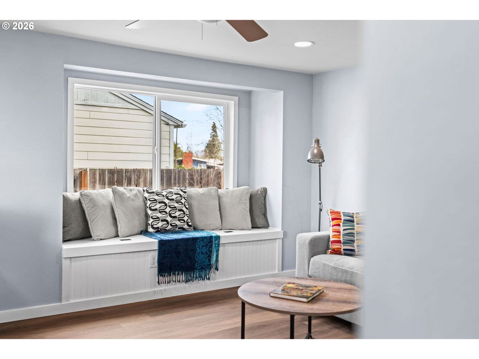 This thoughtfully renovated home offers updated finishes and functional living throughout. The kitchen features new appliances, cabinetry, pantry storage, and modern lighting, opening comfortably into the living room with window seating, built-in storage, a gas stove with tile surround, and ceiling fan. The bathroom has been refreshed with updated tile work and fixtures, and both bedrooms include added closets, ceiling fans, and efficient cadet heaters. A practical mudroom provides washer and dryer space, utility storage, and expanded access to the kitchen.Situated on a large, private lot, the exterior includes a new roof, siding, windows, doors, and updated landscaping. A couple of large trees add character and shade, while the detached one-car garage provides flexibility for parking, storage, or workspace. The spacious backyard offers plenty of room to relax, garden, entertain, or customize to your needs.