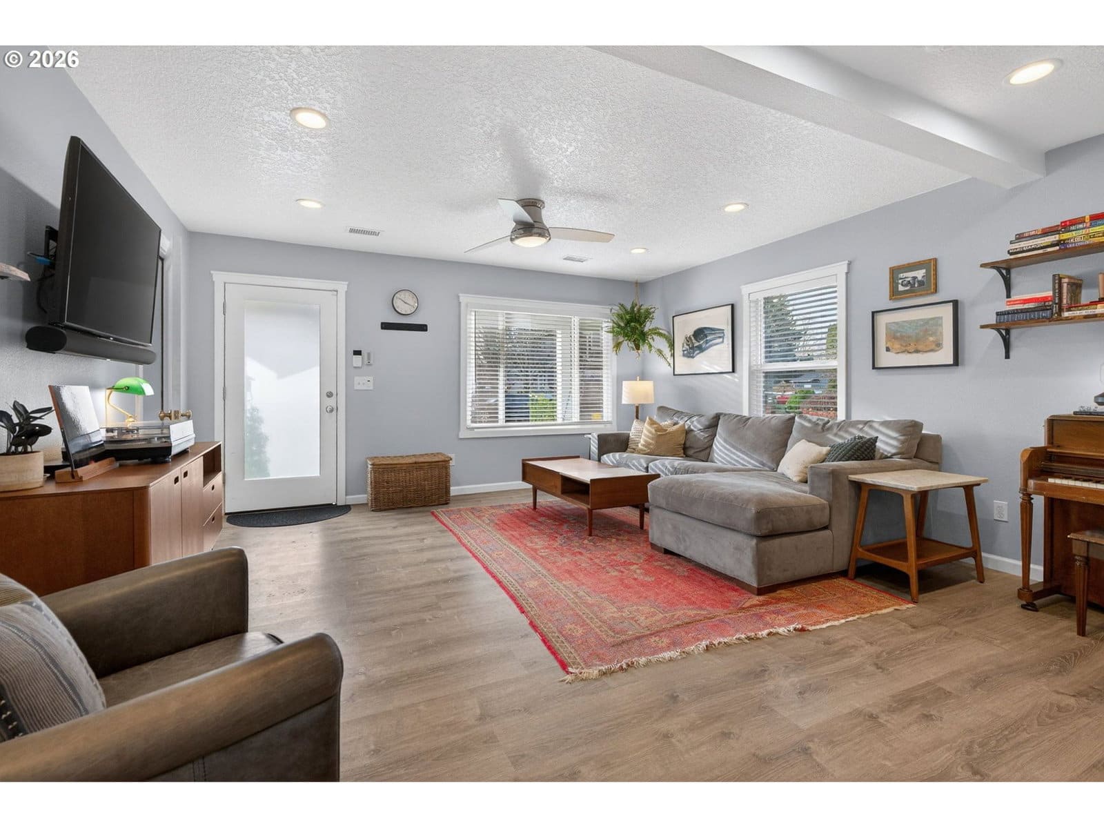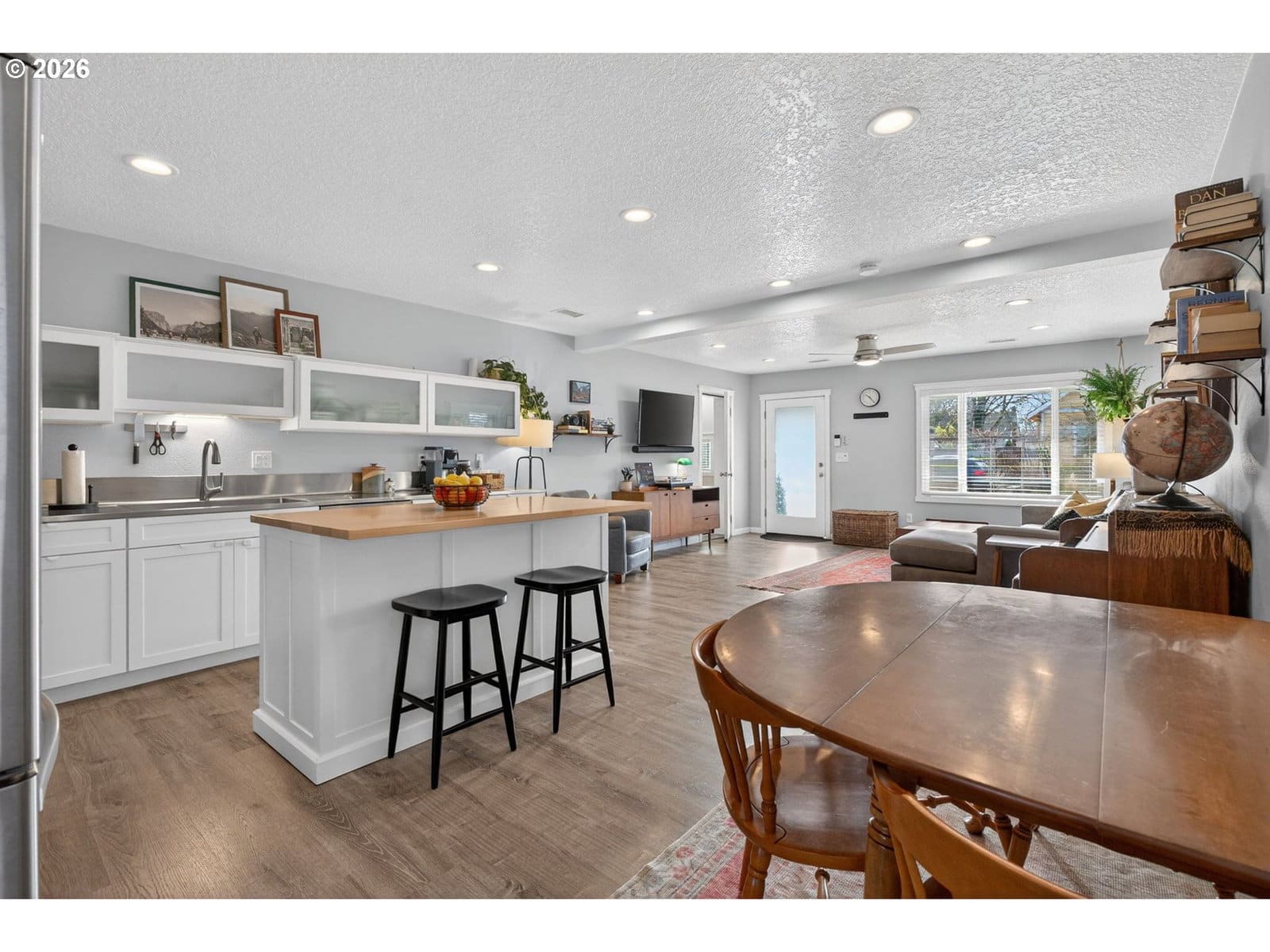 Open Sat 1/8 11am-1pm! This single level cutie patootie checks all the boxes for an open concept lifestyle with all the right spaces! Step into the spacious living room that flows effortlessly into the dining area and updated kitchen—a rare open floor plan ideal for everyday living and easy entertaining! Remodeled in 2020, this 3 bed, 1.5 bath layout shines with stylish and practical updates throughout! The kitchen features stainless steel appliances and counters, LVP flooring, modern cabinets, and extra deep sink. A butcher block island adds storage and extra seating; perfect for casual meals or hosting friends! All three bedrooms are bright and inviting, with oversized windows, wall to wall carpeting and roomy closets. The updated full bathroom feels like a retreat, complete with subway tiled shower/tub combo, heated tile floors, and generous vanity with storage. The convenient half bathroom features tile floors, updated finishes and is plumbed for a shower for future expansion! The front bedroom is an ideal flex space that could be used as an office, nursery or playroom! You’ll love the separate laundry room -hard to find in smaller homes - offering tile floors, additional storage and a large window for tons of natural light! Out back, enjoy the fully fenced, landscaped level yard - ideal for play, pets or gardening. The newer paver patio sets the stage for summer BBQs and relaxed summer afternoons in the shade the pergola! Outdoor shed offers additional great storage for bikes & recreational toys! This home is as functional as it is stylish, with all new electrical and plumbing, insulated interior walls and vinyl windows (2020), central A/C (2021). Living room plumbed to add fireplace. All this on a quiet street with low traffic, yet just minutes to Mt. Tabor, and popular Foster/Powell coffee/bars/restaurants! Easy commute into downtown Portland or airport! [Home Energy Score = 5. HES Report at https://rpt.greenbuildingregistry.com/hes/OR10243370]