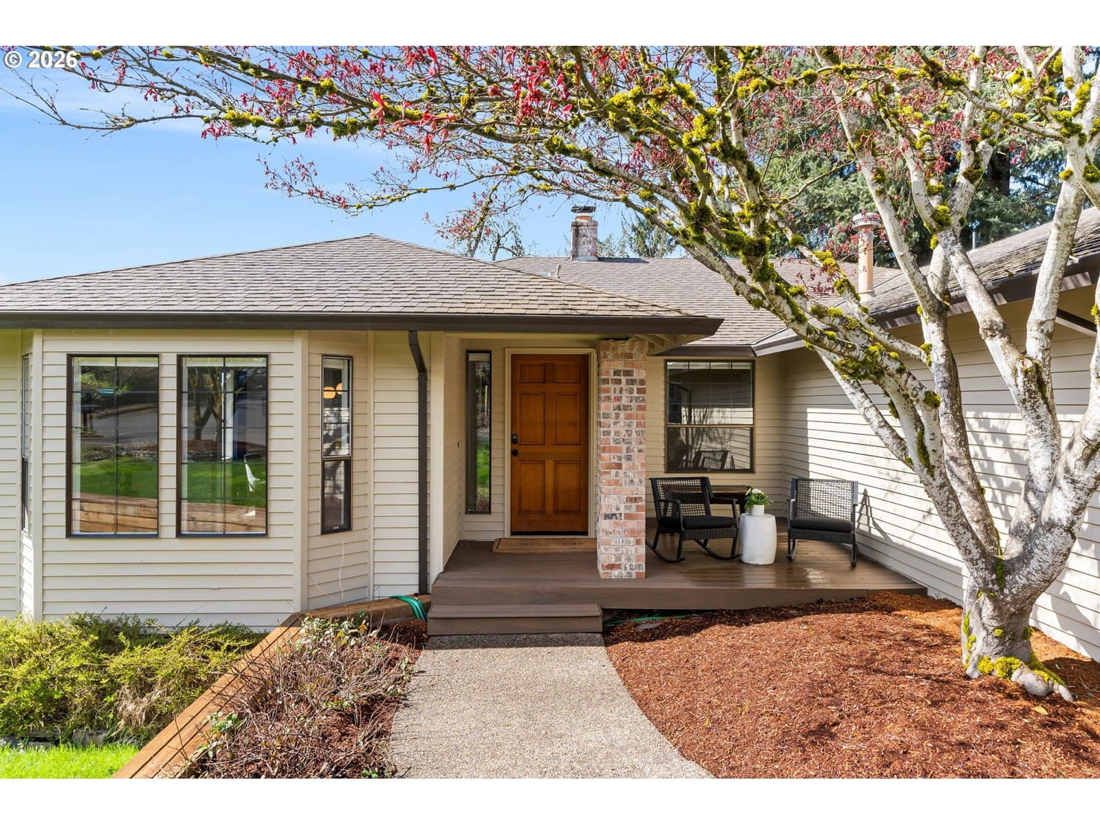 ** Offer received. Deadline for offers Monday, March 23rd at 5pm. Please have offer expire Tuesday at 5pm.** Charming single-level home tucked on one of Southwest Portland’s friendliest cul-de-sacs—Flower Place. This home offers easy, comfortable living with thoughtful updates throughout. The updated kitchen is the heart of the home, featuring a gas cooktop, quartz countertops, eating bar, and cozy nook—perfect for everyday living and gathering. Natural light fills the space, creating a warm and welcoming feel in every room. A versatile den or flex space just off the dining area adds flexibility for a home office, reading room, or home gym. Step outside to an expansive Trex deck—ideal for entertaining or simply relaxing and enjoying the peaceful setting. Located in the desirable Hayhurst neighborhood, you’re just minutes from Multnomah Village’s shops and restaurants, and only a few blocks from Gabriel Park, with its playground, pickleball courts, sand volleyball, baseball fields, and more. [Home Energy Score = 2. HES Report at https://rpt.greenbuildingregistry.com/hes/OR10038238]