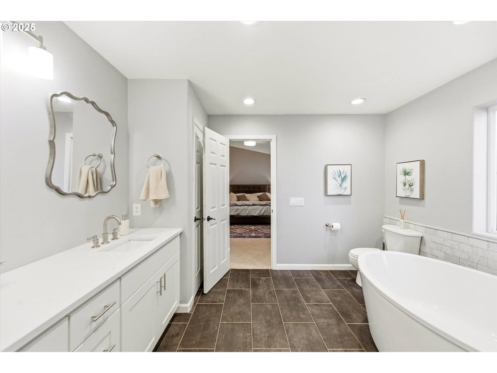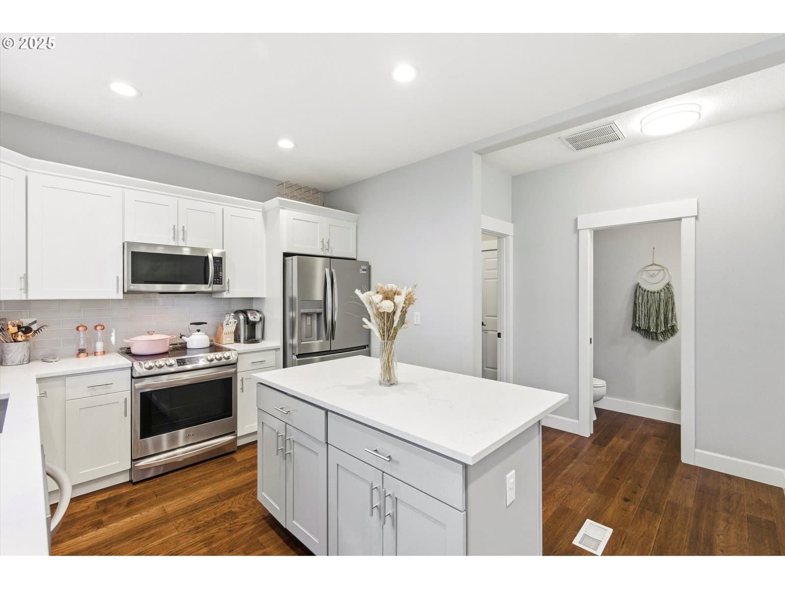 Open house Sunday, Nov. 23, 2:00 - 4:00 pm- This beautiful, luxurious 4-bedroom, 2.5-bath home offers timeless craftsmanship, quality finishes, and an inviting, light-filled layout. The main level features an expansive formal living and dining area with high ceilings, abundant windows, a gas fireplace, and seamless flow into the gourmet island kitchen. Quartz counters, stainless steel appliances, a gas cooktop with hood, built-in oven and microwave, and a spacious dining area make the kitchen perfect for both everyday living and entertaining. Step outside to the private, fenced backyard patio surrounded by mature greenery that creates a serene, secluded setting. Upstairs, the elegant primary suite includes a spa-like bath with a freestanding soaking tub, walk-in tile shower, double quartz vanity, and a generous custom designed walk-in closet by Container Closets. Three additional bedrooms and a full bath complete the upper level, offering excellent flexibility for family, guests, or office space. Ideally located just minutes from Progress Ridge shopping, dining, and cinema—and walking distance to a neighborhood park—this home delivers an exceptional blend of quality, comfort, and convenience.