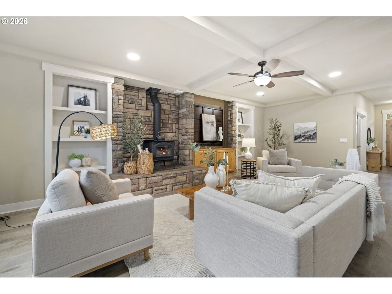 Well-designed custom home in the desirable Woodhaven / Timber Crossing area featuring 4 bedrooms, a bonus room, and a separate office. The open layout includes updated hardwood flooring, granite surfaces, gas stainless appliances, air conditioning, and soft-close closet systems throughout.The private backyard is built for year-round use with turf, pavers, sprinklers, a gas fire pit, gazebo, covered patio, and full fencing. Exceptional storage, a extra deep tandem 4-car garage , and no HOA add even more value.
