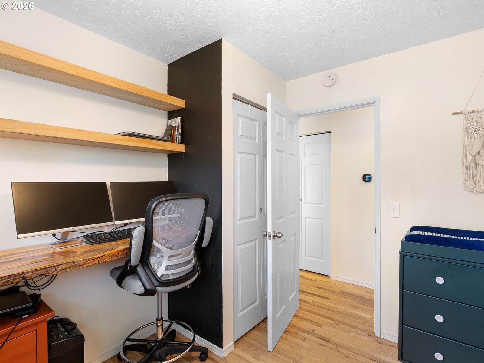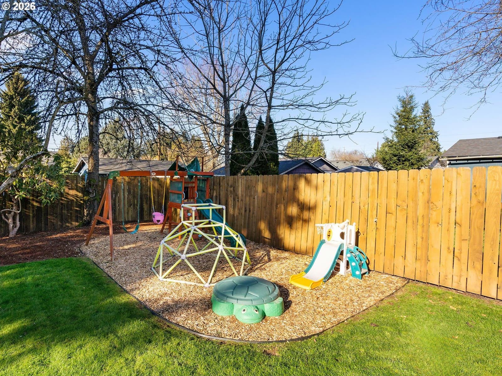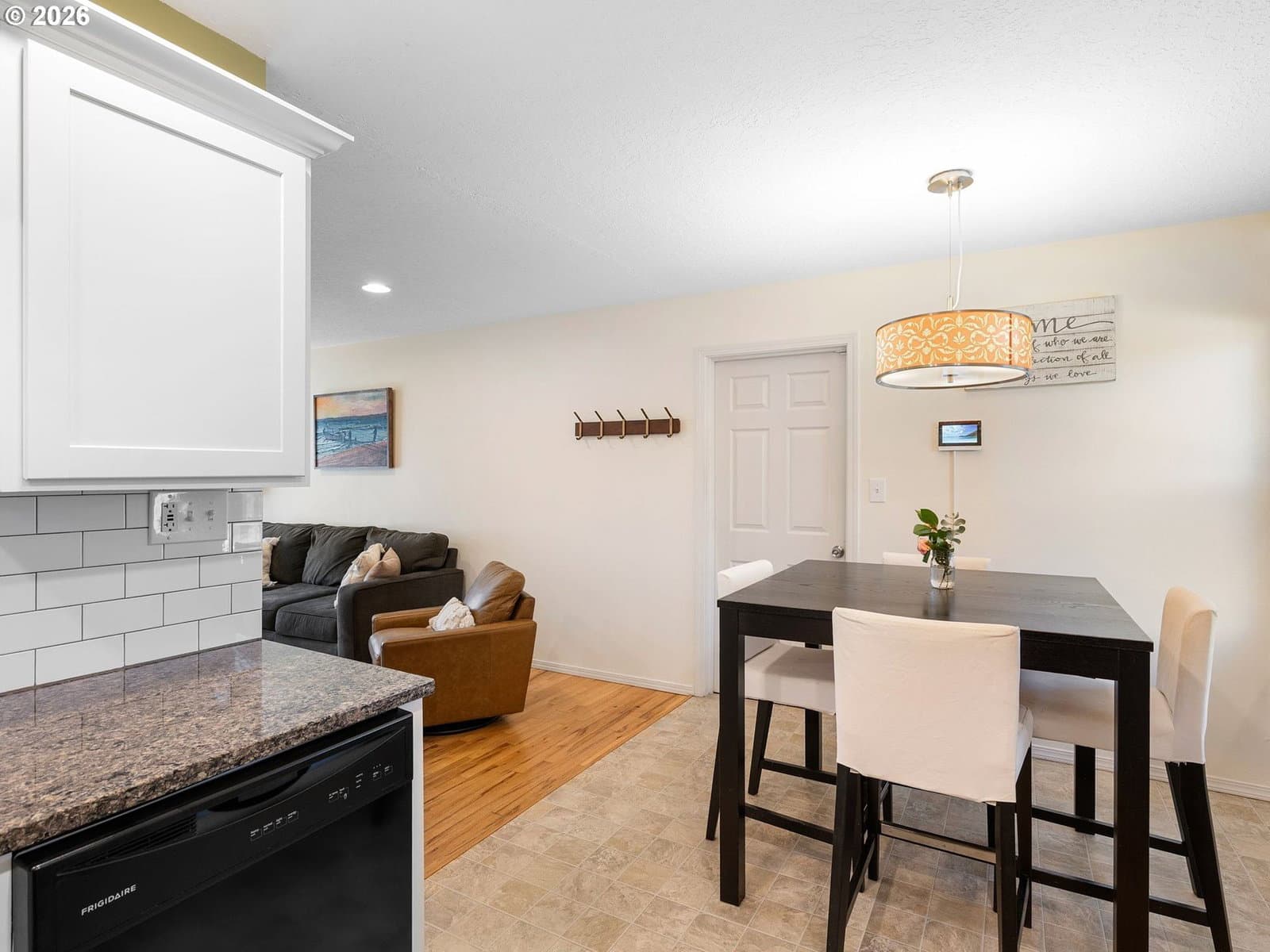 Charming mid-century ranch filled with natural light and thoughtful updates throughout. Hardwood floors enhance the inviting living spaces, complemented by newer windows that create a bright, airy feel. The kitchen features upgraded cabinetry, granite countertops, tiled surfaces, and new appliances including an electric range and microwave. Recent improvements include a newer roof (2016), new gutters, a new garage door, and a new awning.Step outside to an oversized, fully fenced backyard with mature fruit trees—apple and cherry—along with a beautiful pergola, covered deck, storage building, RV parking, and a chicken coop that stays with the home. Comfortable, functional, and truly move-in ready, this turn-key home blends classic mid-century charm with modern updates. [Home Energy Score = 6. HES Report at https://rpt.greenbuildingregistry.com/hes/OR10063180]