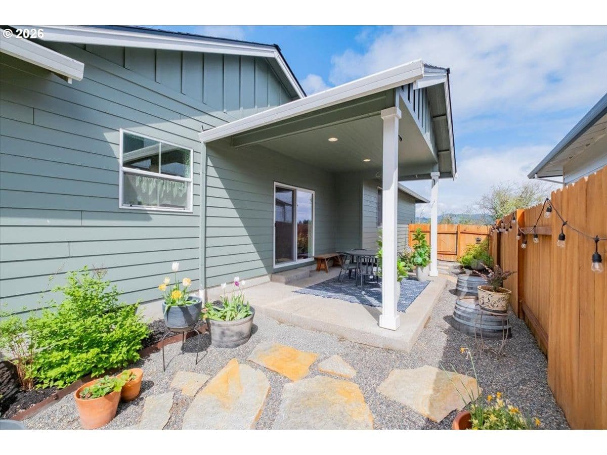 This beautiful 2022 built home is immaculately cared for and is in outstanding condition. The fenced outside area is designed to be easy to care for and a peaceful place to spend time and the large, covered patio extends its usefulness. Inside you'll find an open floorplan and gorgeous finishes sure to impress. The solar system is paid off and not only produces but stores power so you're never without. Enjoy a lower cost of living at $17/mth total for the system.