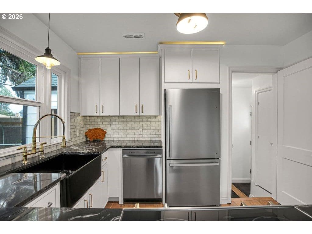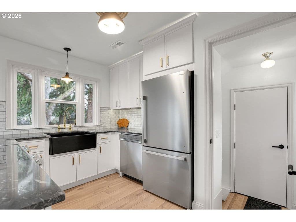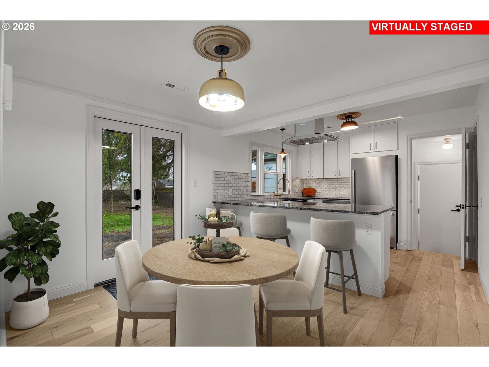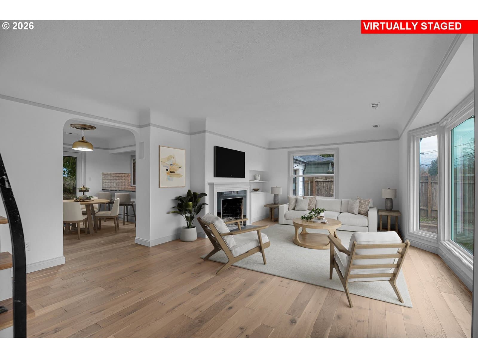 Discover the ideal balance of historic architectural integrity and contemporary updates in this meticulously remodeled 1948 Cape Cod/Mid-century modern. Situated in one of Portland's most sought after neighborhoods, this residence offers a turnkey lifestyle for the buyer who appreciates both vintage charm and modern efficiency. The main level welcomes you with an abundance of natural light through an expansive picture window, highlighting a centerpiece fireplace that anchors the living space. The professional-grade kitchen flows seamlessly into the dining area, where French doors offer a transitional bridge to the expansive outdoor living space. The primary bathroom features custom title work, radiant heated floors, and a heated towel rack for chilly PNW mornings. The fully finished basement significantly expands the homes footprint, providing a versatile secondary living area and added convenience of a brand-new full bathroom. This space is perfectly suited for a guest suite, home office, or media with a separate entrance. The property sits on a deep lot with a small paved patio. Moments away from the Dekum Triangle, Woodlawn Park, and the University of Oregon(Concordia)campus. Steps to local places including Breakside Brewery, Tough Luck, Ranch Pizza and P&Q Market with effortless commutes to Downtown Portland and PDX airport. You don't want to miss this one!! [Home Energy Score = 5. HES Report at https://rpt.greenbuildingregistry.com/hes/OR10239540]