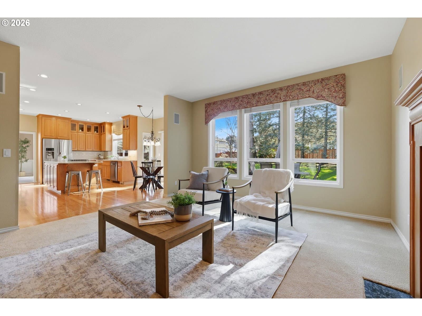 Welcome to Fuller Street, a beautifully maintained home offering generous space, timeless character, and a warm, welcoming feel throughout. The heart of the home is the spacious and functional kitchen featuring granite countertops, a gas Jenn Air cooktop, double ovens, Bosch dishwasher, custom cabinet pull outs, hardwood floors, and a sunny eat in nook that makes everyday living easy. Entertain with ease in the bright, spacious dining room with French doors that open to a covered patio and dedicated covered BBQ area, creating seamless indoor outdoor flow. The living room offers large windows, elegant ceiling molding, and a cozy gas fireplace with marble surround. The oversized primary suite is a true retreat with its own fireplace, windows on two sides for beautiful natural light, and a large walk in closet, plus a spa like bath with soaking tub, double sinks, and a dedicated makeup vanity. Two additional spacious bedrooms, a generous office with large closet, and a flexible bonus space over the garage provide room for work, play, or guests. Outside, enjoy a park like corner lot with mature landscaping, sprinkler system, and a bubbling rock water feature that draws birds and adds a peaceful touch. Three car garage and a prime location close to parks, Tualatin High School, and major commuter routes complete the picture. A home that has been lovingly cared for and ready for its next chapter.