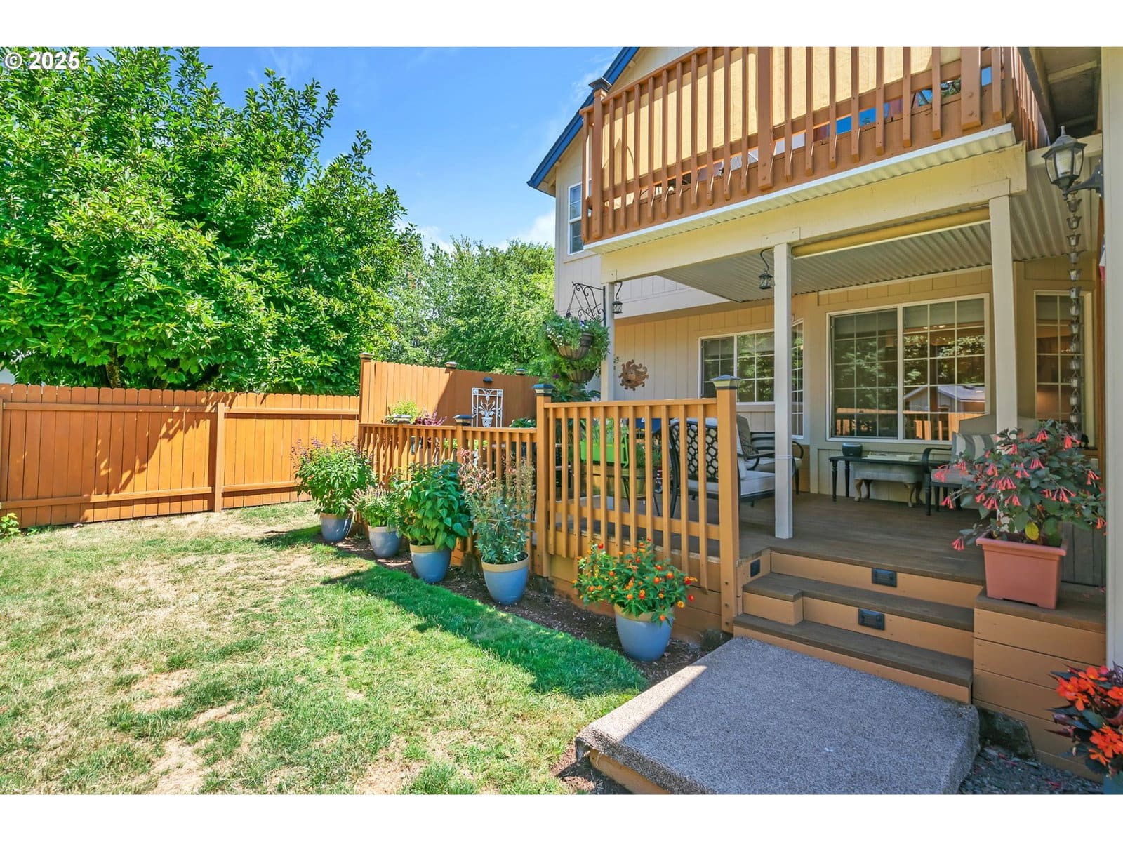 Meticulously Maintained Home in Prime Location! Pride of ownership shines in this beautiful one-owner home nestled in a peaceful cul-de-sac just steps from Awbrey Park. Built in 1995 and thoughtfully updated, this 3-bed, 2.5-bath home offers 1,596 sq ft of comfortable living space on a spacious 0.15-acre lot. Enjoy modern upgrades throughout, including 2024 flooring, quartz countertops, stainless steel appliances (dishwasher, microwave, newer stove & fridge), and fresh interior paint. The vaulted living room features a cozy fireplace, while an additional media/den room adds flexible living options.Upstairs, the primary suite includes a private balcony and a relaxing jetted tub in the ensuite bath. Outside, a freshly stained covered front porch welcomes you, and the large, private backyard with mature landscaping and covered deck is perfect for entertaining or unwinding. Roof, gutters with guards (2020), and exterior paint (2021) provide peace of mind. Possible RV parking along the side! Don’t miss this rare opportunity in a sought-after location—schedule your tour today!