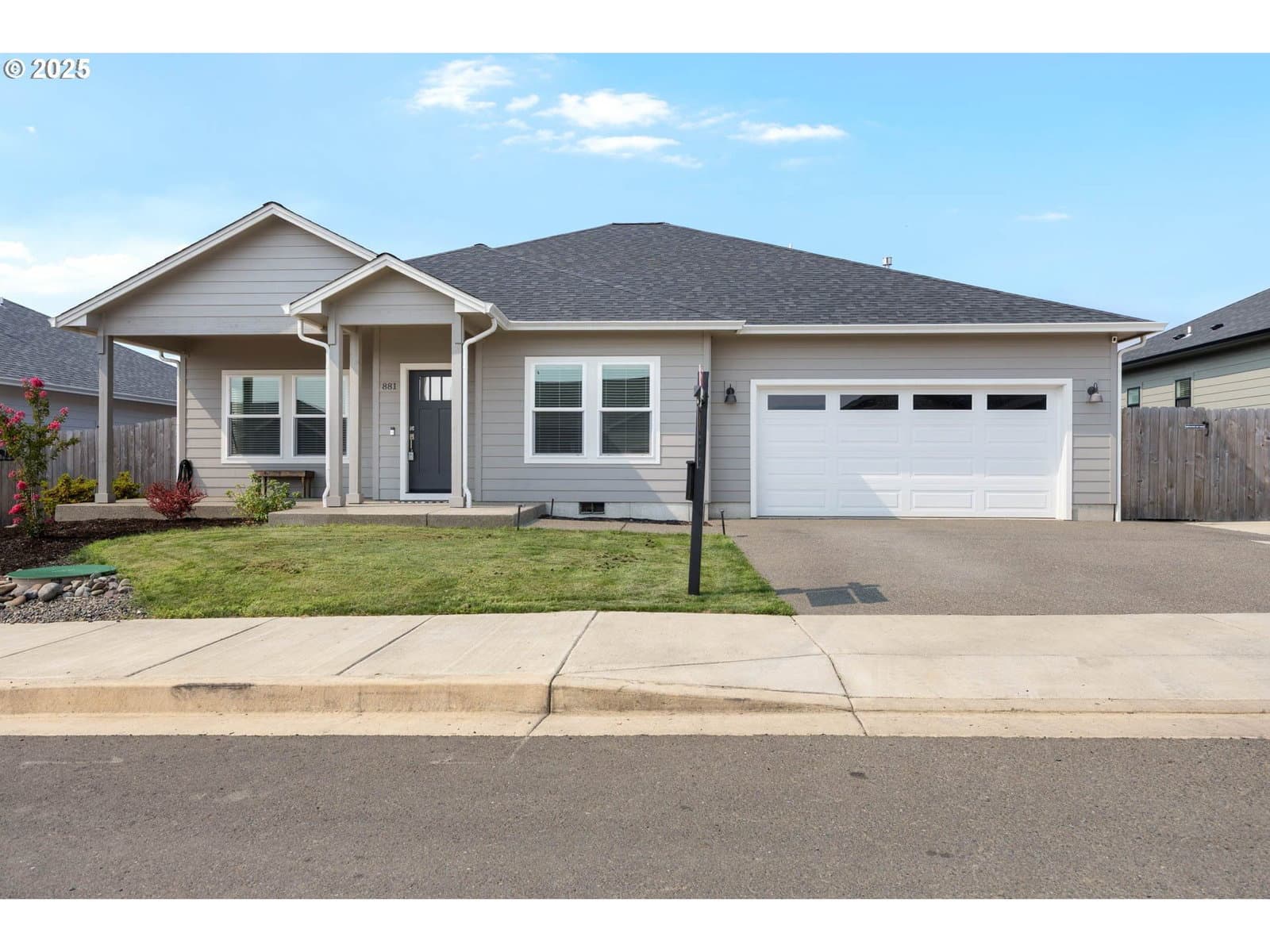 0PEN SAT-SUN 12-2PM. Live where nature and privacy meet - this modern single-level home offers protected wetland views, trail access to Monroe's quaint downtown, & a secluded setting off a private drive with no through traffic, 30 minutes from Corvallis (OSU) & Eugene (UO). Built in 2020, this beautifully maintained 1,864 SF home sits on a spacious, private lot and features 3 bedrooms & 2 full baths. The heart of the home is the open-concept kitchen, dining, and living area, where soaring vaulted ceilings and expansive windows fill the space with natural light. A cozy gas fireplace anchors the living room, while the kitchen offers quartz counters, a large island with a breakfast bar, gas range, stainless steel appliances, and a farmhouse-style sink. The primary suite, tucked away with wetland views, features a walk-in shower, soaking tub, dual sinks, and a walk-in closet. The 2nd bedroom and adjacent full bath are positioned for privacy, allowing the space to function as its own guest suite while still remaining easily accessible from the main living areas. The 3rd bedroom, featuring double doors, makes an ideal home office or a versatile flex space. Just off the living room, step onto the covered patio and enjoy the partially fenced, beautifully manicured backyard with a professionally installed irrigation system. One side of the home provides room to create your own RV parking pad. The nearby nature trail invites you outdoors and leads directly into Monroe’s charming and growing downtown: enjoy wine tasting at Broadley Vineyards along the peaceful Long Tom River, dinner out at Timber Brewing, or grab a casual meal at Benny’s Pizza. Designed for easy living, the home features energy-efficient systems: a heat pump for year-round heating and cooling, solar readiness, and high-speed fiber-optic internet & Wi-Fi. Also enjoy 15-min to Alsea Falls for hiking & mountain biking, while the Monroe Library connects to the broader Corvallis-Benton system & hosts local events.