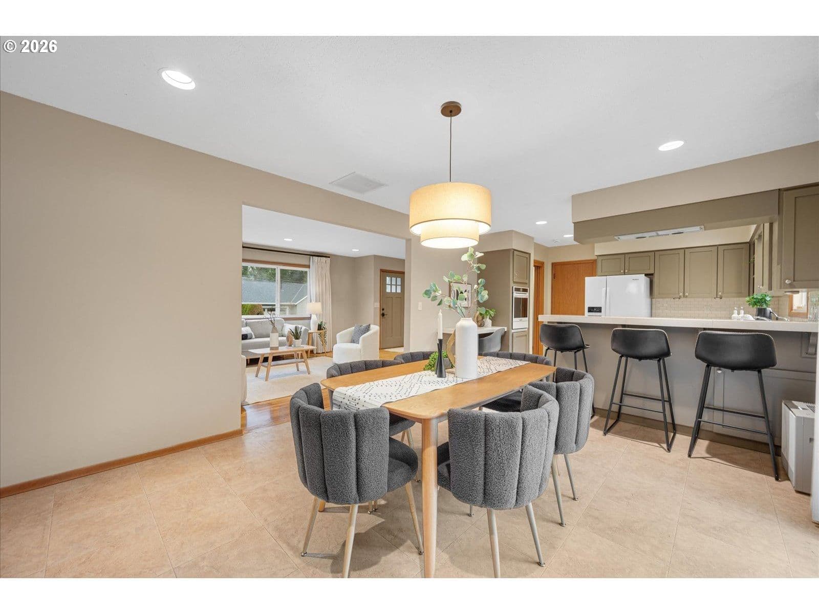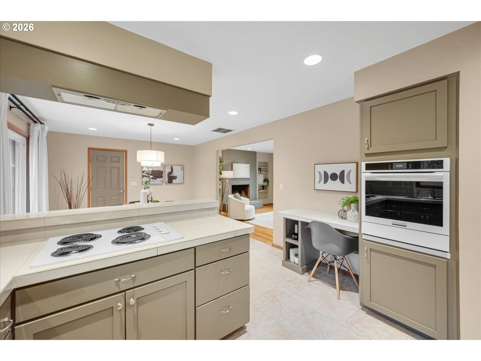 This charming one-level home offers beautiful curb appeal with mature landscaping and a fully fenced, level yard perfect for entertaining or relaxing outdoors. This beautifully maintained home has a great floor plan designed for easy living. You’ll find inviting wood floors, a wood-burning fireplace, and large picture windows that fill the home with natural light. The updated kitchen features modern shaker cabinetry, a subway tile backsplash, tile flooring, an eat-at bar, and a built-in desk for added functionality. A sliding door leads to a large patio, perfect for gatherings or quiet evenings outside.