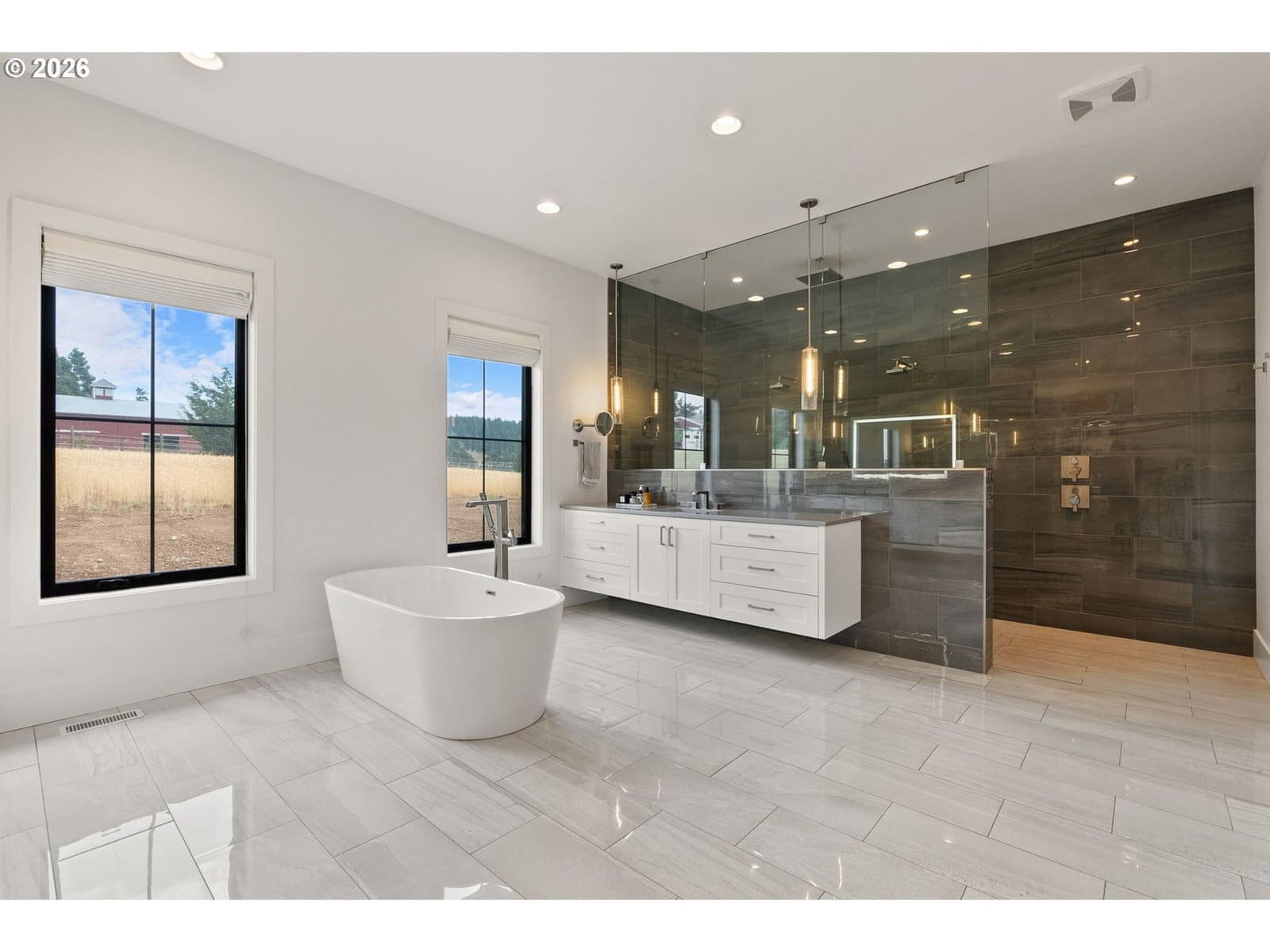 This custom-built gated estate in highly sought-after Stafford offers luxury, privacy, and panoramic views across 10+ level acres. The approx. 5400 SF main residence features main-level living with 5 bedrooms, 3 full and 2 half baths. A newly completed 1,800 SF pool/guest house includes a full bedroom suite, kitchenette, and state-of-the-art fitness center. The nearly 3,000 SF dream shop with RV parking/up to 12 vehicles offers soaring two-story ceilings and a full bathroom. Resort-style amenities include pool, spa, outdoor kitchen, turf lawns, sleek patios, and a poolside fireplace and bar. Inside, enjoy premium finishes: a vaulted wood-clad great room, metal floating staircase, folding glass walls for seamless indoor-outdoor living, a showcase wine room, and generous bonus spaces. The main-level primary suite offers a private patio, elegant dressing room, and spa-style bath with heated floors. Upstairs includes 4 bedrooms, a playroom, and an office. The acreage is ideal for equestrian use, vineyards, or expansion. Located in a top-rated West Linn/Wilsonville school district with the option to attend the new Riverside High School and its prestigious International Baccalaureate (IB) program. This property also benefits from a valuable tax farm deferral, offering significant long-term savings — a rare combination of luxury, location, and financial advantage just south of the Portland Metro area and close to nearby famed wine country. Easy access to freeway as well as Portland International Airport. Shown by appointment to qualified buyers.