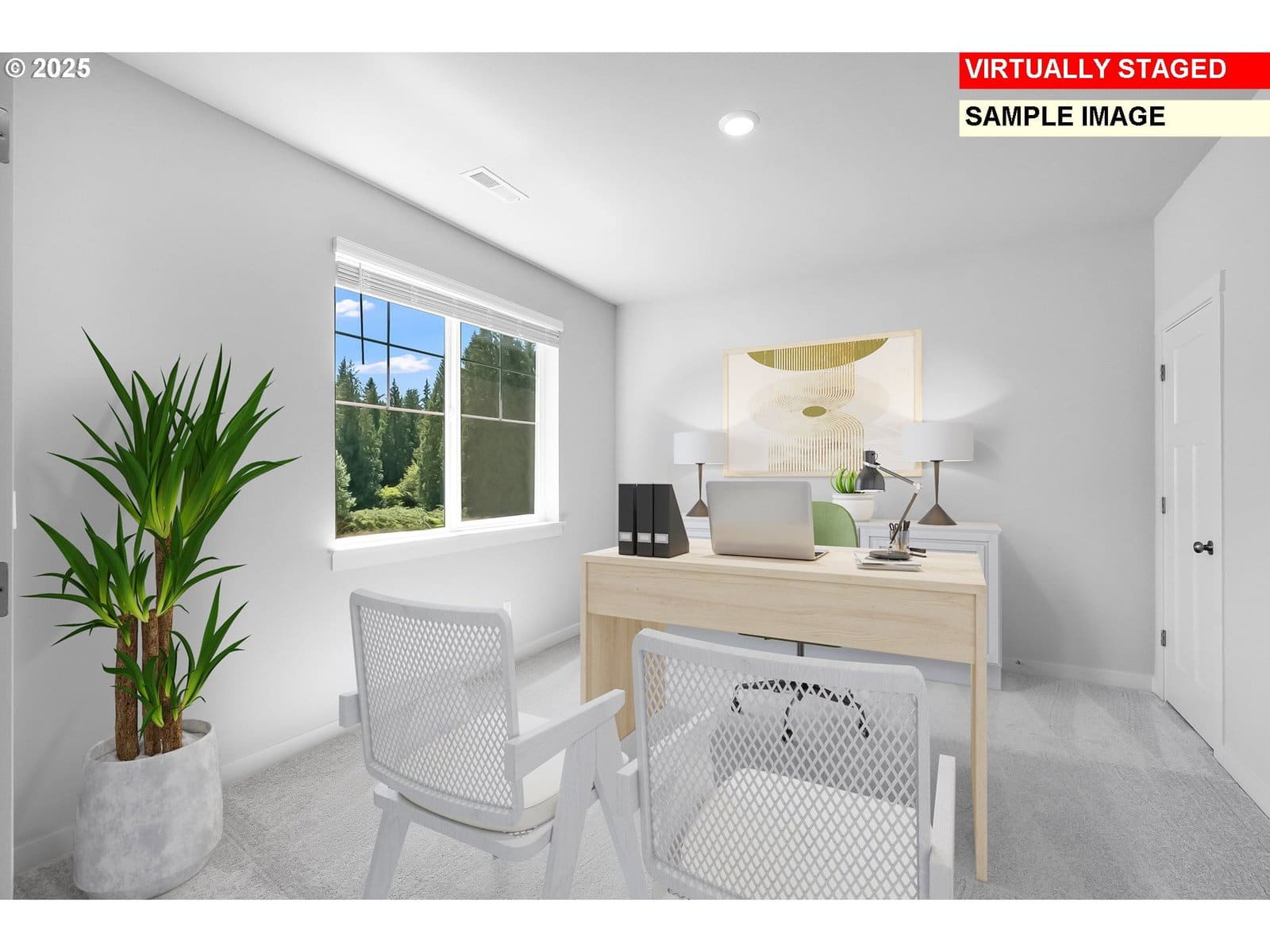 This two-story new construction corner Hammond home in Salmon Creek Ridge features a three-car garage and easy access to I-5, retail, and Salmon Creek trails. The first floor includes a den and private bedroom with bath, along with an open kitchen, dining area, and great room warmed by a fireplace. Upstairs, a loft connects three bedrooms and a primary suite with a soaking tub and walk-in closet. White cabinets, quartz countertops, and a vertical tile backsplash enhance the kitchen. LVP flooring runs through the entry and kitchen, and LVT covers baths and laundry. The primary bath includes a tiled shower with a separate tub. Wooden shelving, landscaping, and fencing complete the home. Central air conditioning, a refrigerator, washer and dryer, and blinds are included. Located on homesite 56, this home is move in ready. Rendering is artist conception only. Photos are of a similar home, features and finishes will vary. Flex credit/closing cost incentive available when financing with preferred lender! Use towards rate buydown and closing costs.