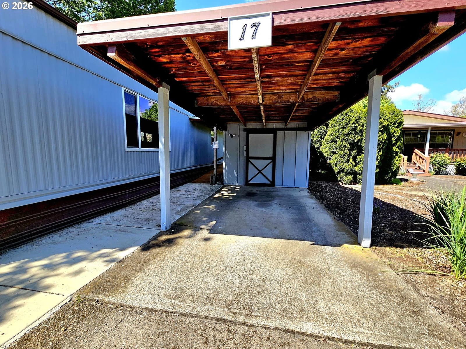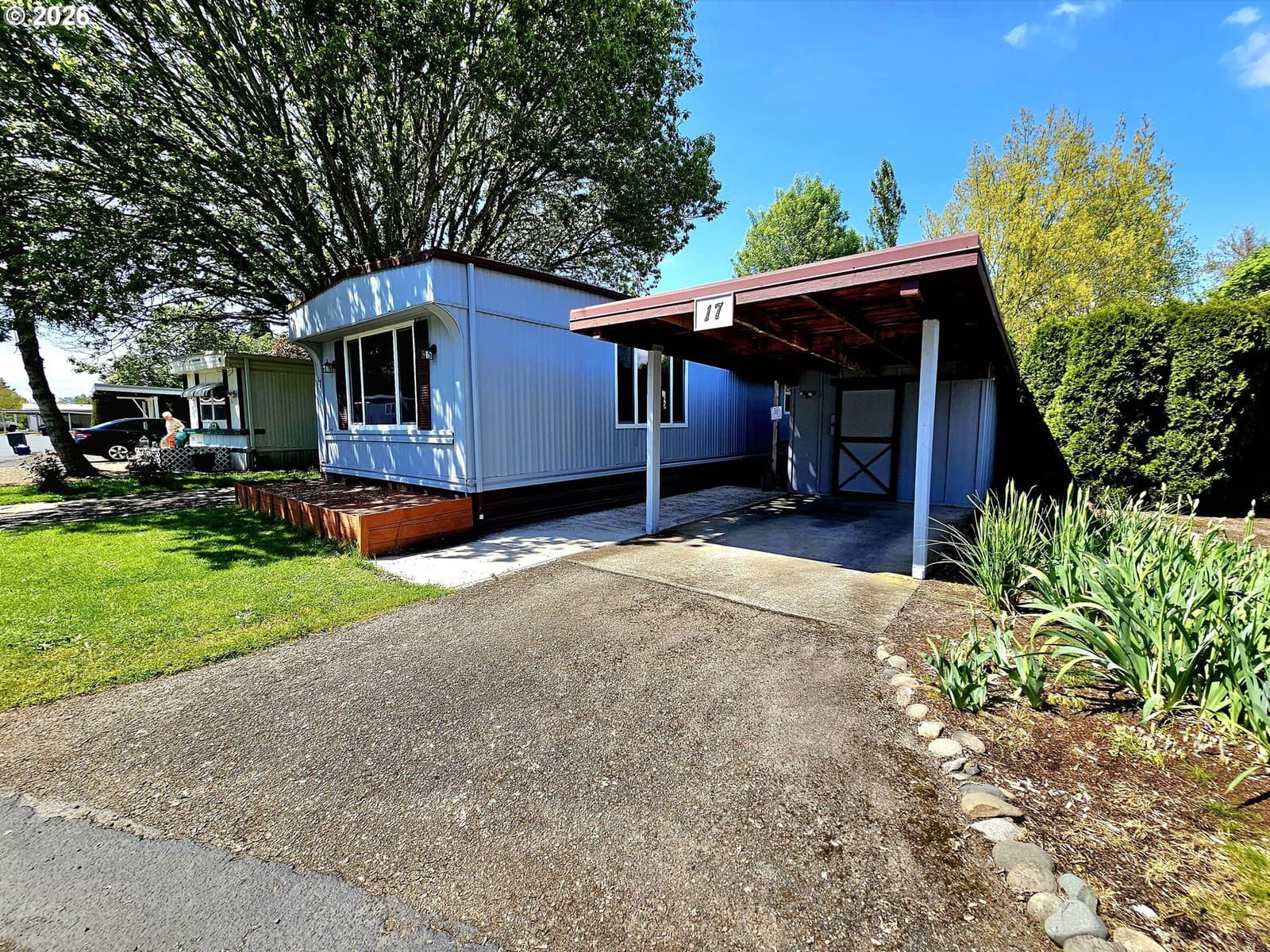 7days on marketEnjoy serene living in this 55+ park. Great 2 bed home has spacious enclosed front porch/deck for year-round use, BRAND NEW CENTRAL AC, plus ADA ramp & covered deck off the carport area. 2 driveways, covered carport & shed. Open floor plan with carpet & laminate floors. Kitchen appliances, washer & dryer are included. Conveniently located near public transport, eating & public library. Residents enjoy the park-like setting, pond, community room, RV storage. Large yard for gardening. MUST SEE!