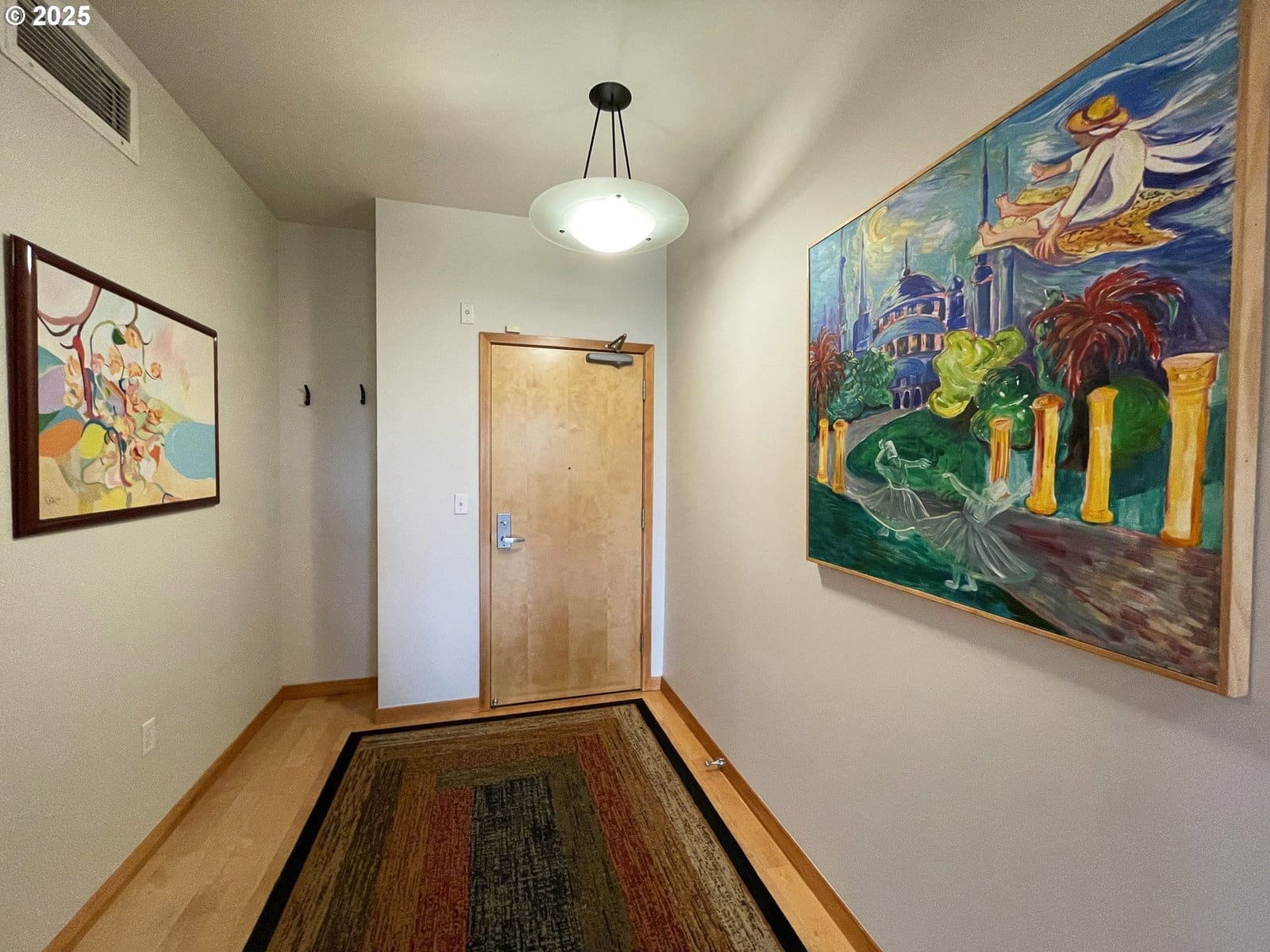 Enjoy all the perks of urban living, while being nestled into this cozy, yet chic, light filled contemporary! Located in the landmark building, Tanner Place, with secure access and a private courtyard. Offering views of Jamison Square from the covered deck and through the stunning floor to ceiling windows throughout. This unique floorplan is ideal as a turnkey pied a terre or primary residence suitable for live/work lifestyle with spacious primary suite and second bedroom functioning as an office / guest space. The wood flooring and wide open floorplan seamlessly flow into the kitchen with limestone tile floors, stainless appliances, slab granite and a peninsula with plenty of bar seating! Built-ins in every space, storage galore and lives large! This unit is perfect for entertaining with generous space for any sized dining table, a cozy gas fireplace and built in bar. The plush owner's suite includes double walk-in closets, spa bath, double sinks in vanity and walk in shower. All utilities are included in monthly dues aside from electric. Deeded parking space and storage unit are part of the sale. New HVAC system installed specific to the unit and new roof on the building - paid in full - no outstanding assessments.