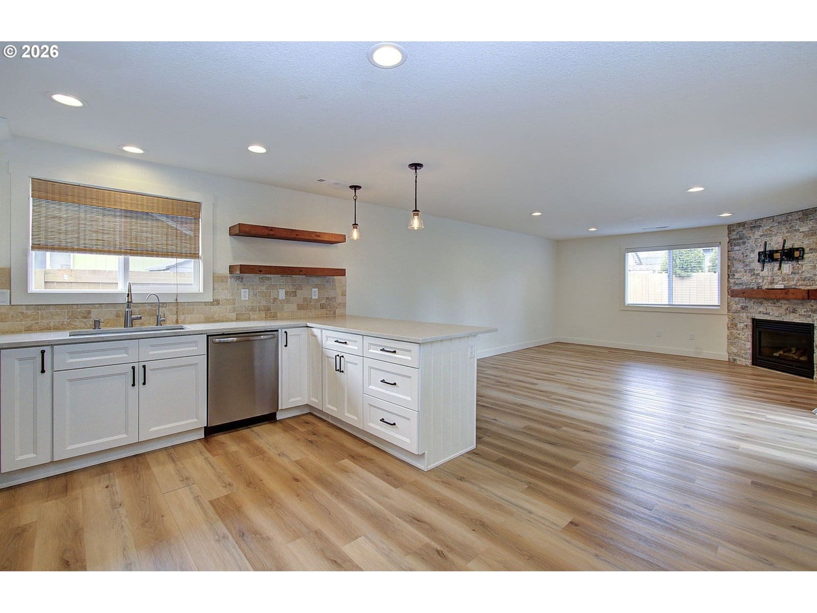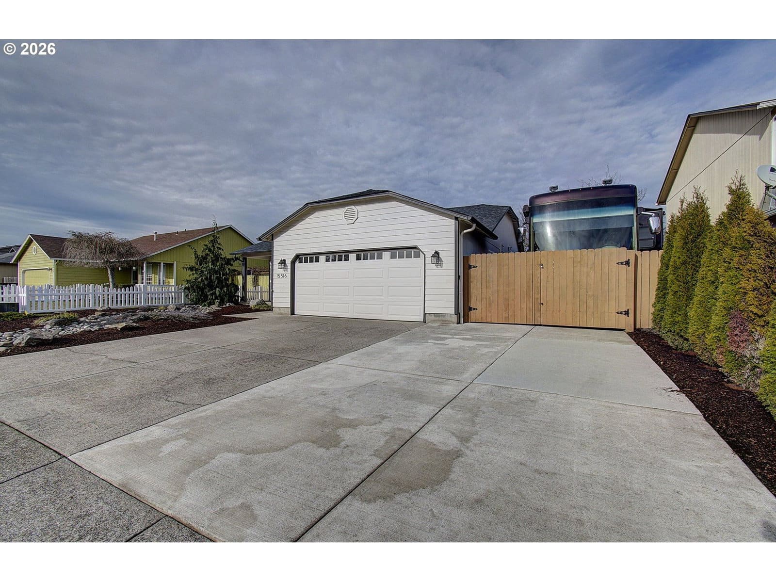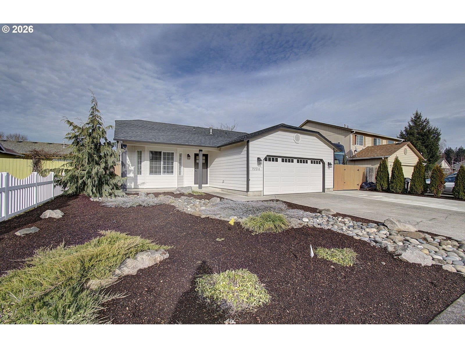 Single-level 3-bedroom, 2-bath home featuring a gas fireplace, two-car attached garage, and RV parking pad. The entire home has been updated and renovated in recent years, including a newer air conditioning unit for added comfort. The primary bathroom offers a tiled shower, and the well-laid-out living spaces make this home easy to enjoy and maintain, all in a convenient, desirable location.