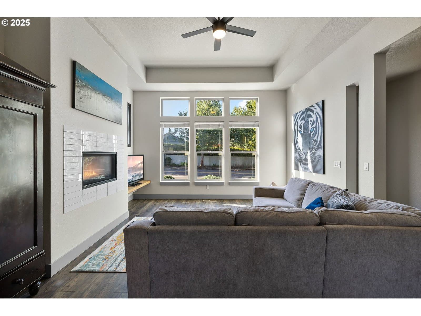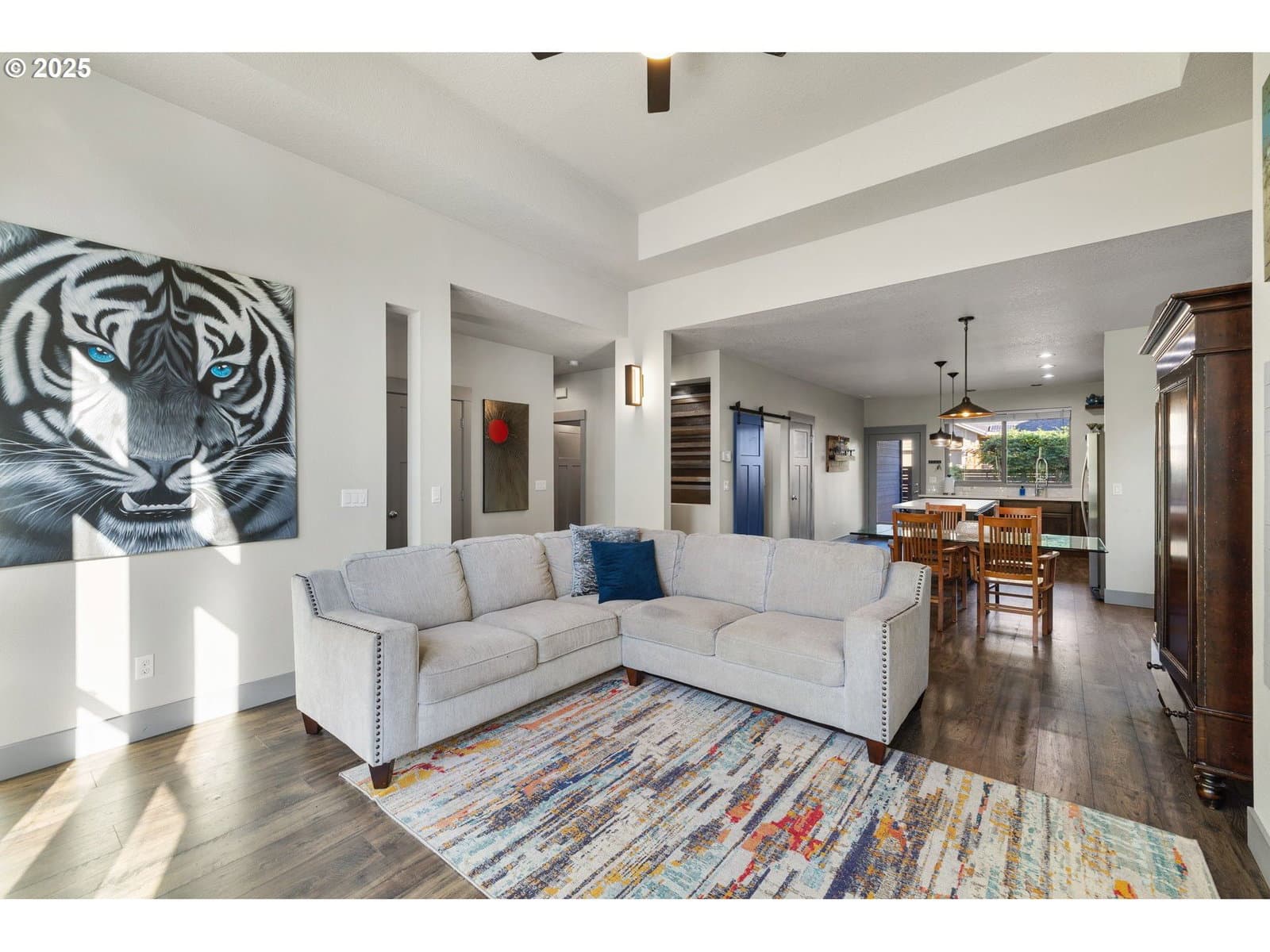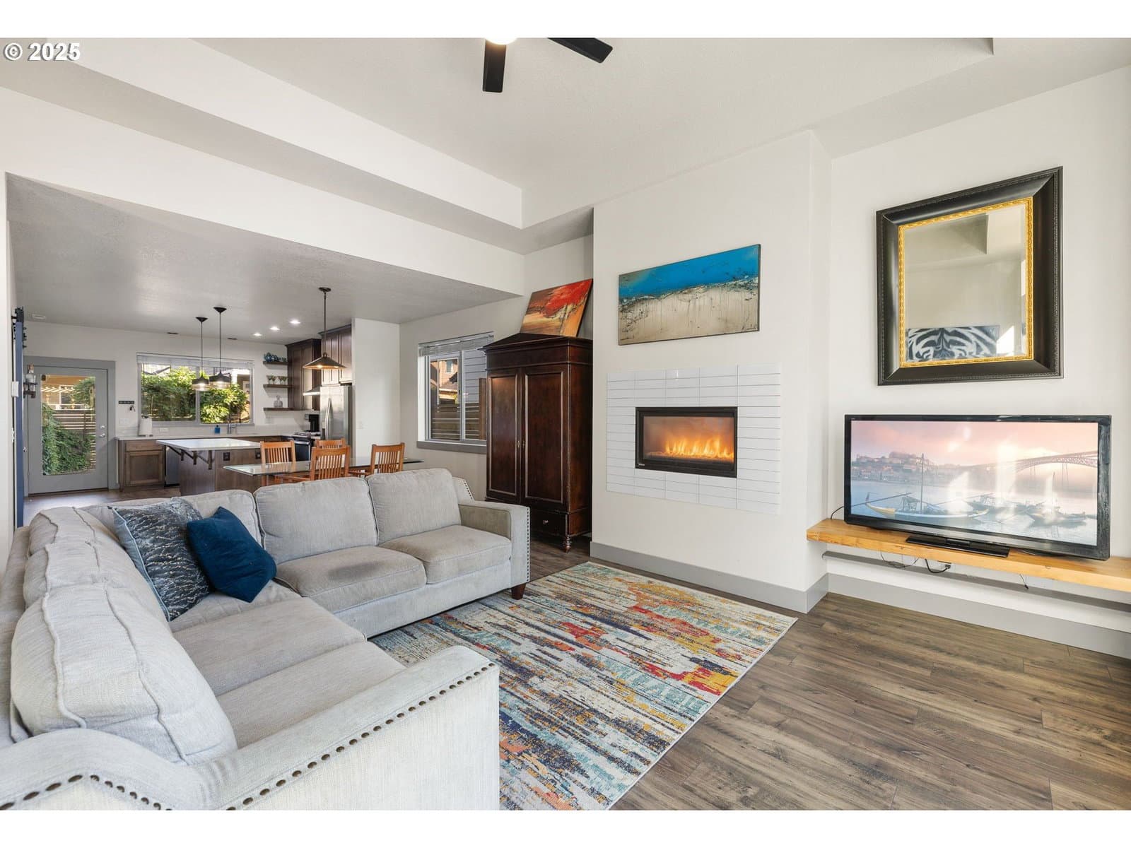 OPEN HOUSE SUNDAY 12-2PM. Custom built 3000sqft, Contemporary style home w/covered front patio, 4 lg bedrooms, 3.1 bathrooms. Living room w/gas fireplace, laminate floors, ceiling fan and high ceiling. Kitchen w/island, walk-in pantry, stainless appliances all stay, laminate floors, quartz countertops. Bedroom or office on main floor w/closet. Master suite w/walk-in closet, double sinks, shower, tub, ceiling fan. Vaulted 22x18 family room/game room on 3rd floor has full bathroom w/walk in closet or 2nd storage area, could be used as 5th bedroom. Extra 15x11 bonus room for storage or kids play area. Utility room w/built-ins has tile floors. Fenced back yard w/covered patio, 2 car garage w/parking in driveway and front of home, Alley way in back good place for kids to ride bikes. Walking distance to parks, walking trails at Clackamas Community College and Saturday Market, also dog park. new AC 2022.