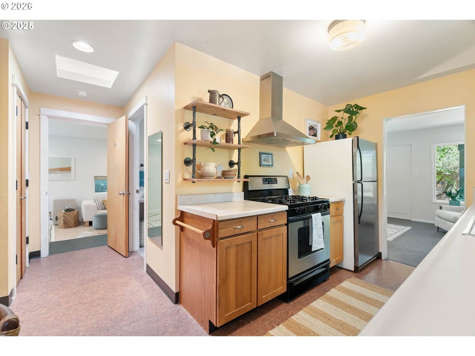 Looking for Goldilocks in Kenton? You'll find all the fairy tales in this darlin' red bungalow, tucked away on a private corner lot where everything feels just right. Bedrooms rest on opposite wings so it's ideal for WFH/roomie life. Primary is extra large with perfectly treed views. Endless charm abounds here with vintage kitchen and mod appliances + new paint and fixtures throughout. Lots of storage options in the refreshed walk-in crawl space and don't miss the huge side yard, perfect for day-dreaming and/or stashing that epic gnome collection. Come see for yourself. This one is dreamy!