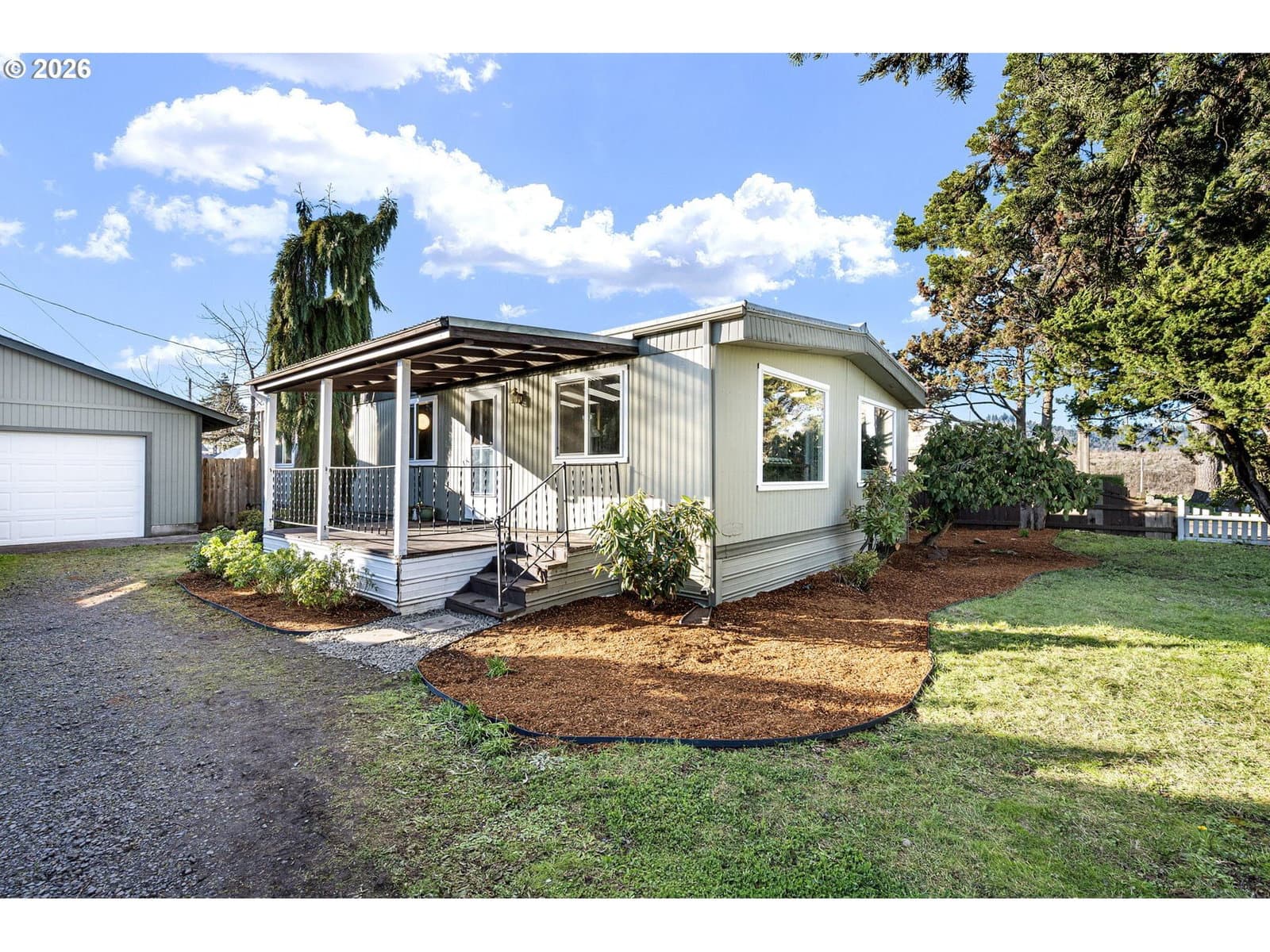 This 3-bedroom, 2-bath FHA financeable manufactured home sits on its own land—offering space, flexibility, and long-term value. The functional layout provides comfortable everyday living with a large living room and spacious kitchen. With room to cook, gather, and settle in comfortably, this home is ready for your personal touch. The living room, kitchen and hallway have been refreshed with paint, showing just how impactful a simple update can be. While some wood paneling remains, a little more paint could easily modernize the rest and give the home a fresh new personal look. The fully fenced backyard features a covered patio and offers space for gardening, relaxing evenings, or easy outdoor entertaining. The large two-car garage provides excellent storage and workspace, and the generous parking area offers room for multiple vehicles, boat storage, or even an RV. Conveniently located near highways and shopping, this home delivers comfort, potential, and opportunity all in one affordable property.