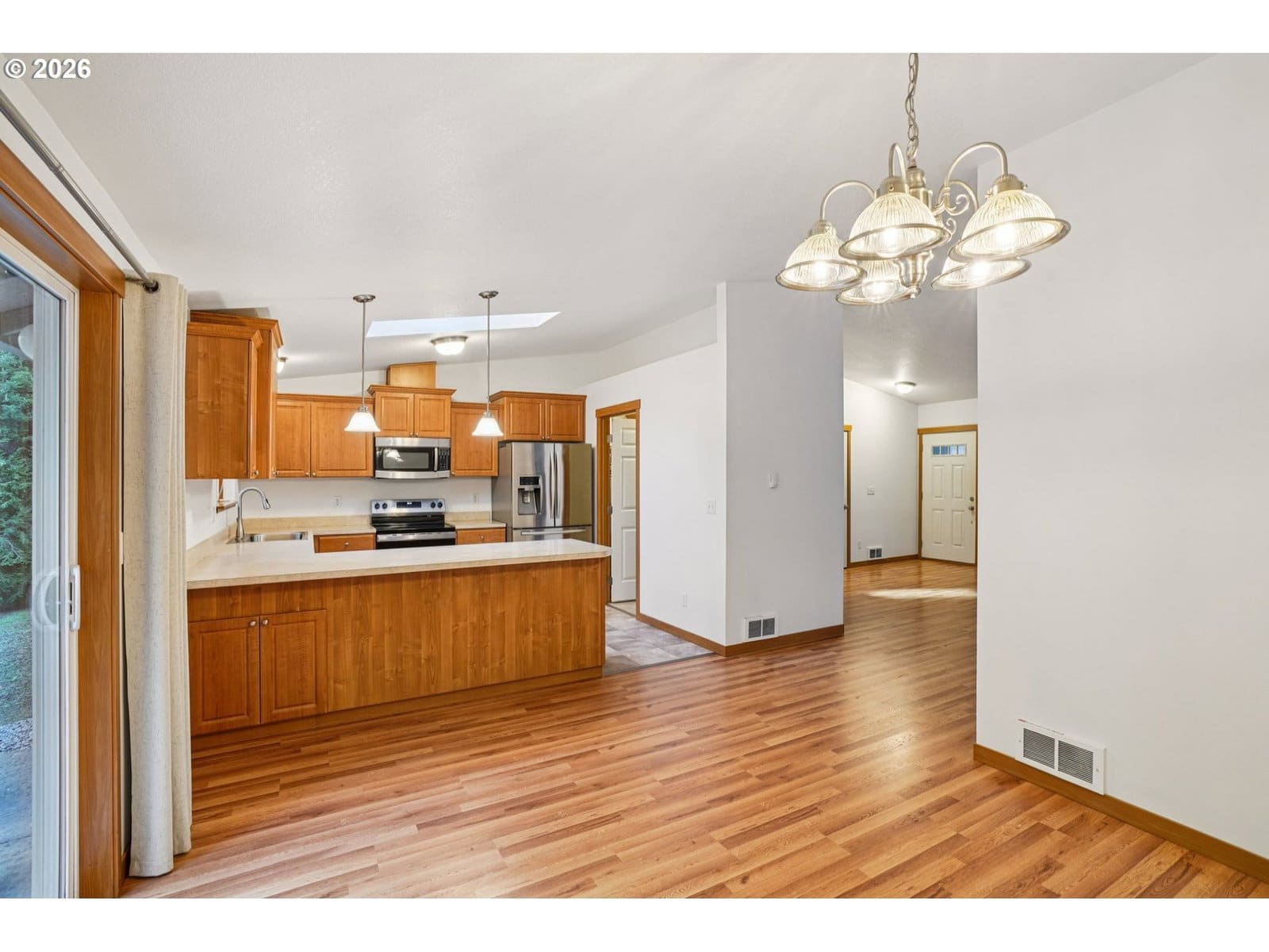 This inviting, beautifully maintained, single-level home in Welches offers 3 bedrooms, 2 baths, and 1,704 sq ft of thoughtfully designed living space on a generous .33-acre lot. Vaulted ceilings, skylights, new paint and flooring flood the interior with natural southern light, creating a bright and airy atmosphere that enhances every corner of the home. The kitchen features brand new stainless steel dishwasher and stove, along with a microwave and refrigerator. It also includes rich cherry-finish cabinets, with a comfortable eat at island/bar making meal prep and casual dining a joy. A dedicated laundry room also has a new washer and dryer with additional pantry storage off the kitchen adding convenience whether you're cooking or doing laundry while also being close to the bedrooms. The attached 2-car garage provides secure parking and extra space for gear and hobbies but there's also potential to add a shop off the back on Margaret lane for even more storage!Outside, the large, low maintenance lot offers room to garden, entertain on the stamped back patio or simply unwind in the fresh mountain air. An RV hookup with parking pad add versatility for outdoor enthusiasts and visiting guests. Whether you're hosting summer gatherings or enjoying quiet mornings surrounded by nature, this property delivers the perfect balance of indoor comfort and outdoor possibility.Located at 66735 E Oregon St, this home is just minutes from the Resort at the Mountain and a short hike to the Sandy River, offering easy access to hiking, fishing, and year-round recreation. Sandy town center is approximately 20 minutes away, providing shopping, dining, and community conveniences. The property is served by a septic system and shared well, combining the charm of mountain living with practical, well-maintained infrastructure.Schedule your private showing today and discover the warmth, space, and lifestyle this Welches home has to offer.