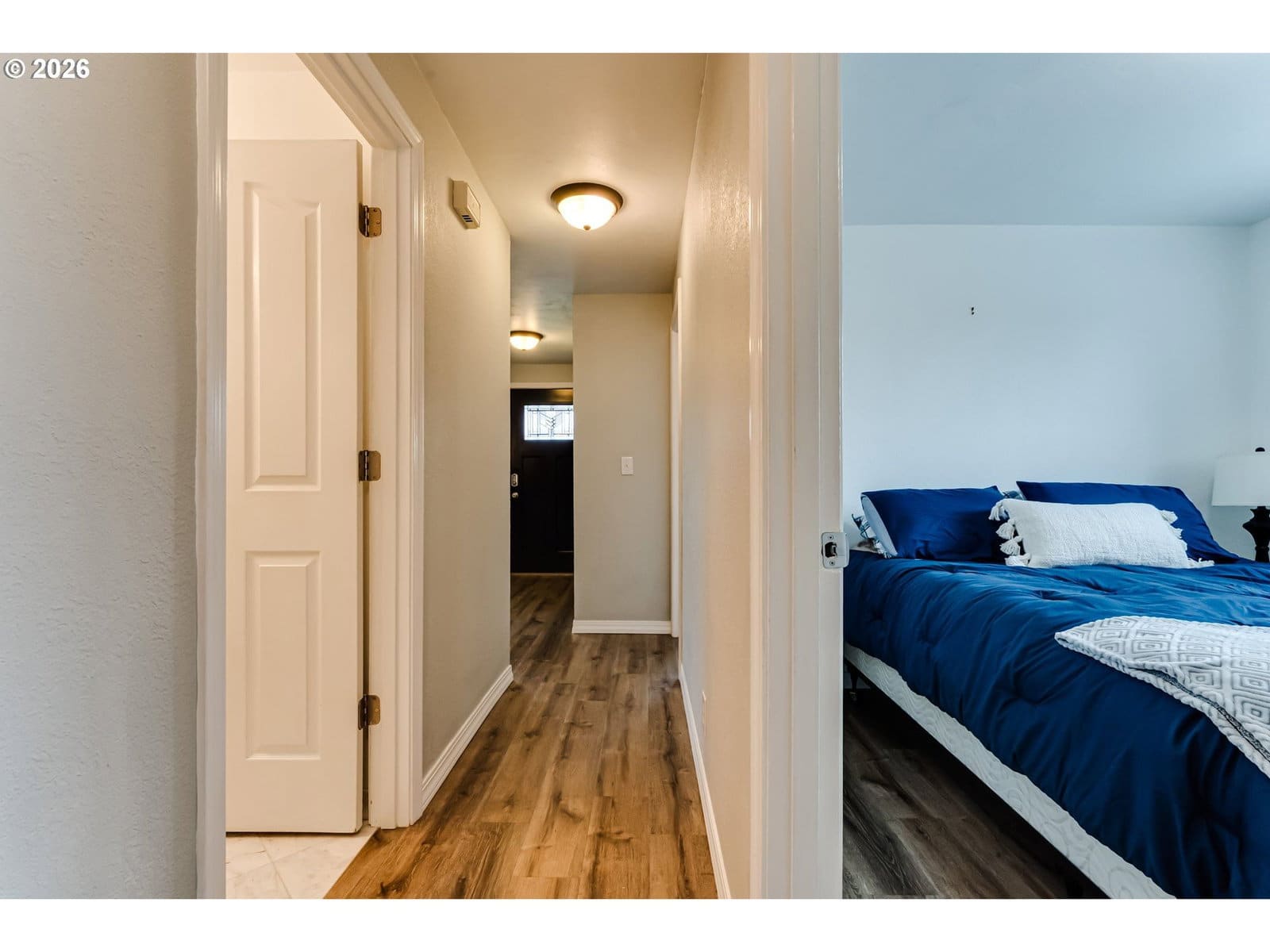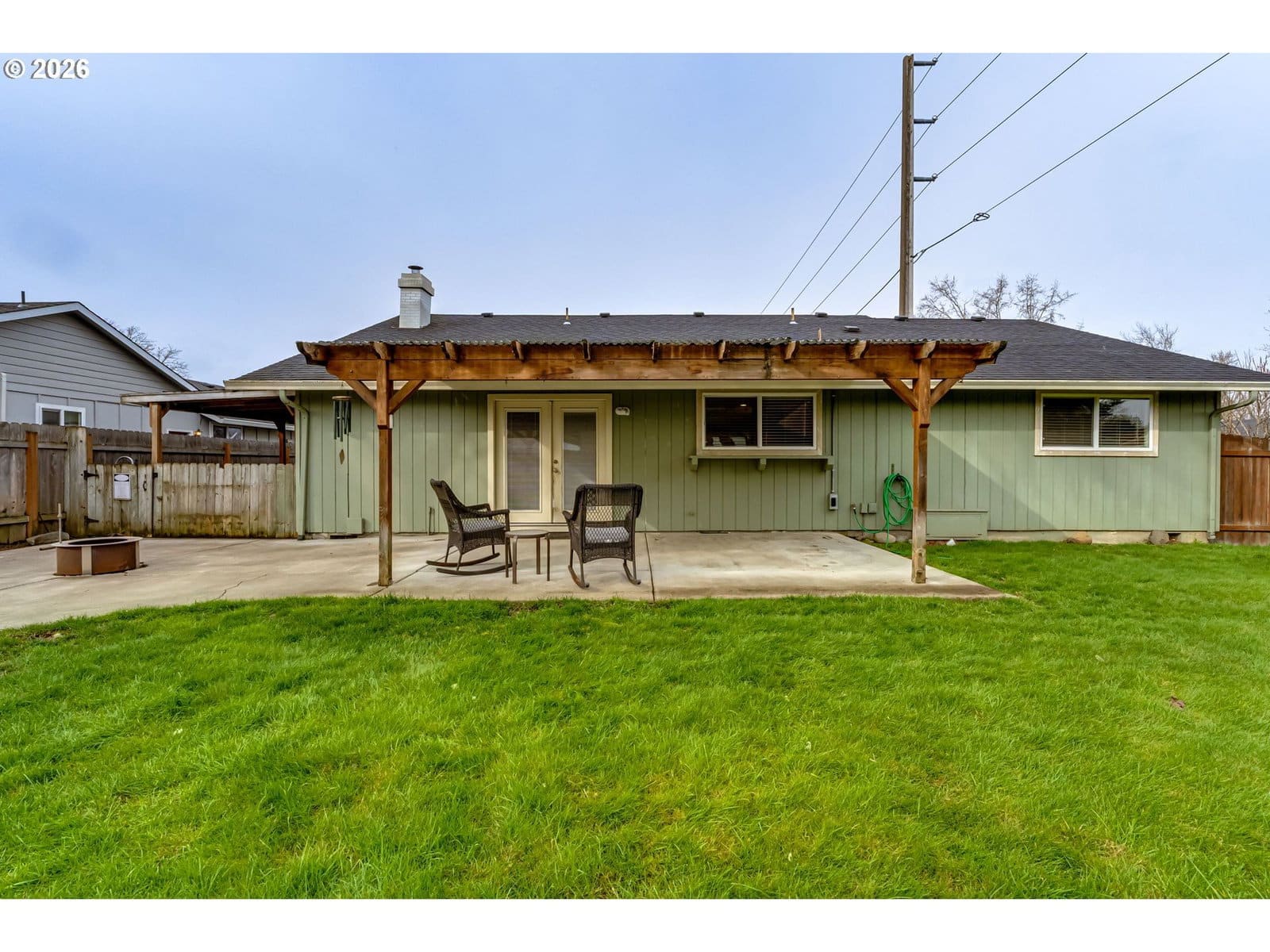 Multiple offer situation. Will review all offers Sunday at 4:00pm. Single-story home featuring an updated kitchen with a large island and seating, quartz countertops, and stainless steel appliances. The kitchen opens to the family room with french doors leading to a covered back patio—perfect for indoor/outdoor living. Cozy up to the 6-year-old wood stove on cooler evenings. Enter into a welcoming living room with laminate flooring throughout the entire home, vinyl windows, and newer interior paint. The primary suite includes a private, updated bathroom, and both bathrooms have been tastefully remodeled. Roof is approximately 6 years old.